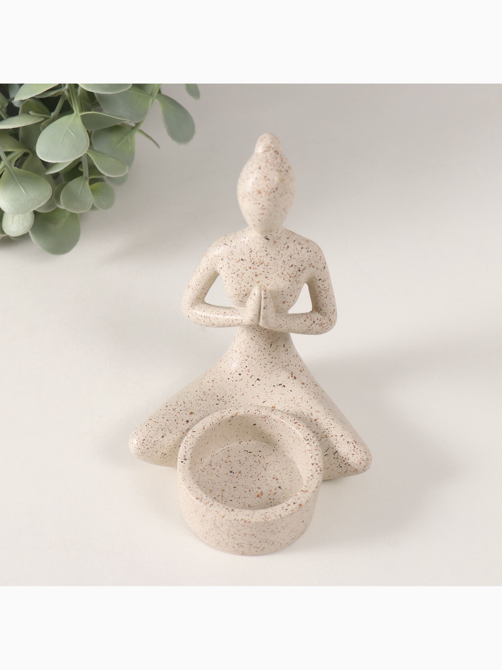 Подсвечник на 1 свечу "Девушка. Приветствие", полистоун, белый в крапинку, 8.5x8.8x11.7 см, 8.8x8.5x11.7 см., Китай