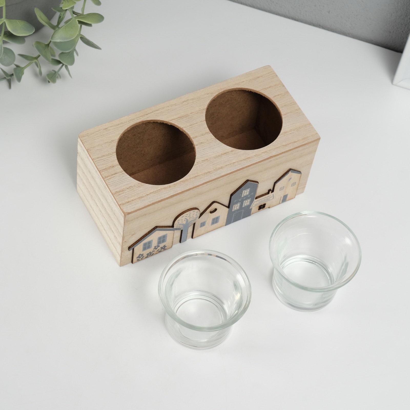 Деревянный подсвечник на 2 свечи "Домики", d=4 см, 7.7x15.5x8 см, 15.5x7.7x8 см., Китай