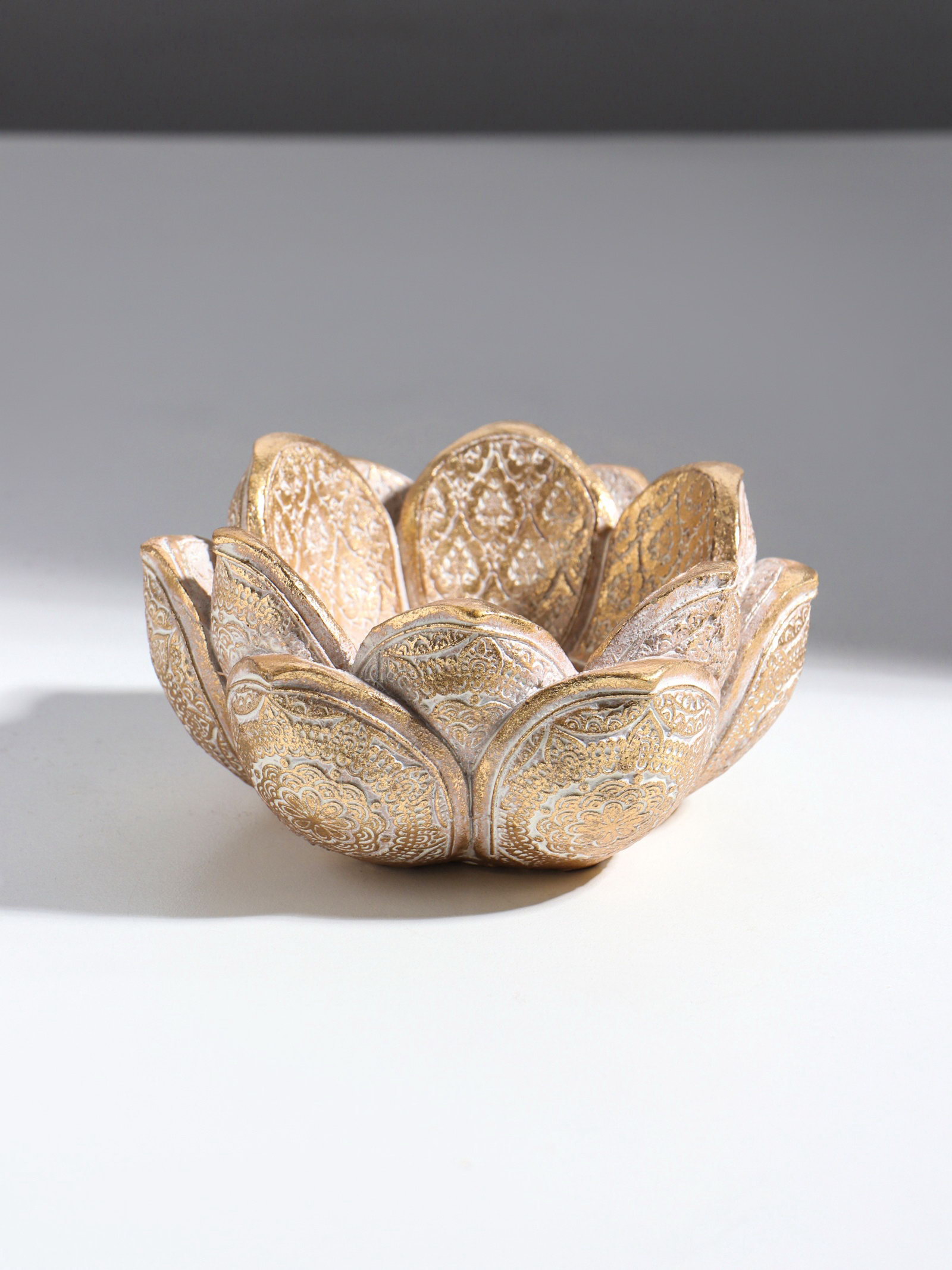 Подсвечник на 1 свечу "Лотос", полистоун, золото, 10.5x12x9 см, 12x10.5x9 см., Китай
