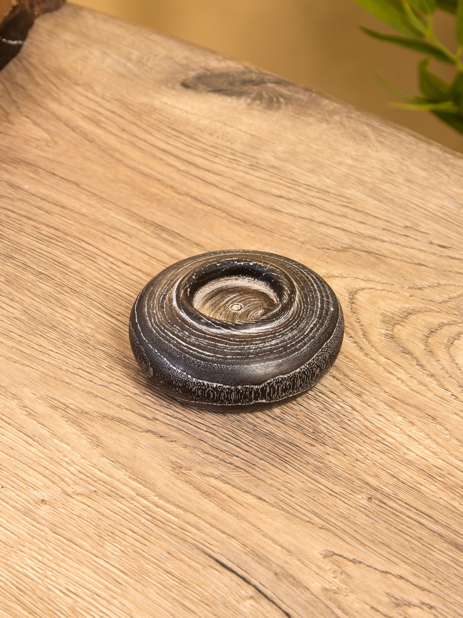 Подсвечник из дерева джати, d=3 см, 10x10x4 см, тёмно-коричневый, 10x10x4 см., Индонезия