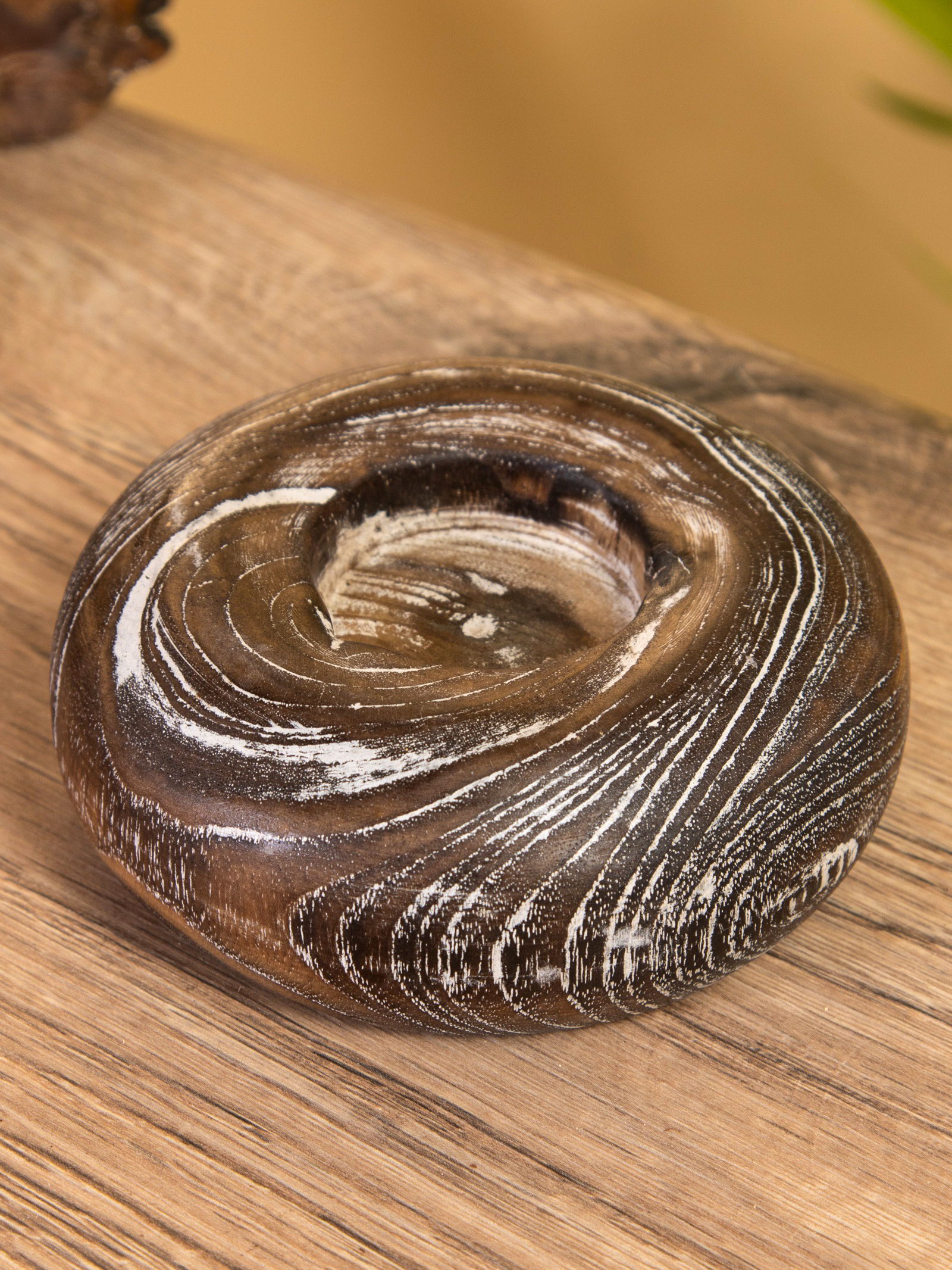 Подсвечник из дерева джати, d=3 см, 10x10x3 см, тёмно-коричневый, 10x10x3 см., Индонезия