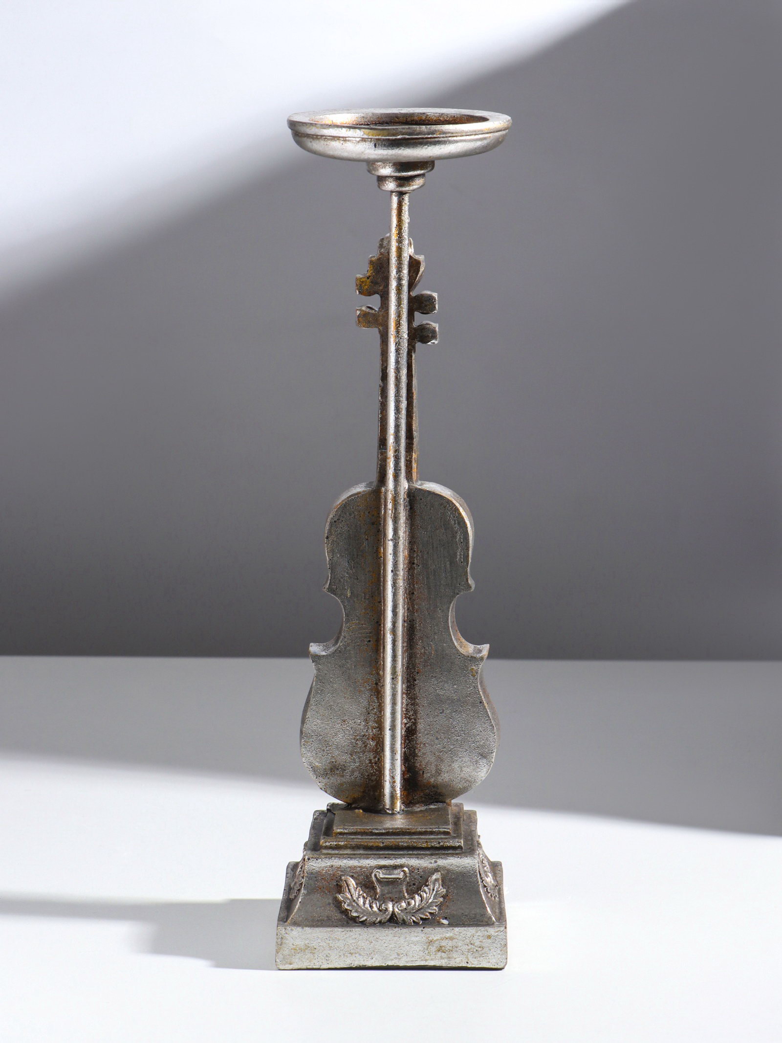 Подсвечник на 1 свечу "Скрипка", полистоун, серебро, 10x10x36 см, Китай