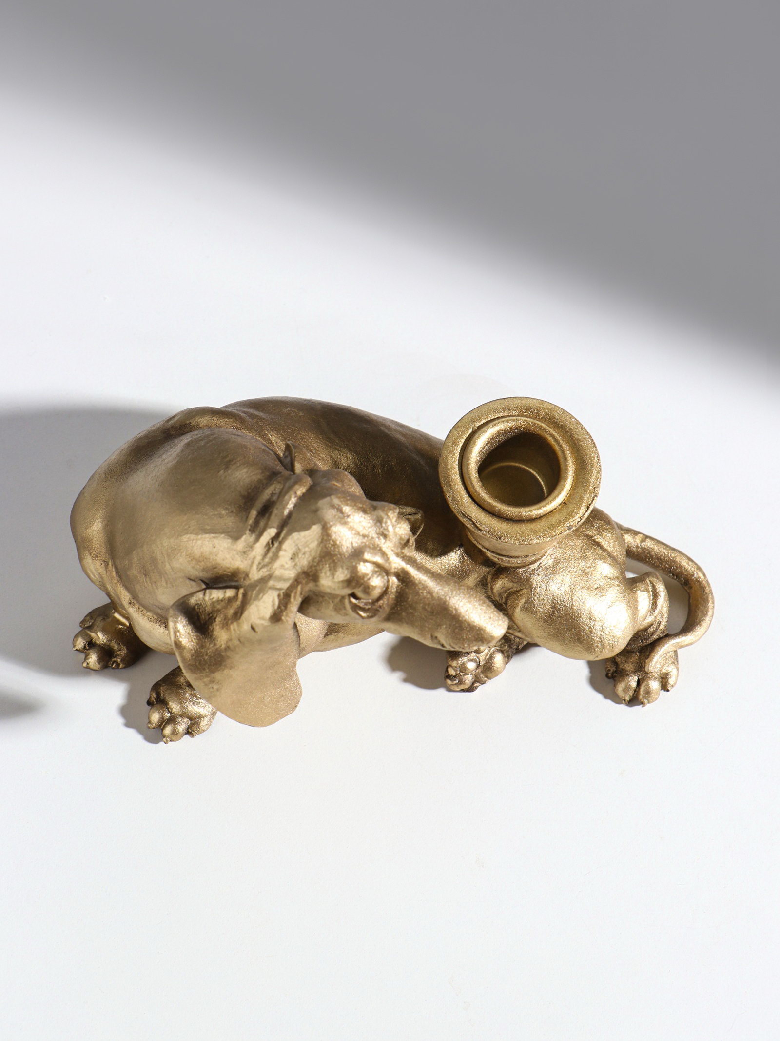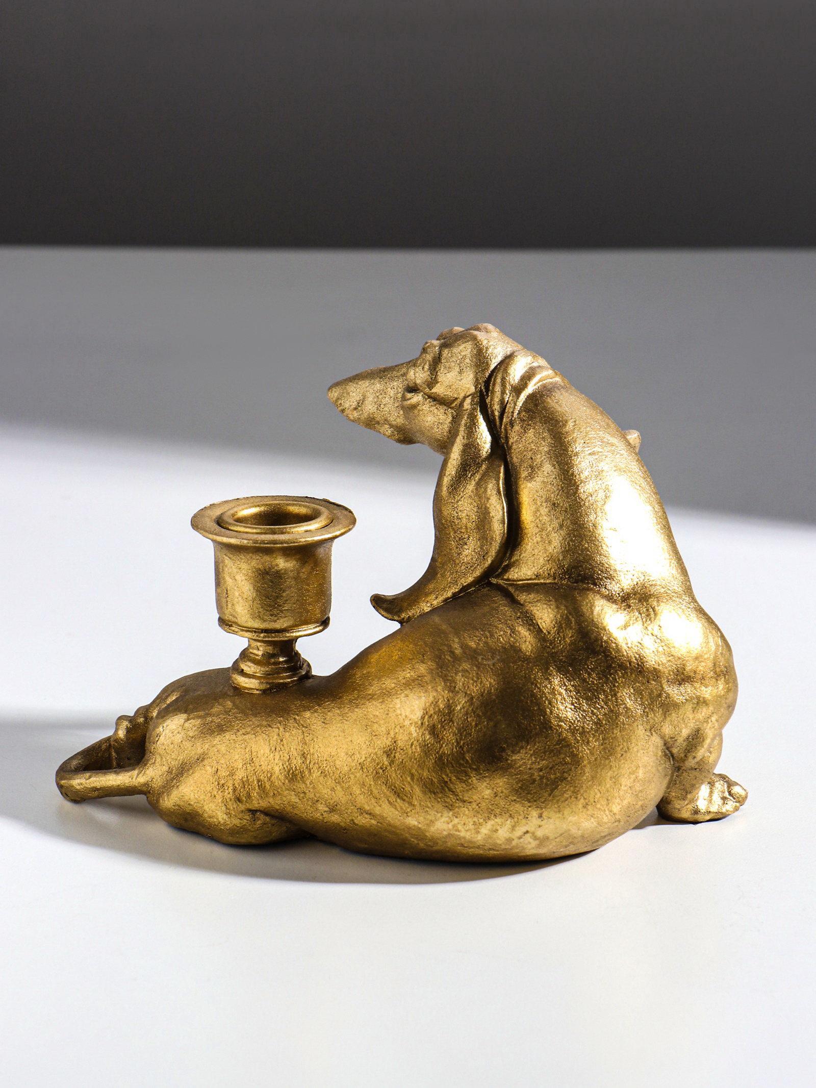Подсвечник на 1 свечу "Шарж. Такса", полистоун, золото, 19x11x13 см, Китай