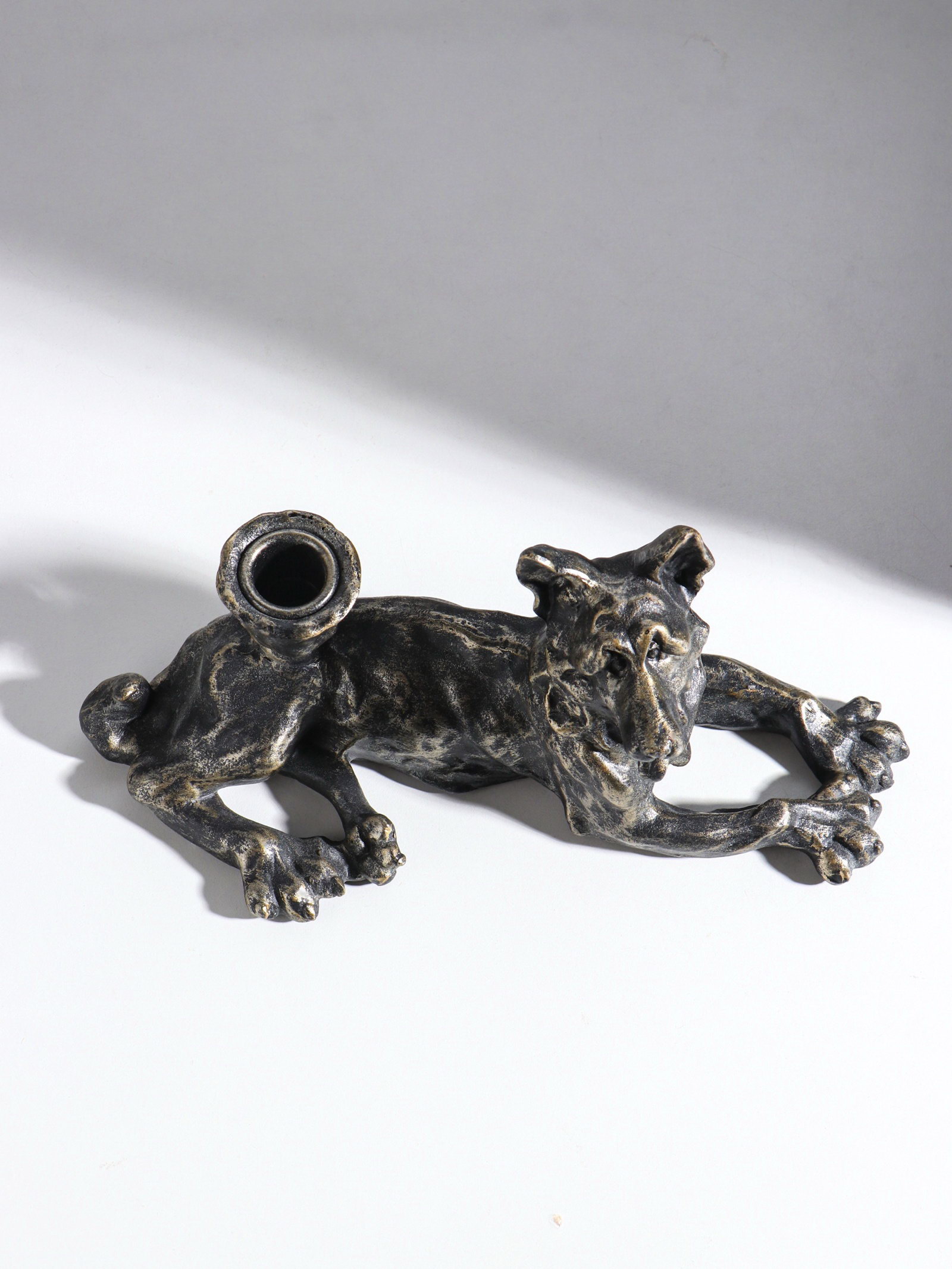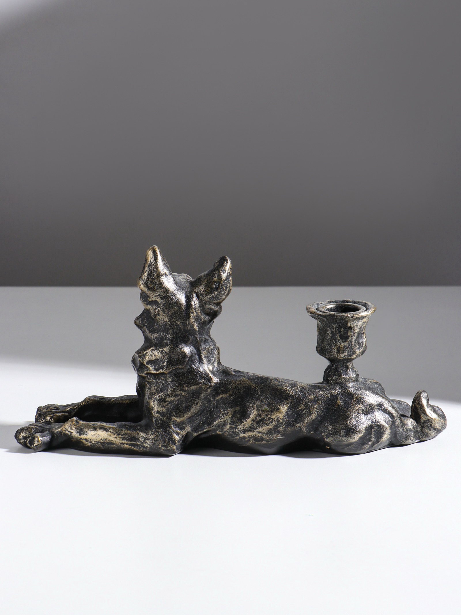 Подсвечник на 1 свечу "Шарж. Овчарка", полистоун, под бронзу, 28x10.8x13 см, Китай