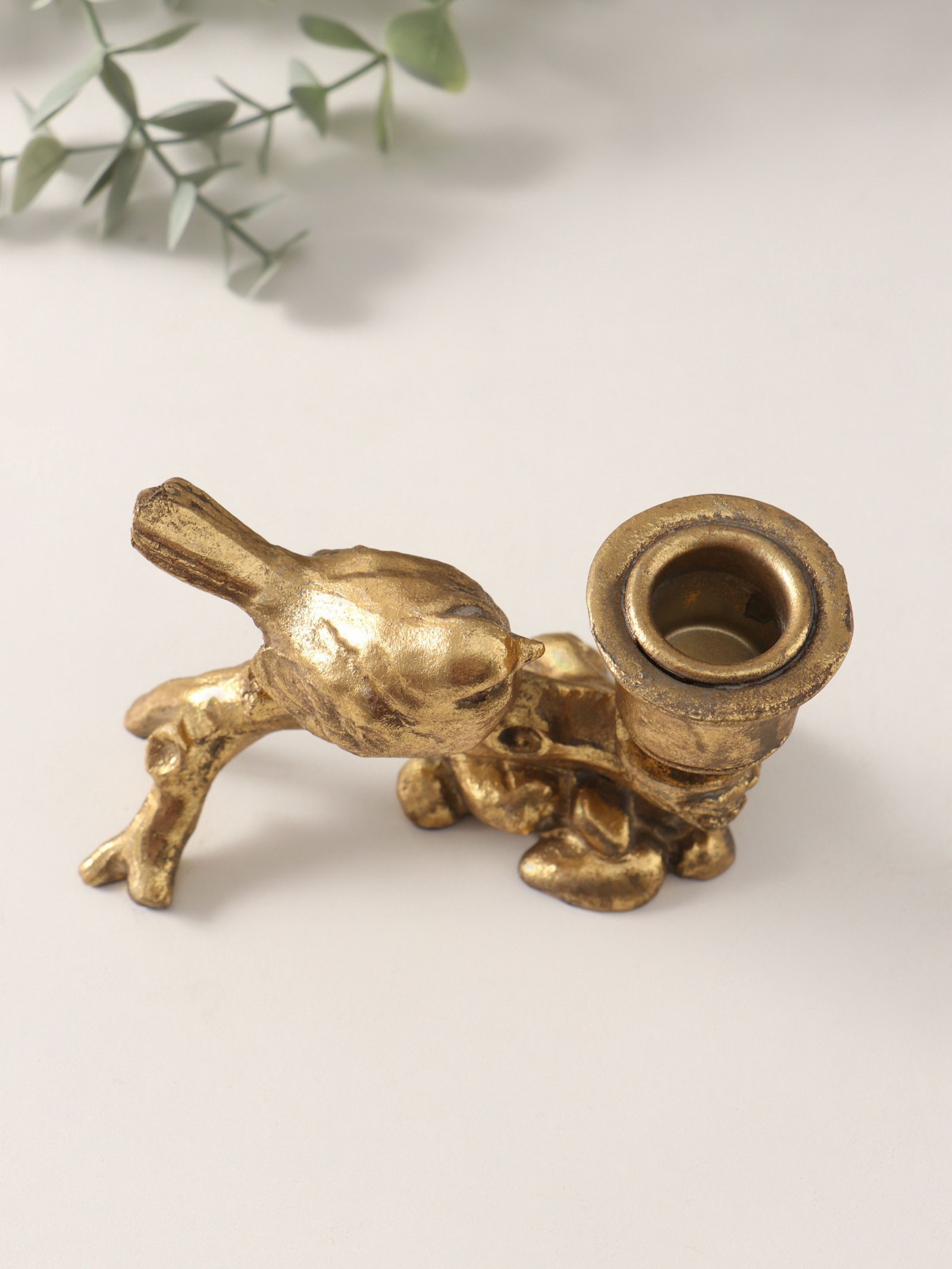 Подсвечник на 1 свечу "Воробышек на коряге", полистоун, состаренное золото, 14x6.5x8.8 см, Китай