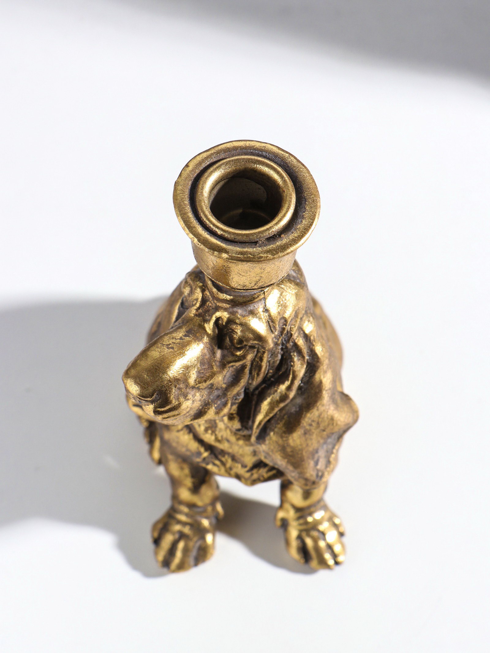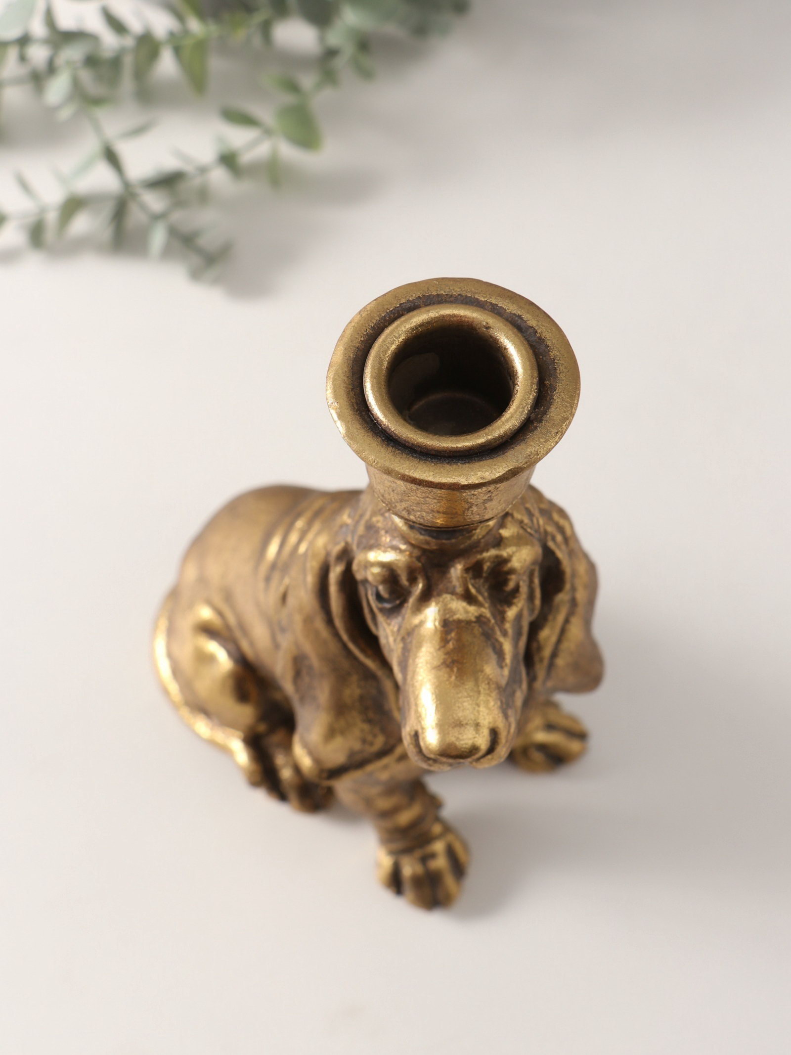 Подсвечник на 1 свечу "Спаниель", полистоун, золото, 14.5x9x24 см, Китай