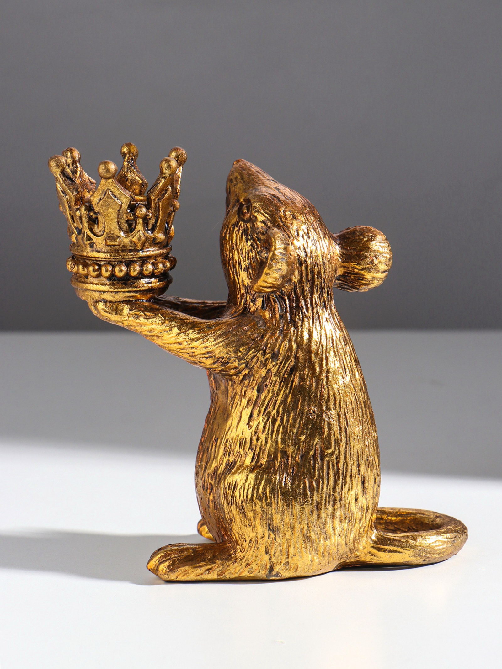 Подсвечник на 1 свечу "Мышка с короной в руках", полистоун, золото, 15.5x8x15.5 см, Китай