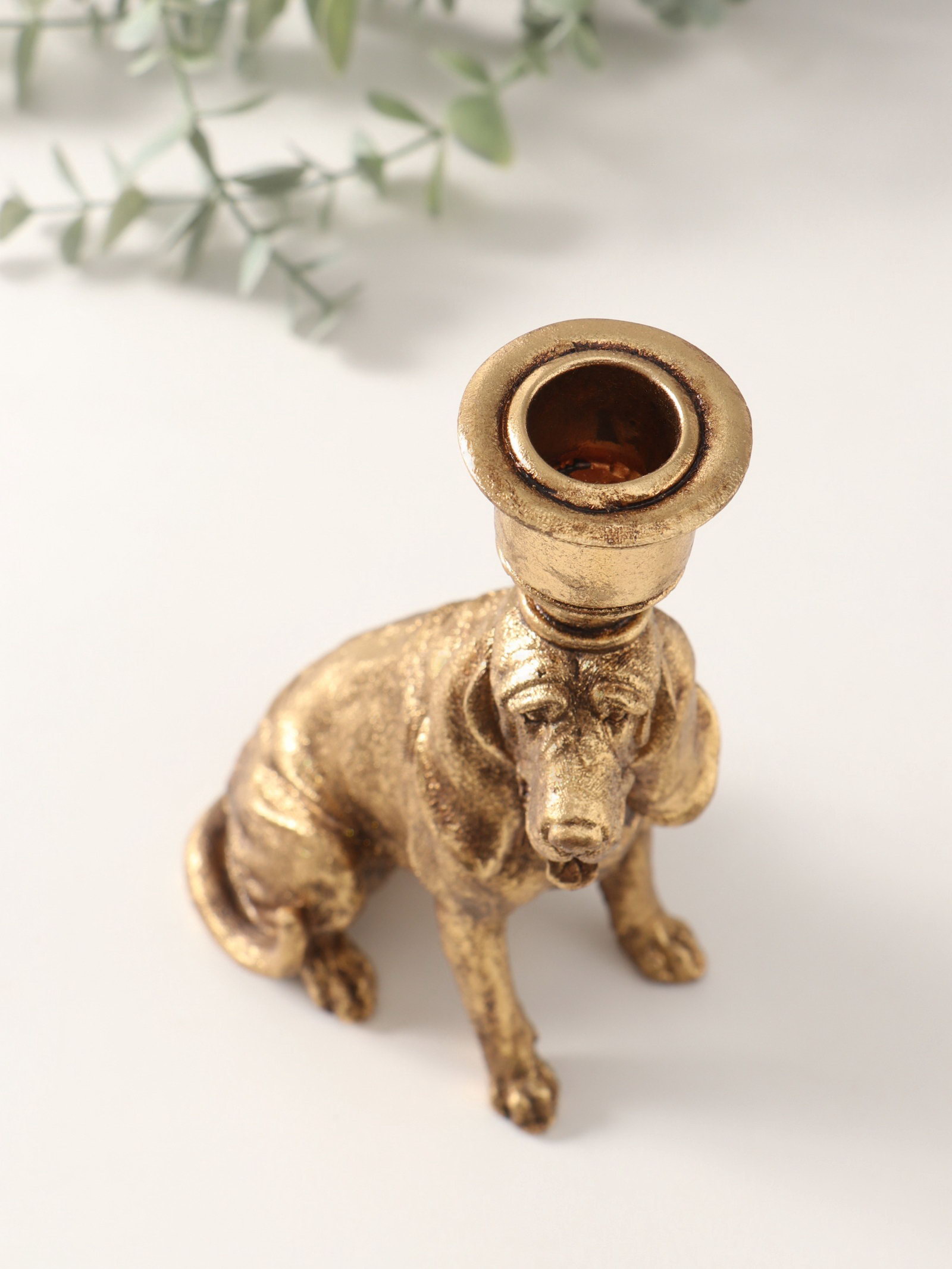 Подсвечник на 1 свечу "Бладхаунд", полистоун, золото, 11x8x19.5 см, Китай