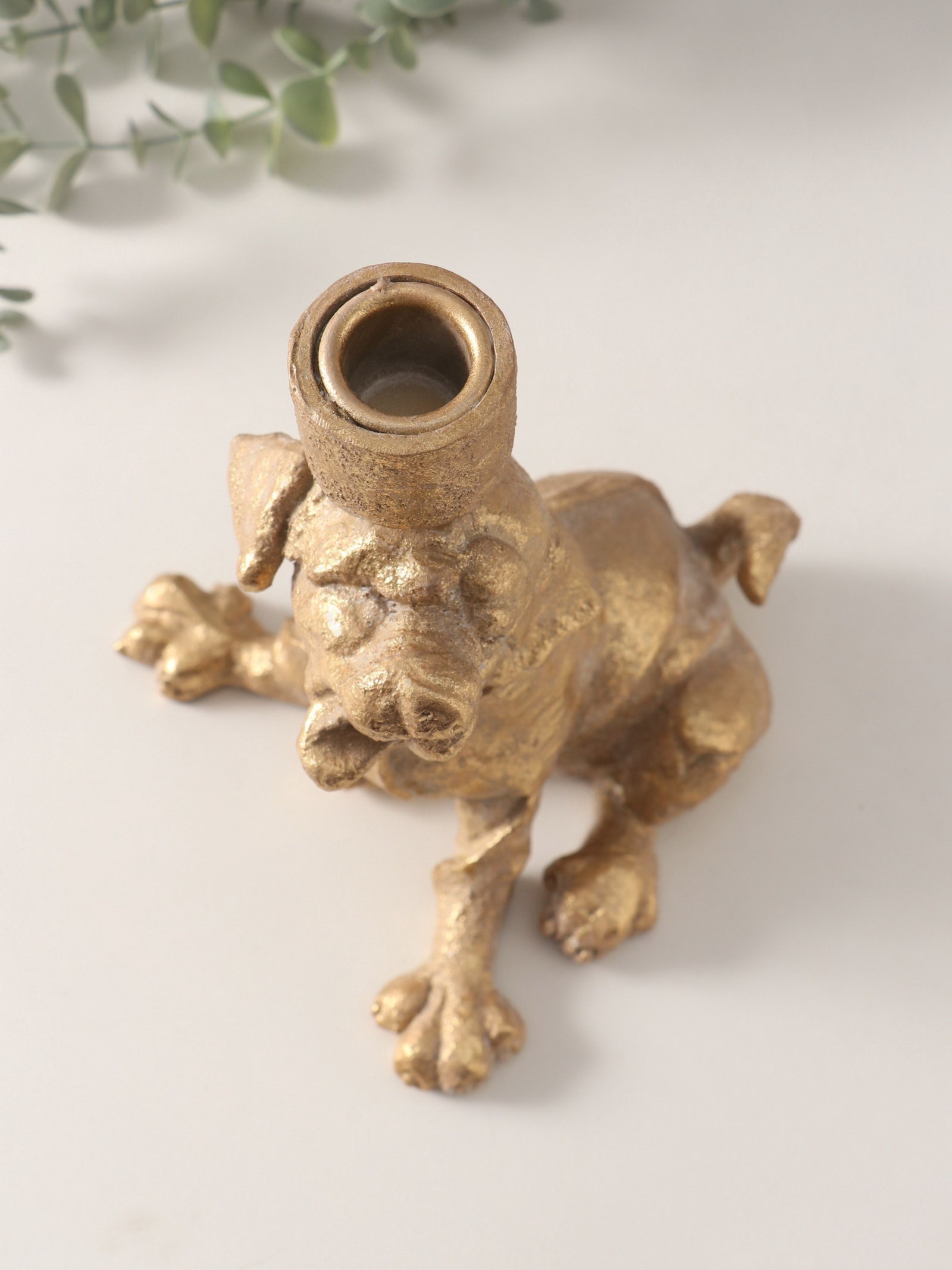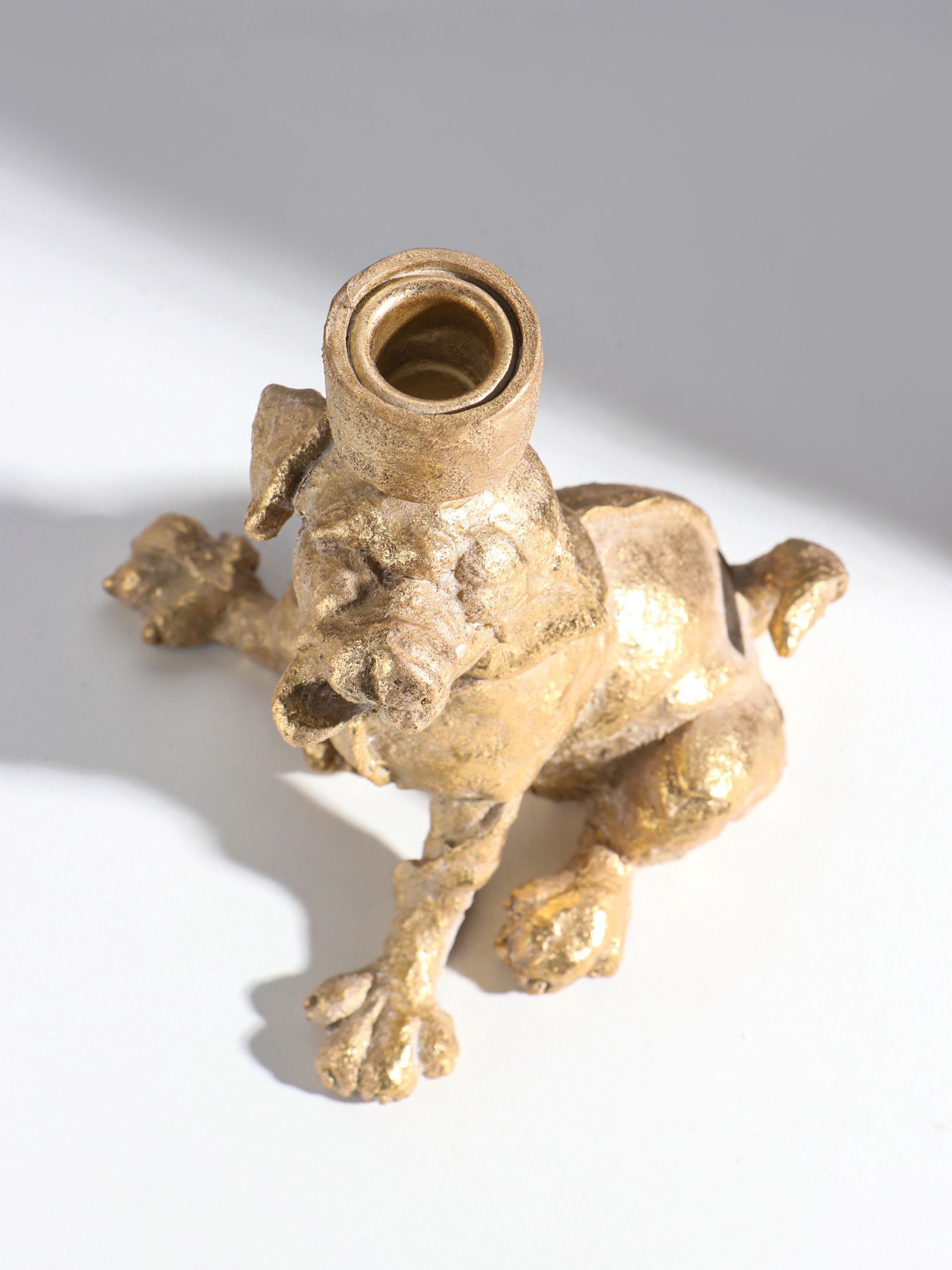 Подсвечник на 1 свечу "Шарж. Зевающий щенок", полистоун, золото, 15.8x15.3x20 см, Китай