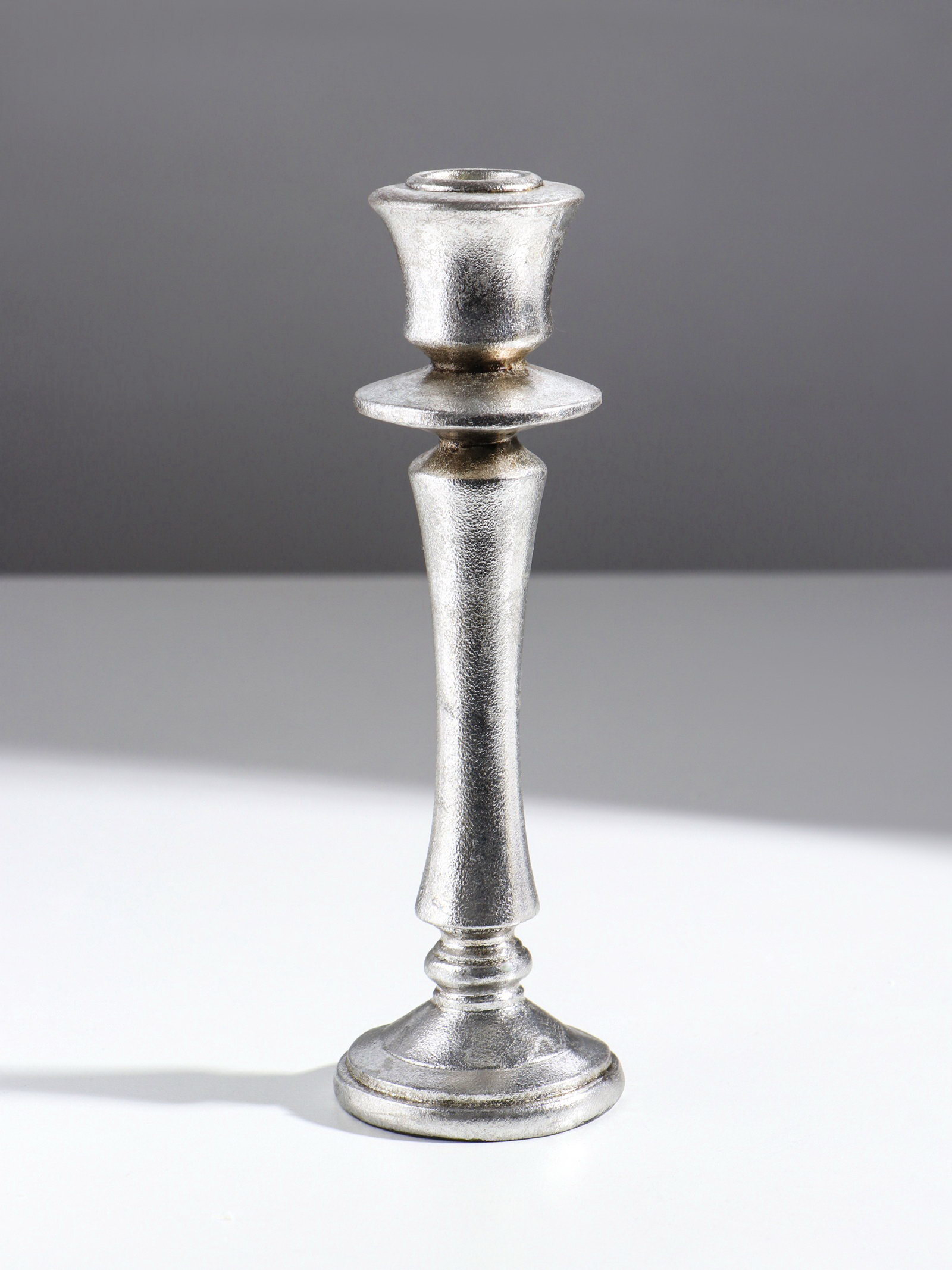 Подсвечник на 1 свечу "Медичи", полистоун, серебро, 6.5x6.5x20.5 см, Китай