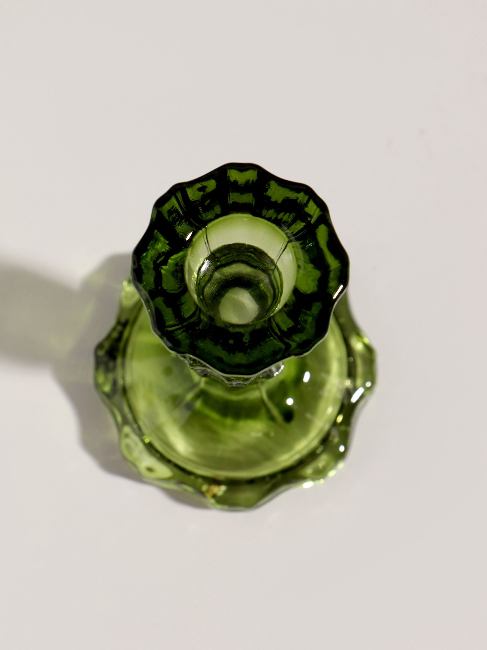 Стеклянный подсвечник на 1 свечу "Бутон на ножке", зелёный, d=2 см, 7x7x11 см, 7x7x10 см., Китай