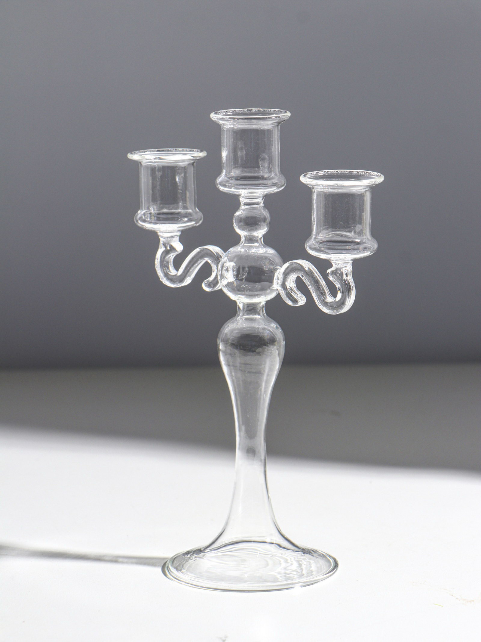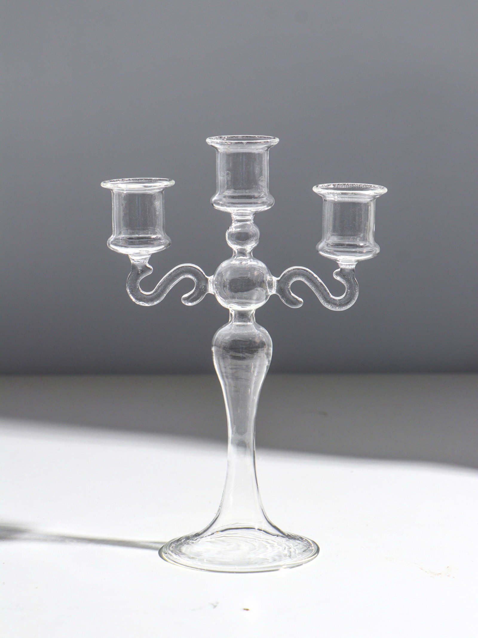 Стеклянный подсвечник на 3 свечи "Канделябр. Версаль", прозрачный, d=2.2 см, 21x14x7.7 см, 7.7x14x21 см., Китай