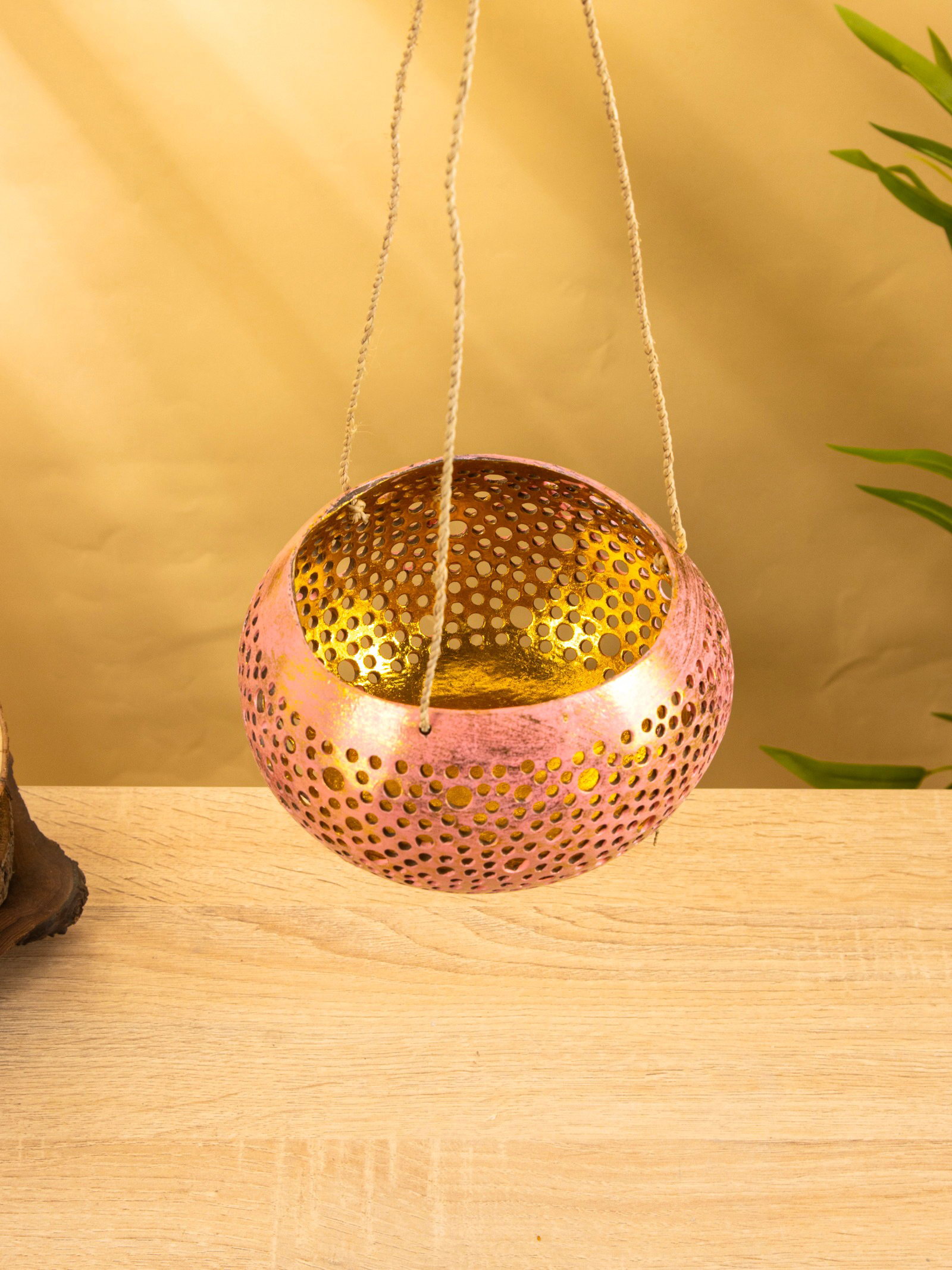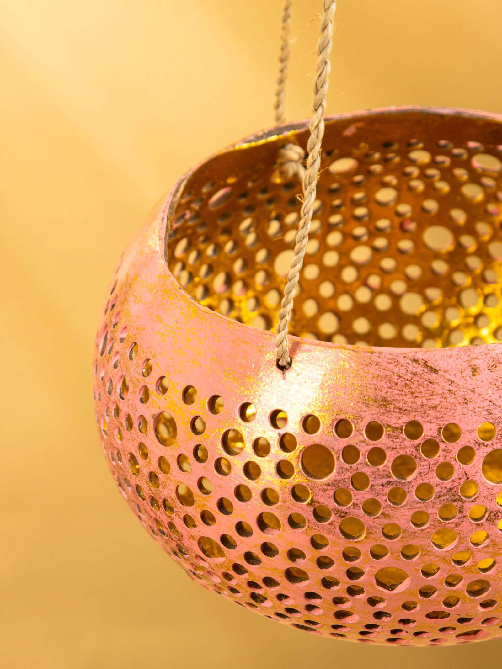 Подсвечник подвесной из кокоса, 14x14x10 см, тёмно золотисто-розовый, 14x14x10 см., Индонезия