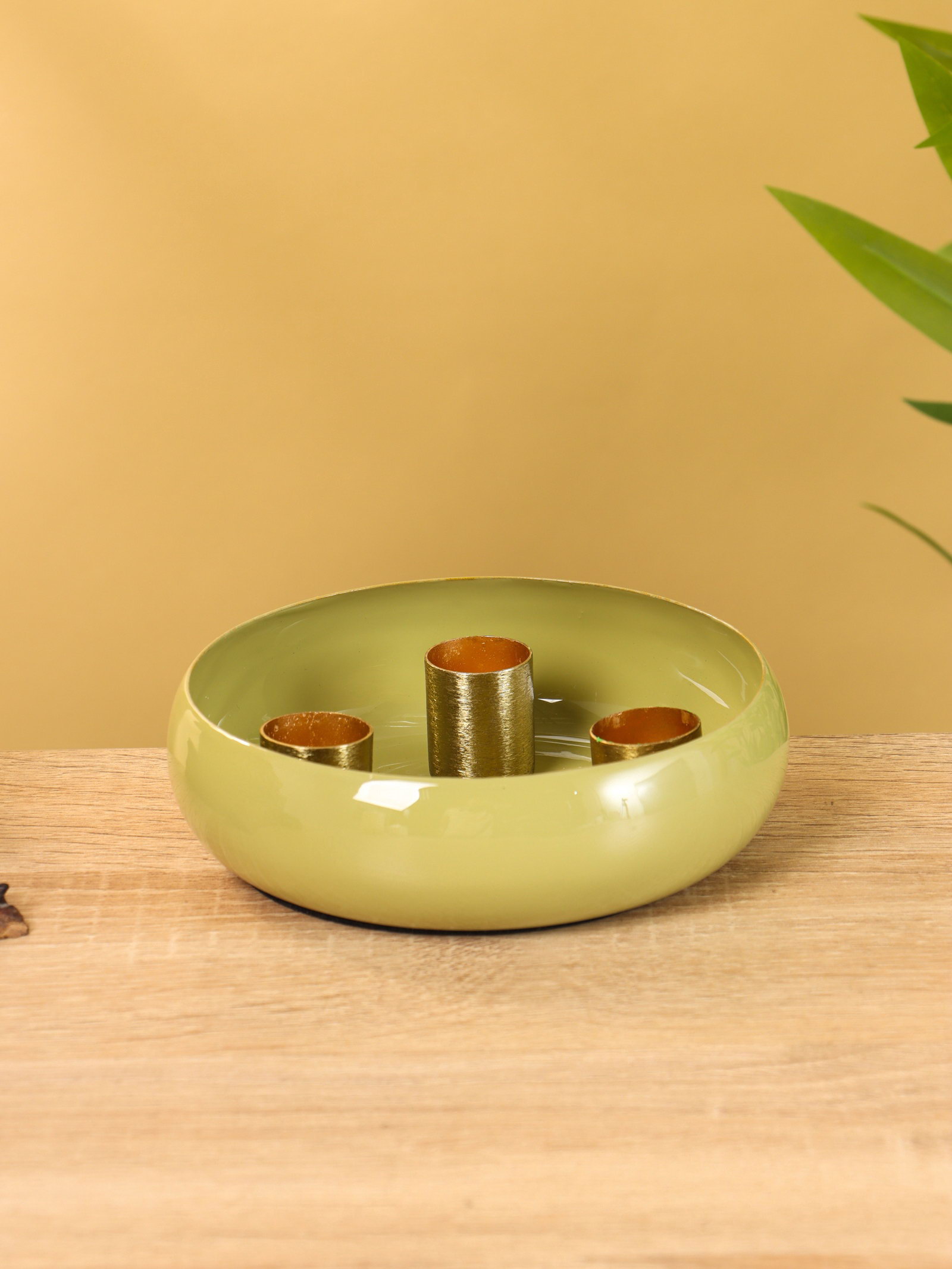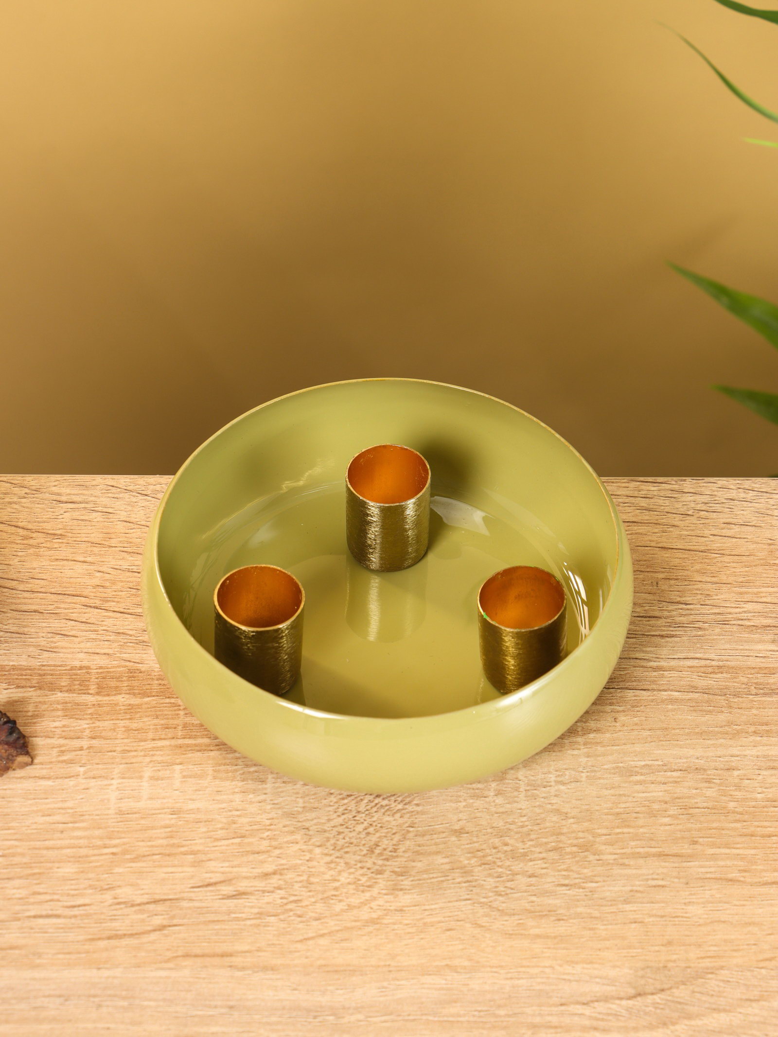 Подсвечник на 3 свечи на магнитах "Оливковый", 13.5x13.5x4 см, 14x14x4.5 см., Индия