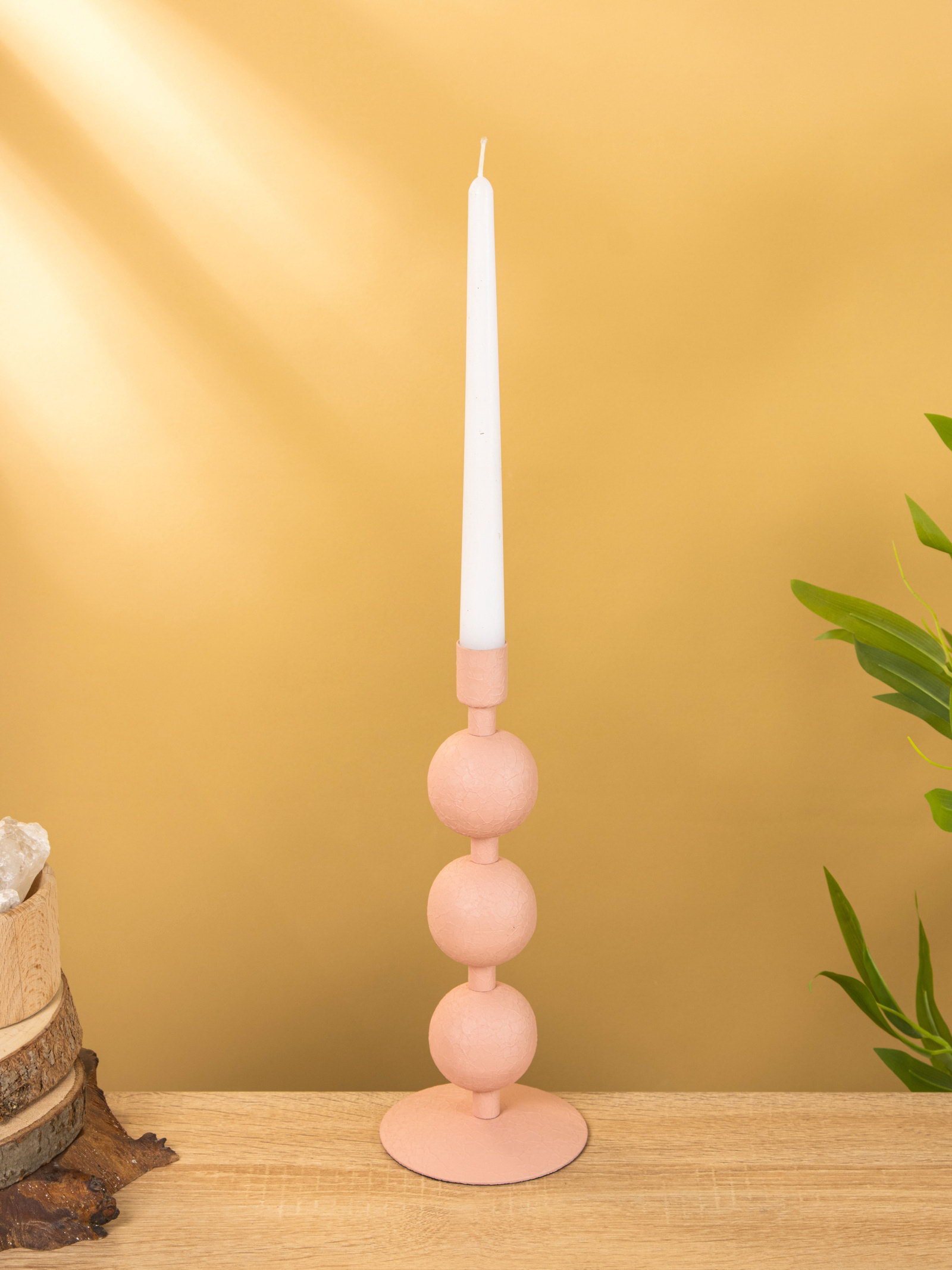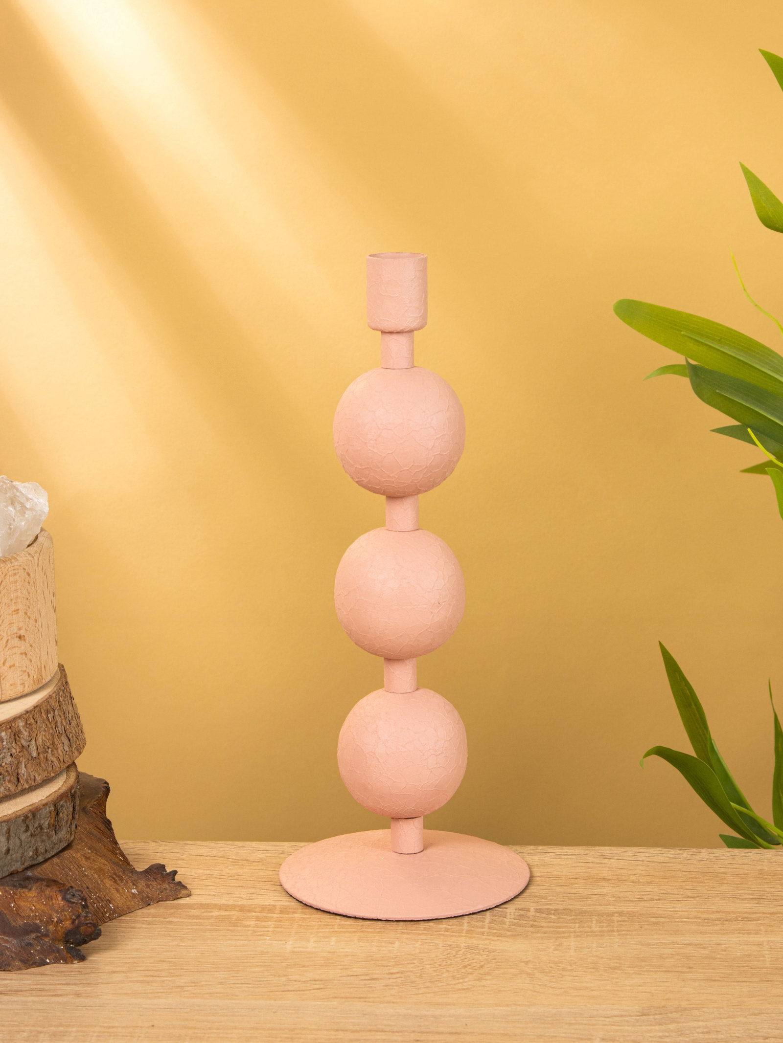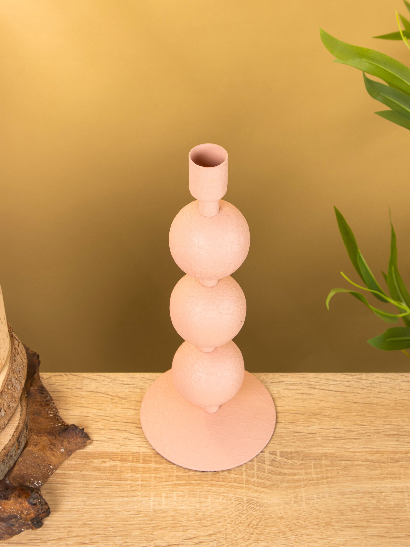 Подсвечник на 1 свечу текстурный "Пудровый розовый", с 3 сферами, 10x10x25 см, 10x10x25 см., Индия