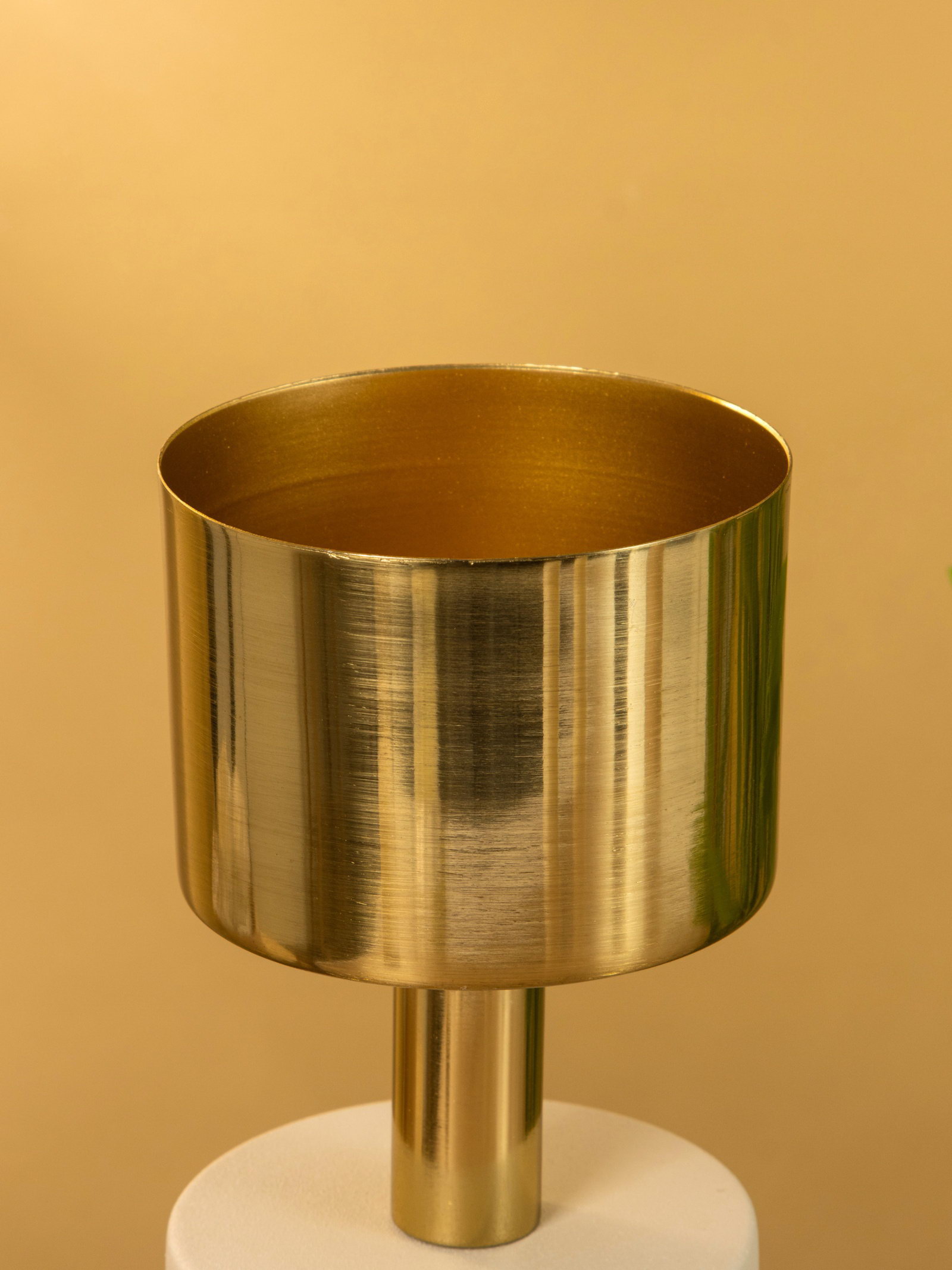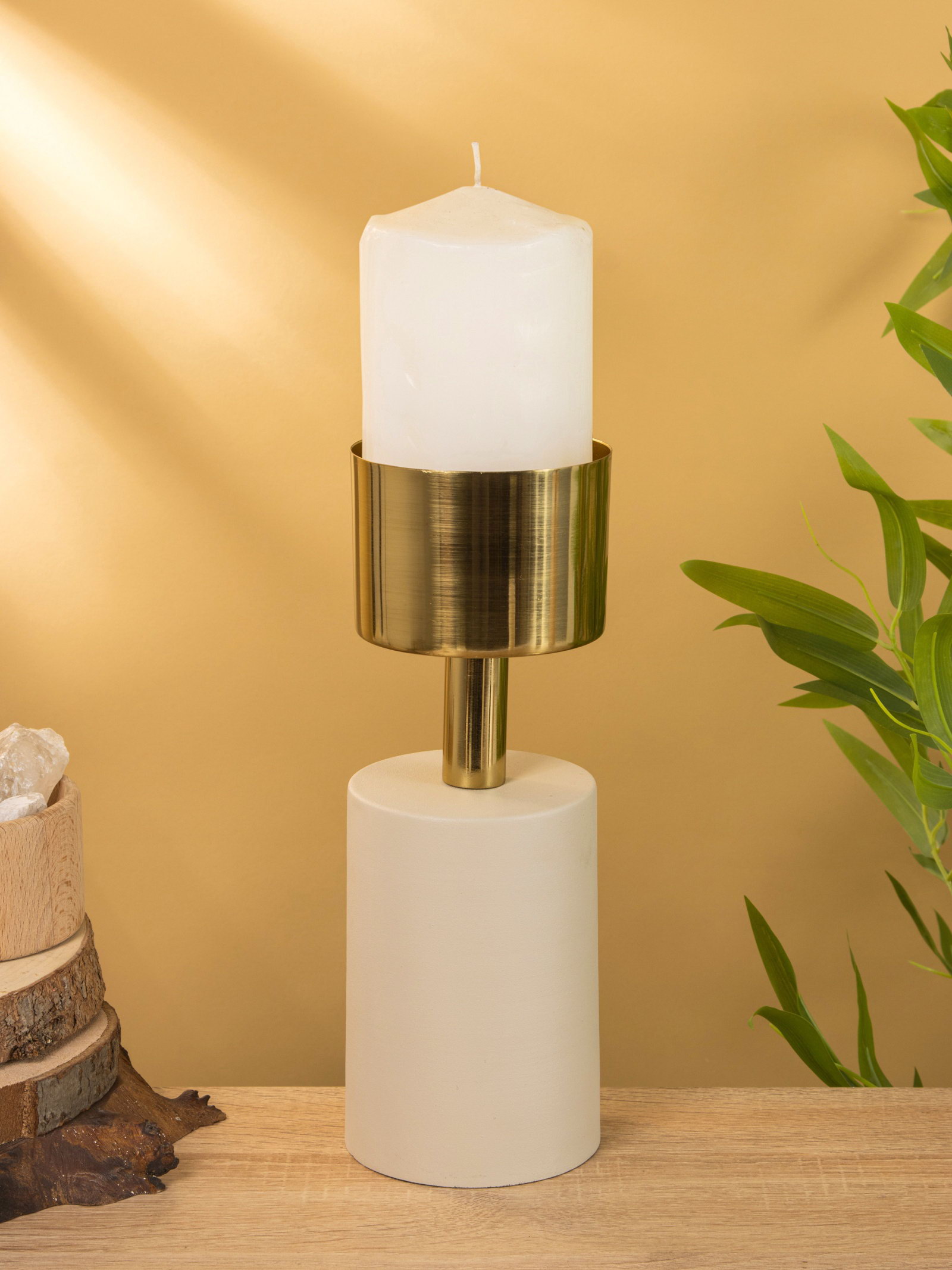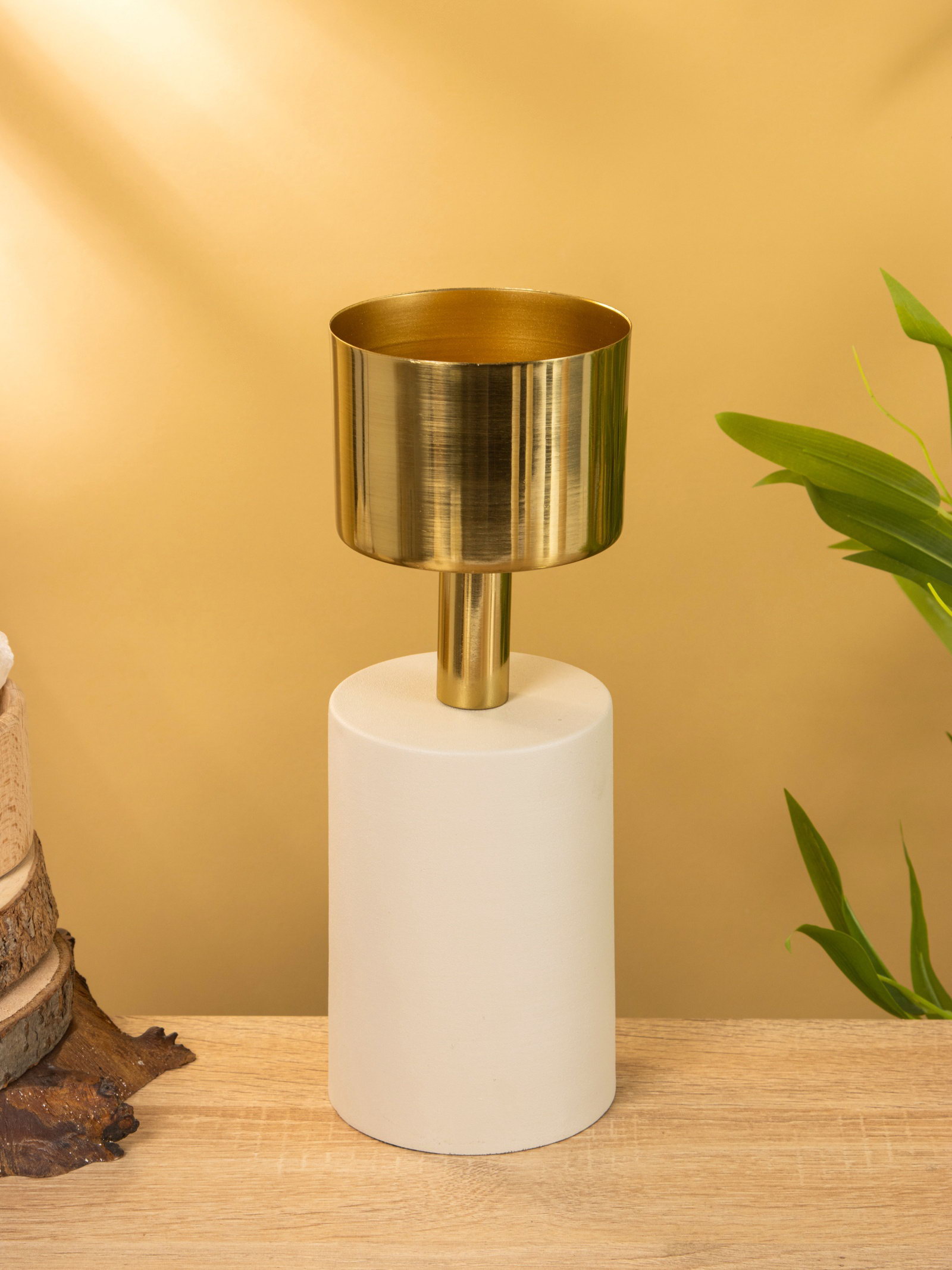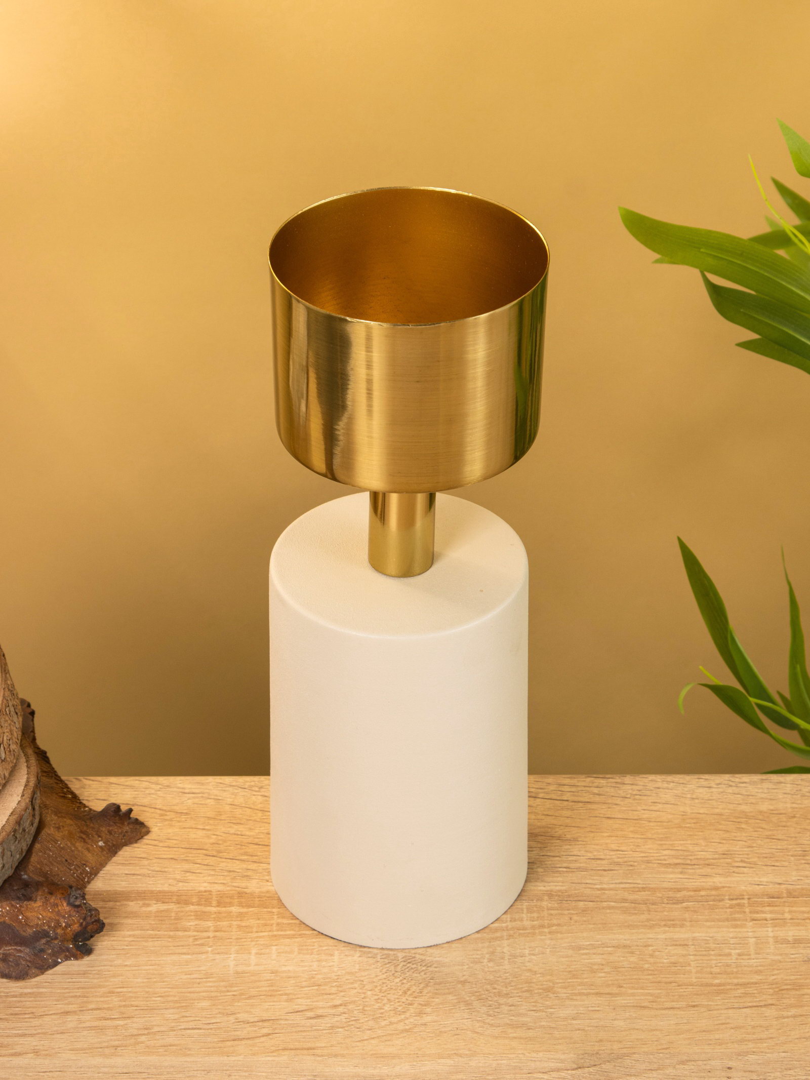 Подсвечник на 1 свечу "Кубок", 10x10x28.5 см, бежевый с золотом, 10x10x28.5 см., Индия