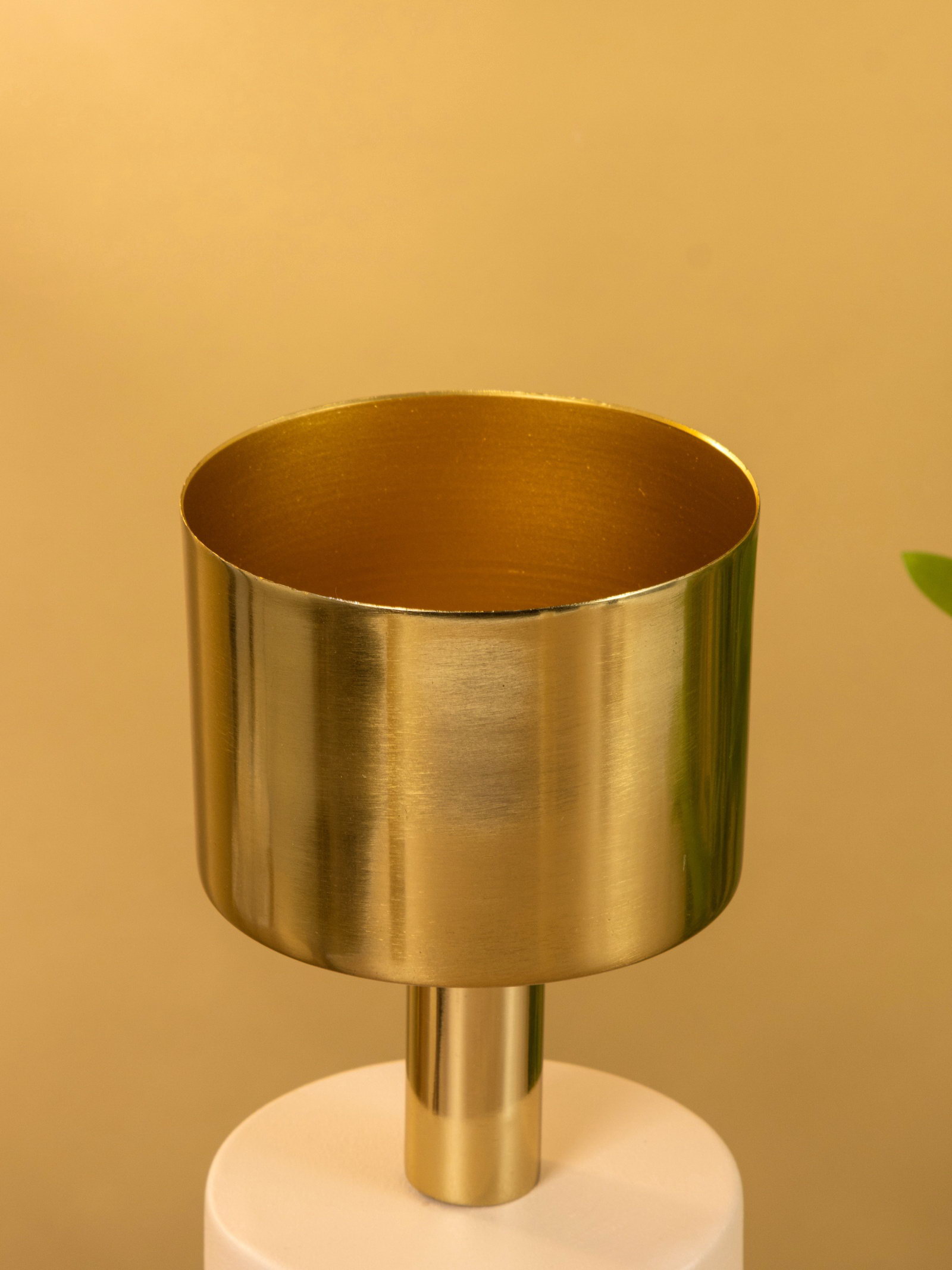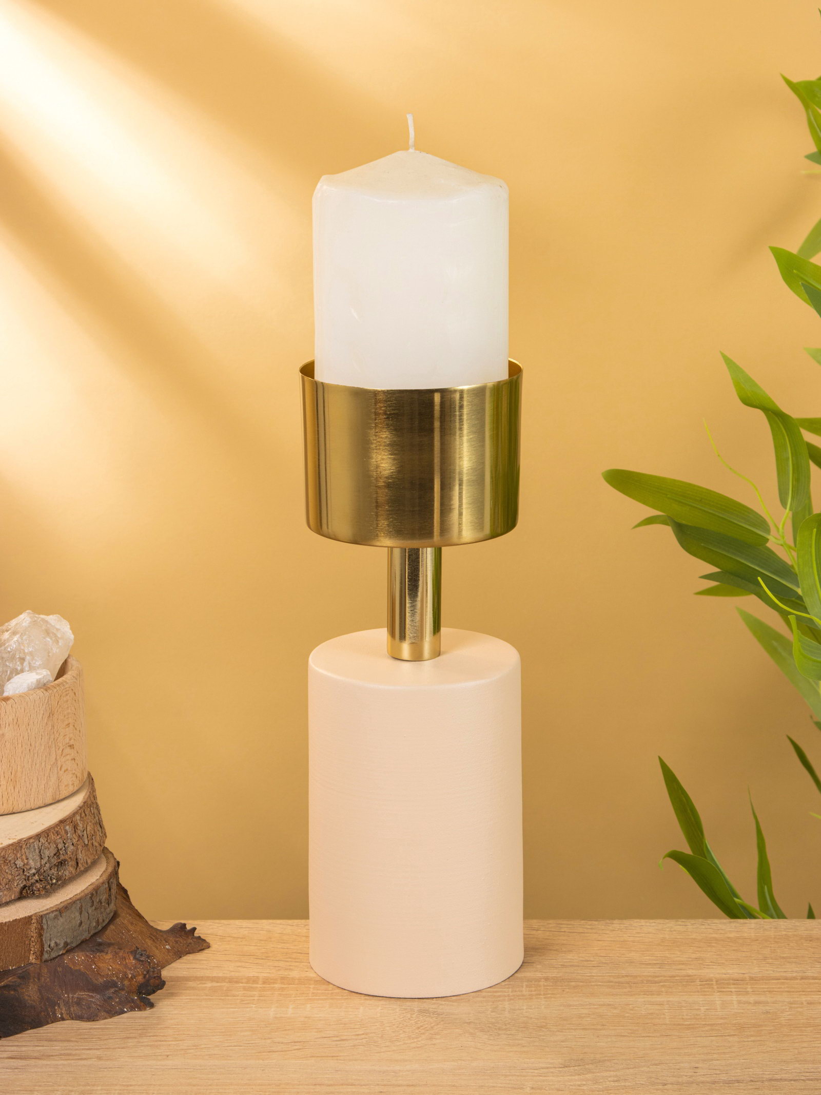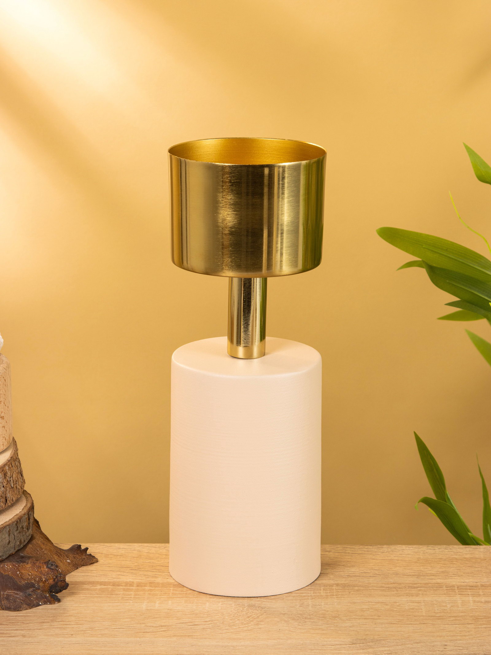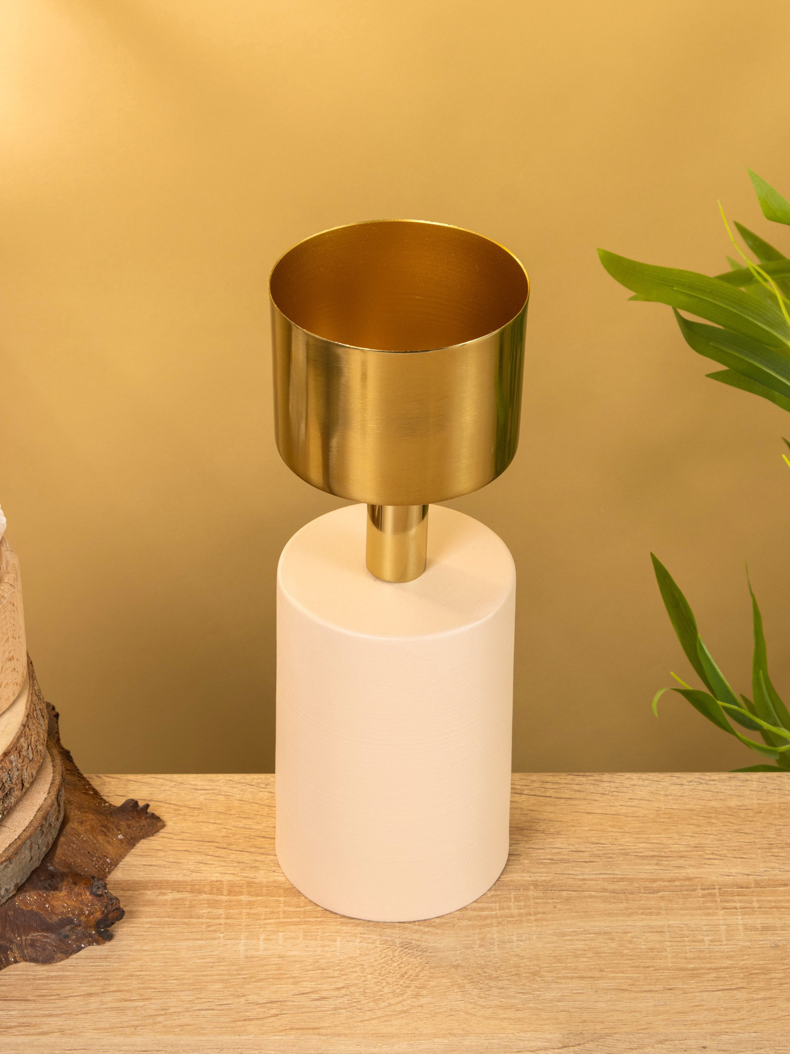 Подсвечник на 1 свечу "Кубок", 10x10x28.5 см, бежевый с золотом, 10x10x28.5 см., Индия
