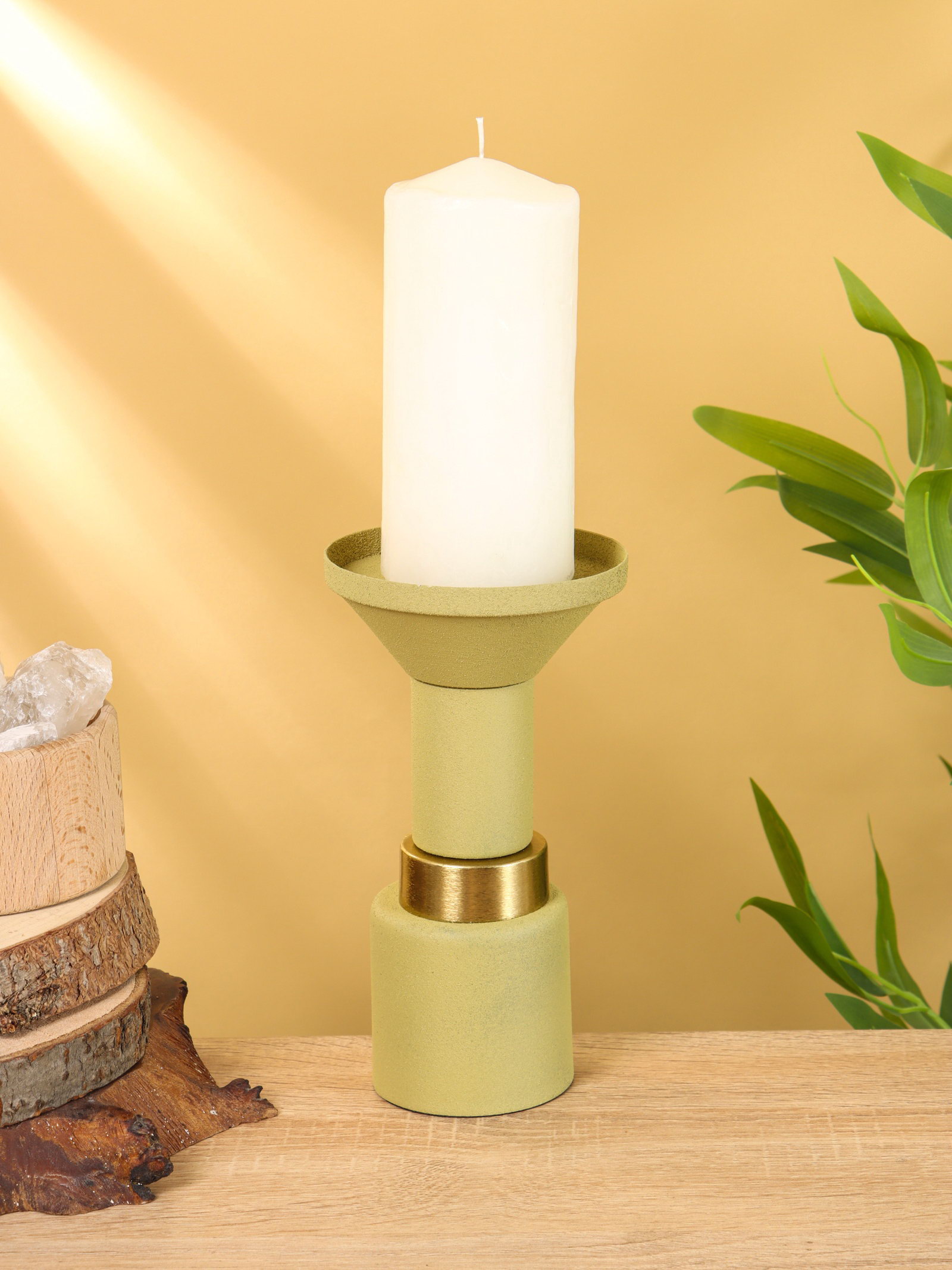 Подсвечник на 1 свечу текстурный "Оливковый", 10.5x10.5x19.5 см, 10.5x10.5x20 см., Индия