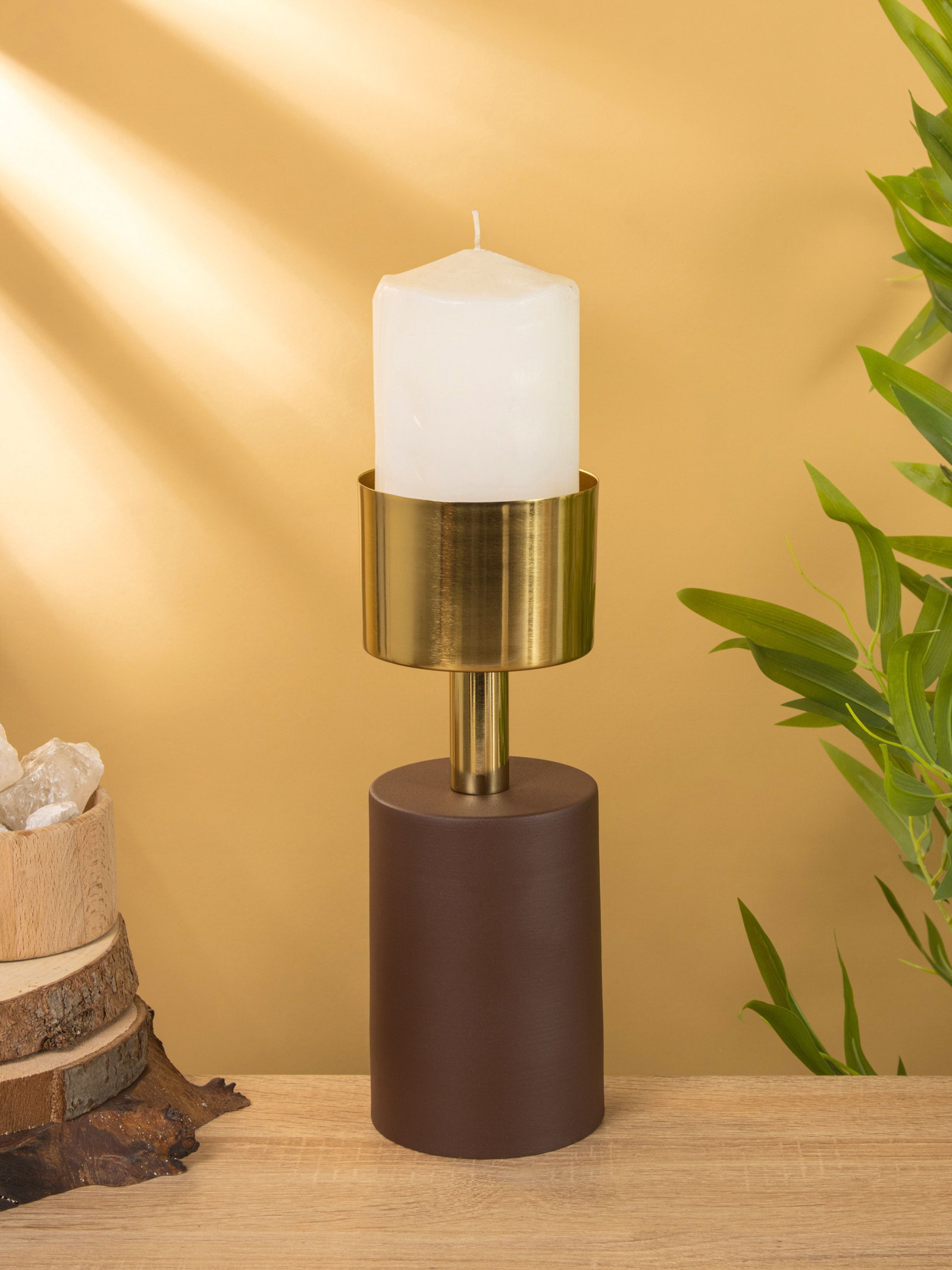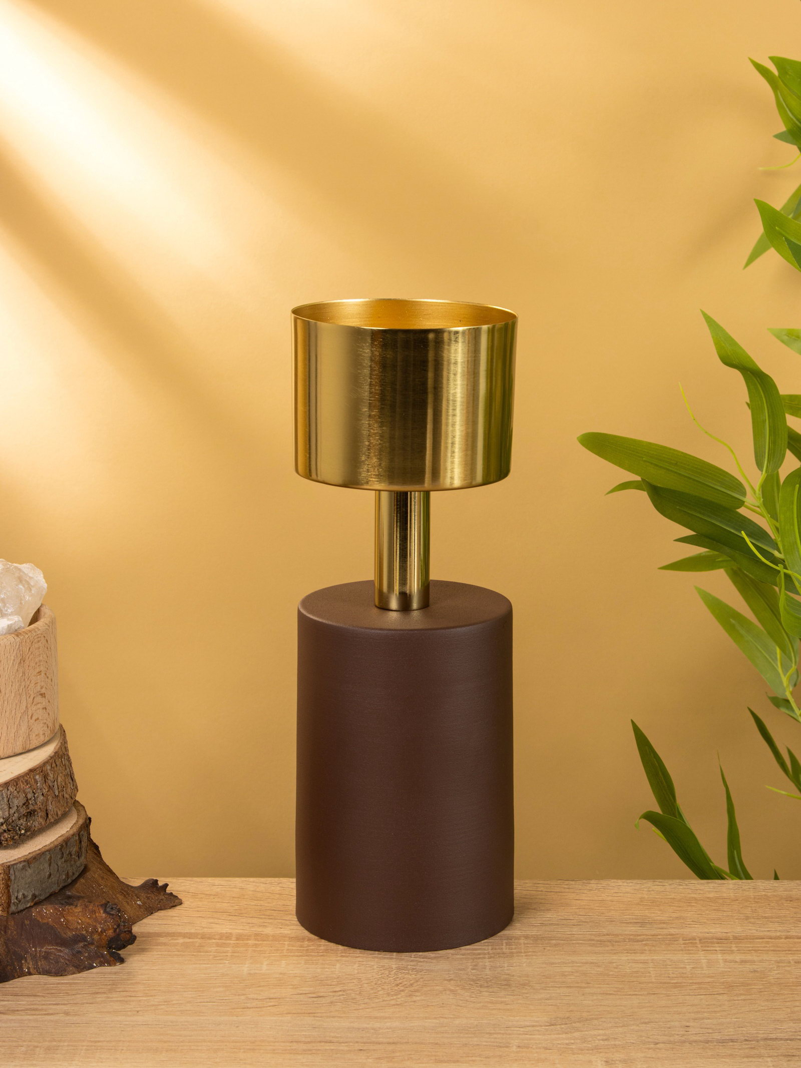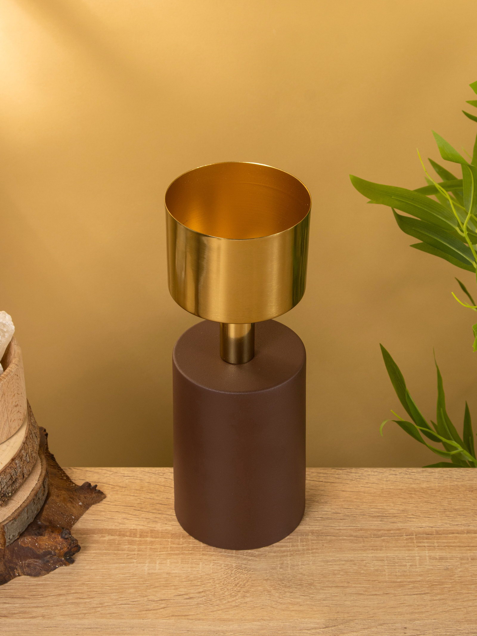 Подсвечник на 1 свечу "Кубок", 10x10x28.5 см, шоколад с золотом, 10x10x28.5 см., Индия