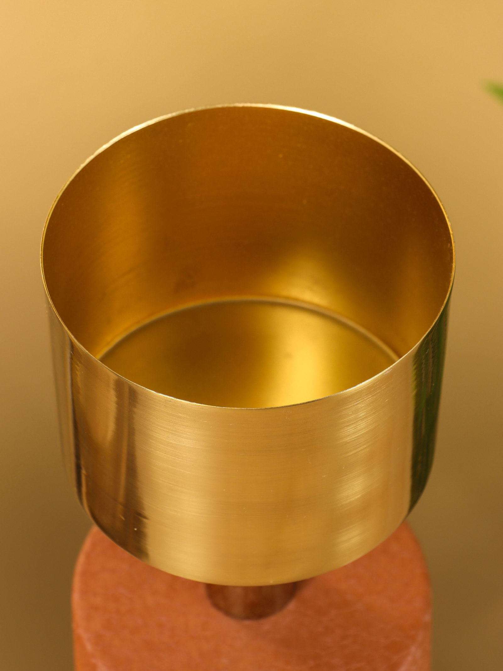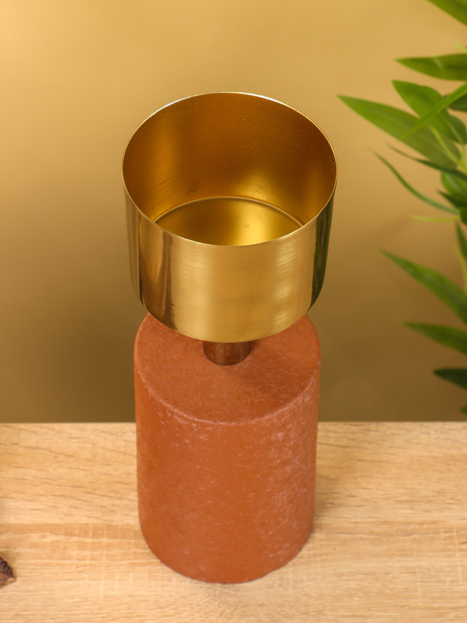 Подсвечник на 1 свечу "Кубок", 10x10x28.5 см, бисквитный с золотом, 10x10x28.5 см., Индия