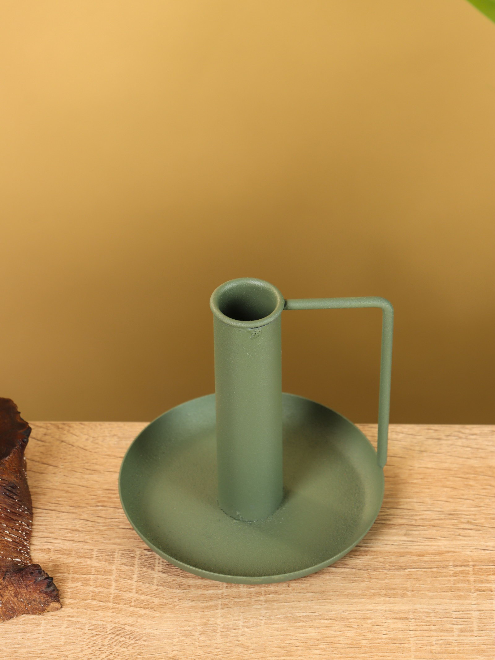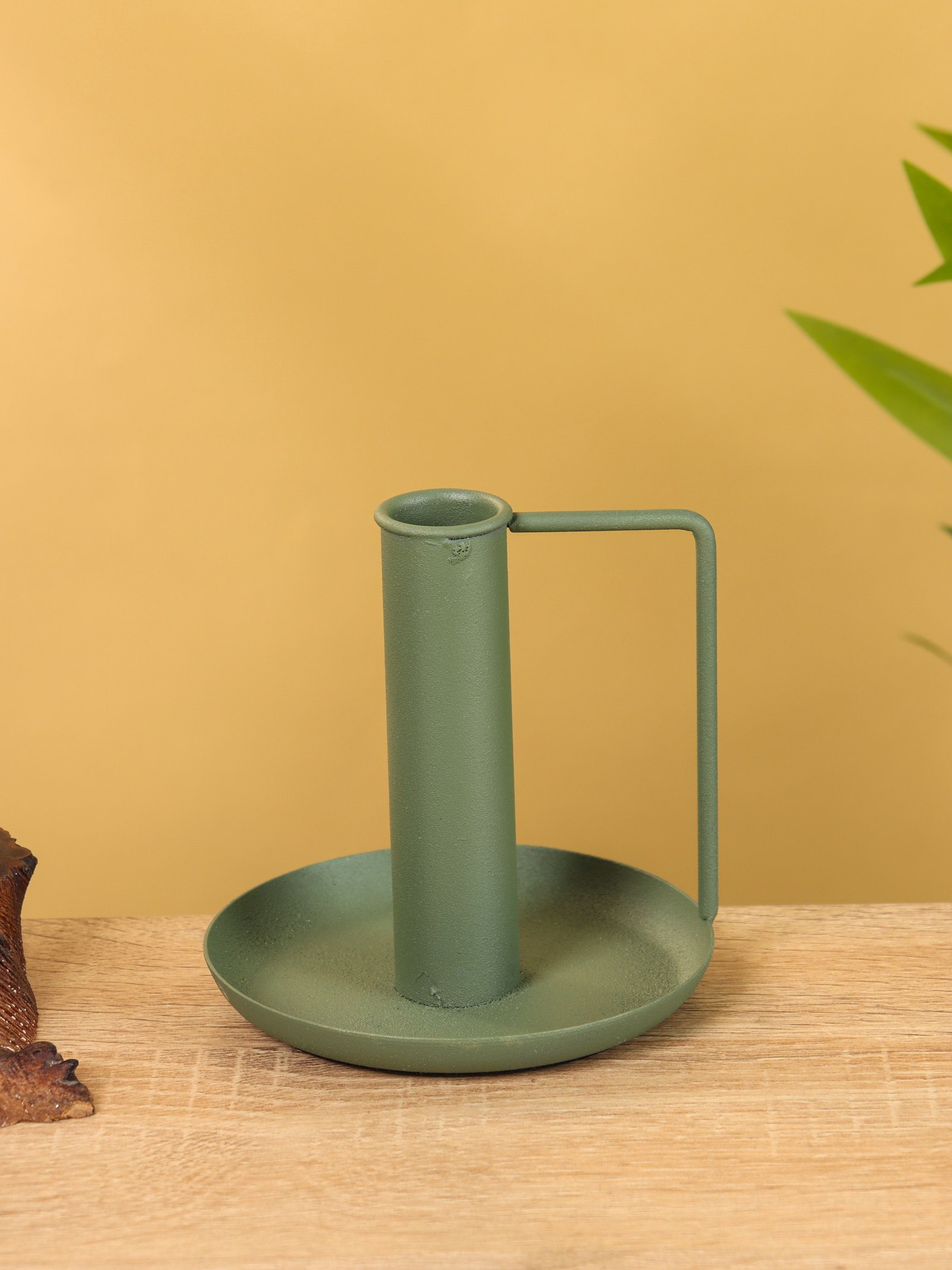 Подсвечник на 1 свечу текстурный с ручкой и блюдцем "Болотный", 10x10x9.5 +/- 0.5 см, 10x10x9.5 см., Индия