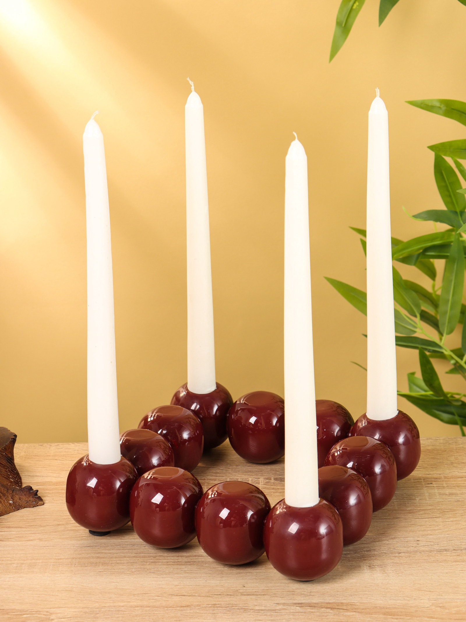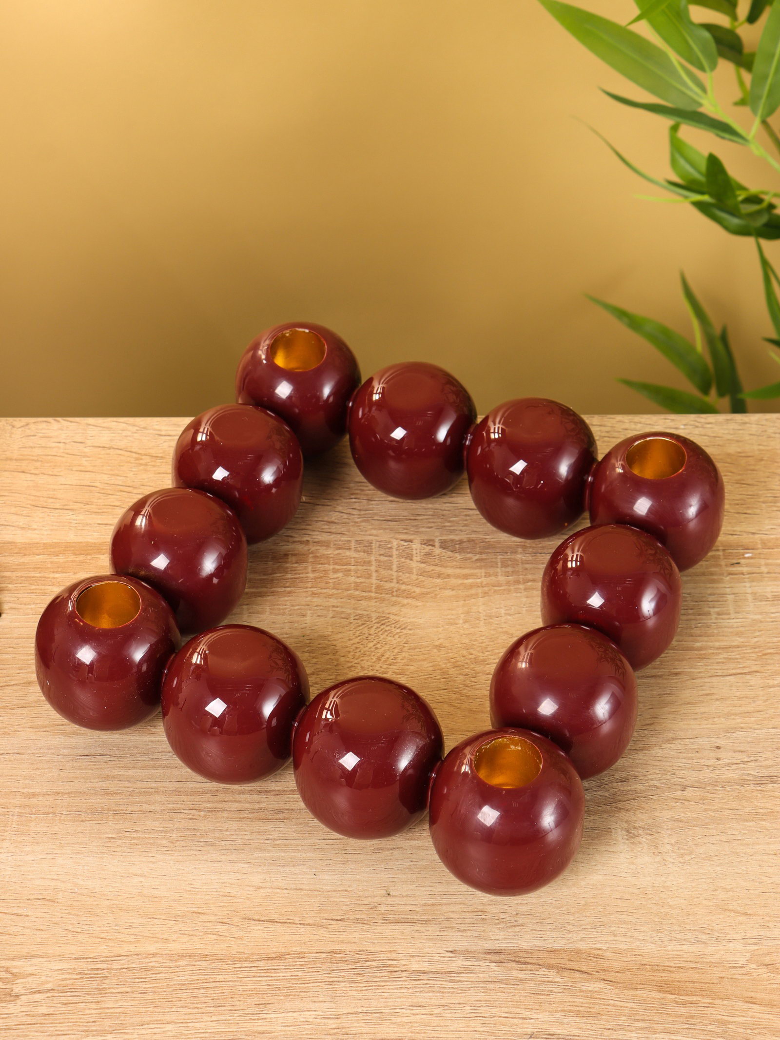 Подсвечник на 4 свечи "Бусы", с 12 сферами, 20.5x20.5x5.5 см, сливовый, 21.5x21.5x5.5 см., Индия