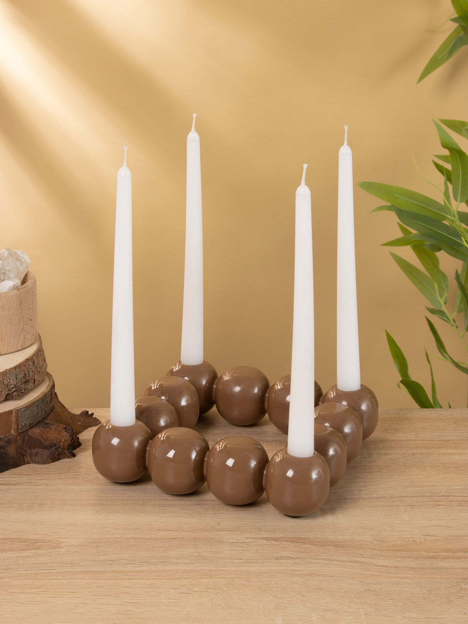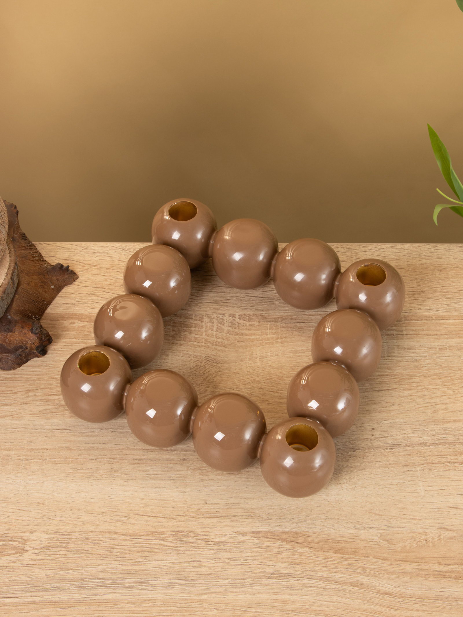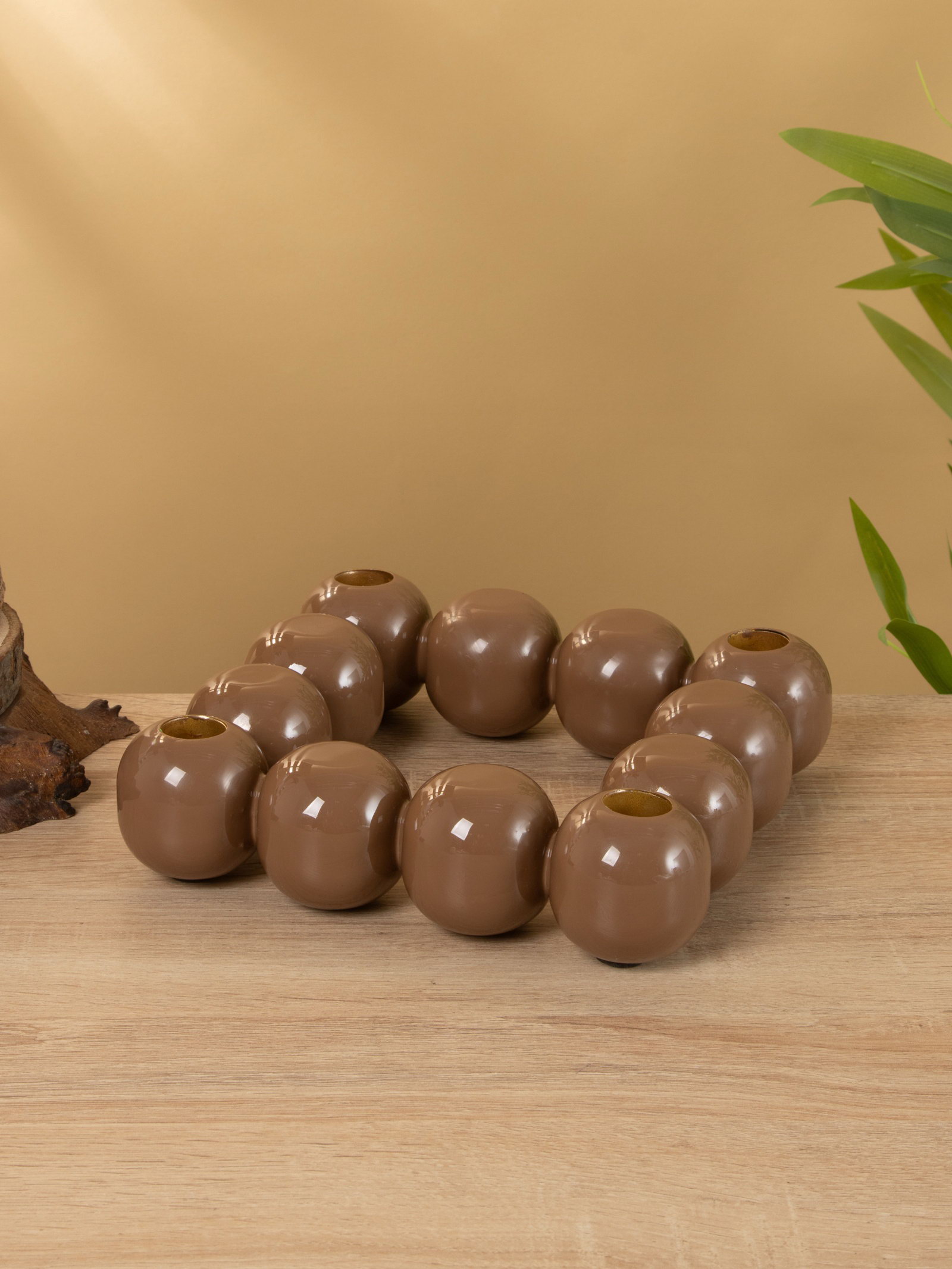 Подсвечник на 4 свечи "Бусы", с 12 сферами, 20.5x20.5x5.5 см, бисквит, 21.5x21.5x5.5 см., Индия