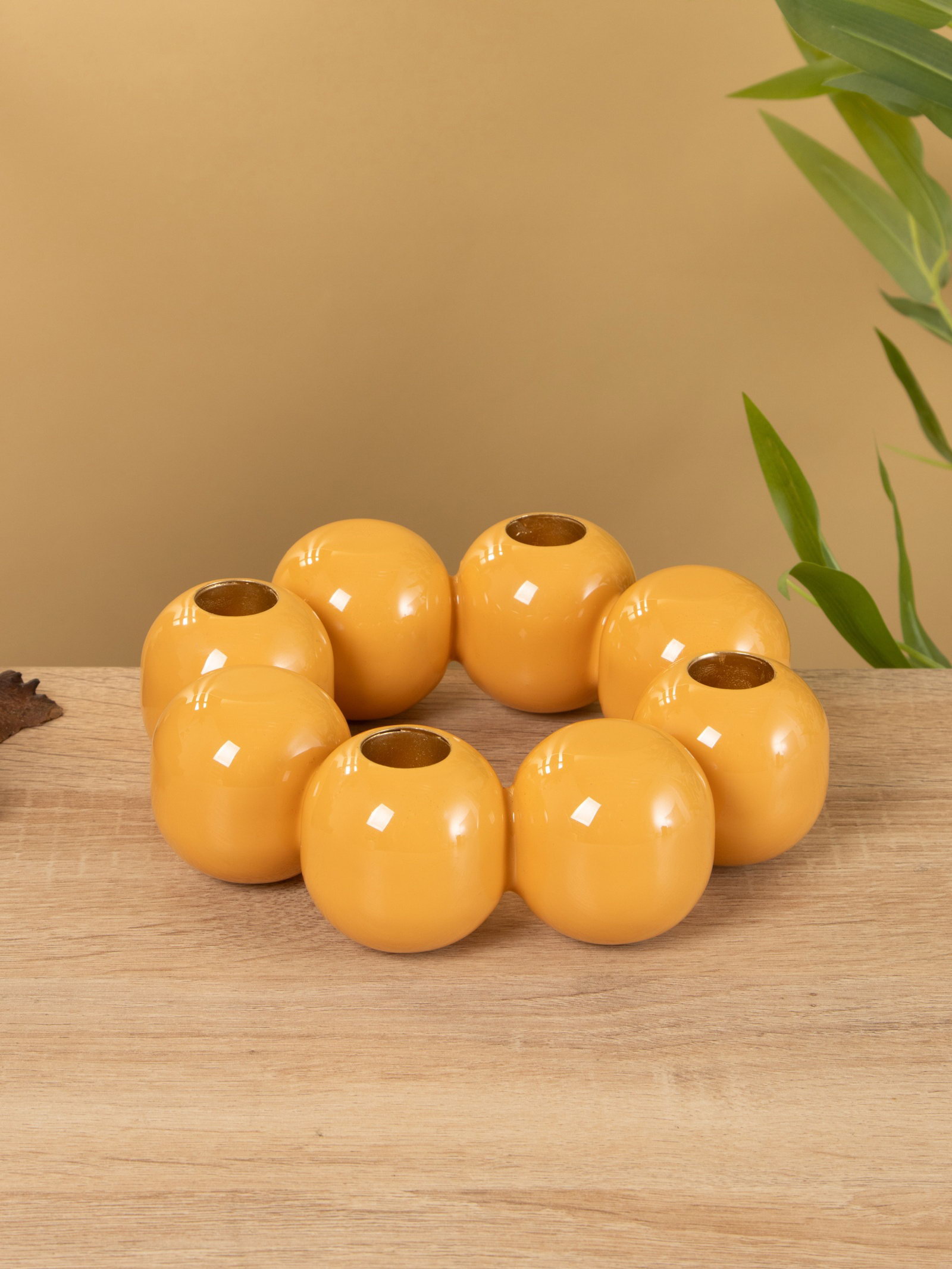 Подсвечник на 4 свечи "Бусы. Песок", с 8 сферами, 19x19x5.5 см, 19x19x5.5 см., Индия