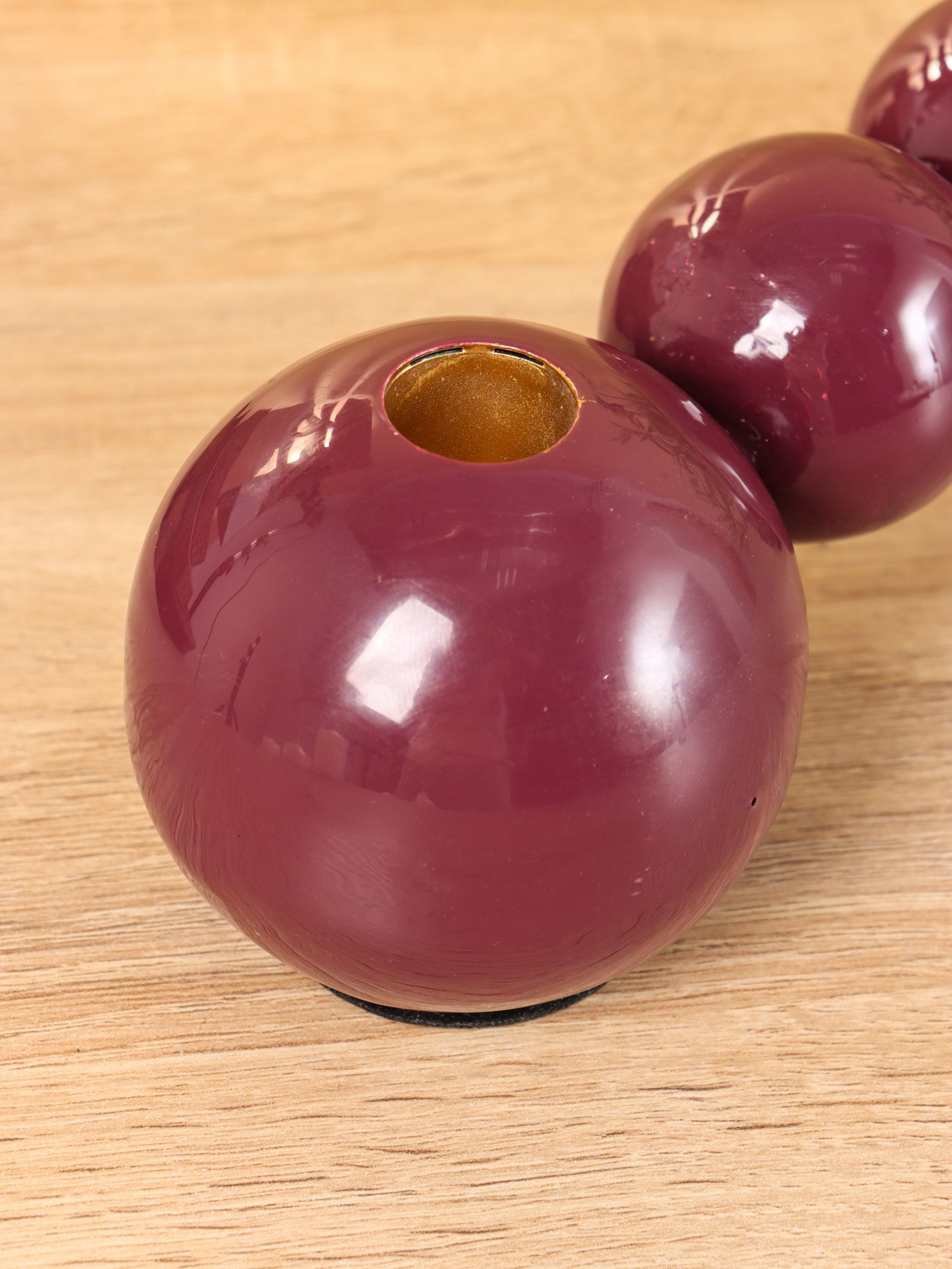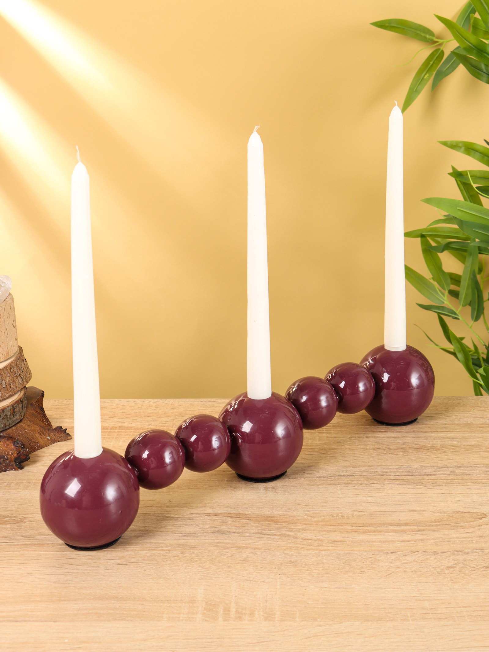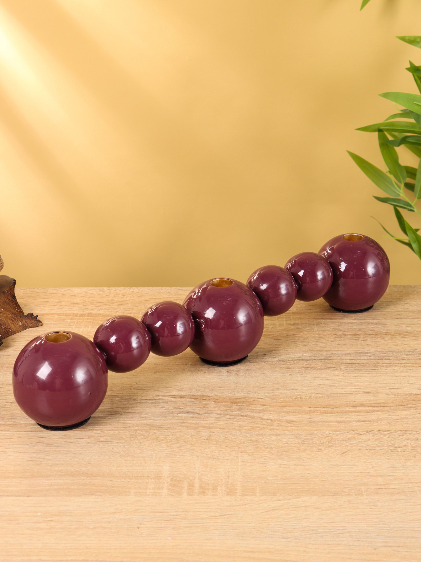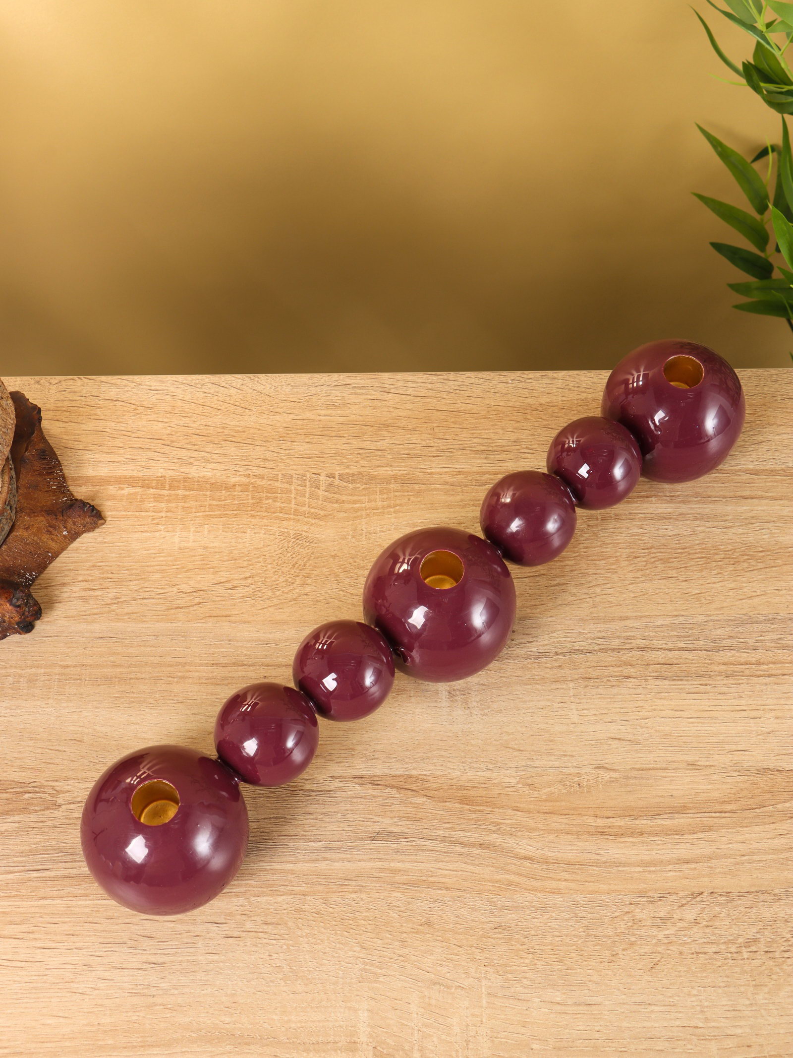 Подсвечник на 3 свечи "Бусы", с 7 сферами, 44x8x8 см, баклажановый, 7x41x7 см., Индия