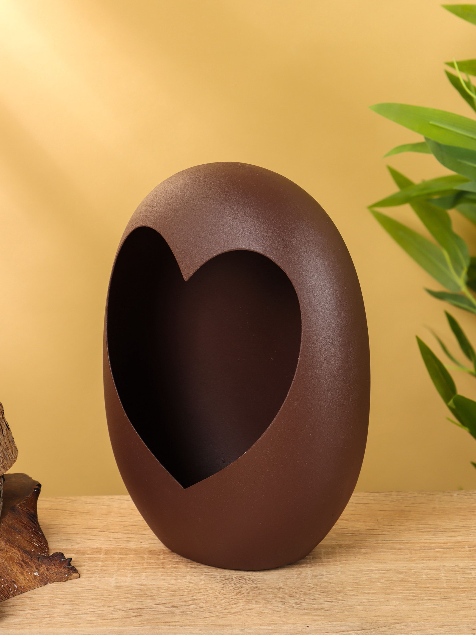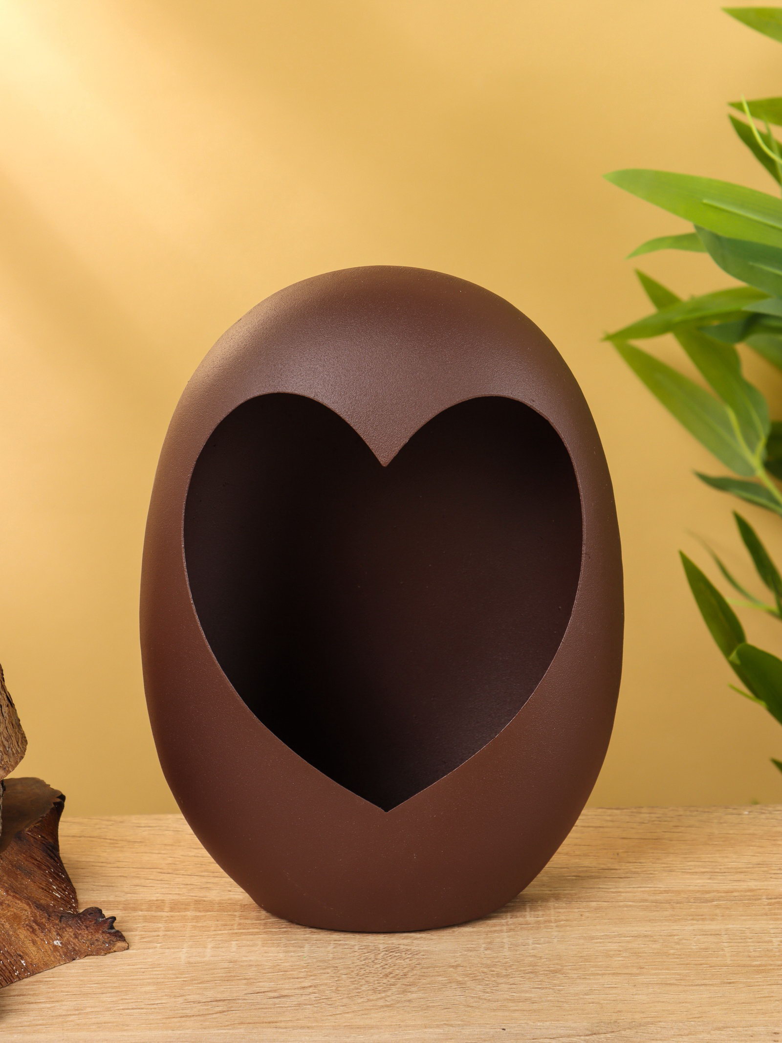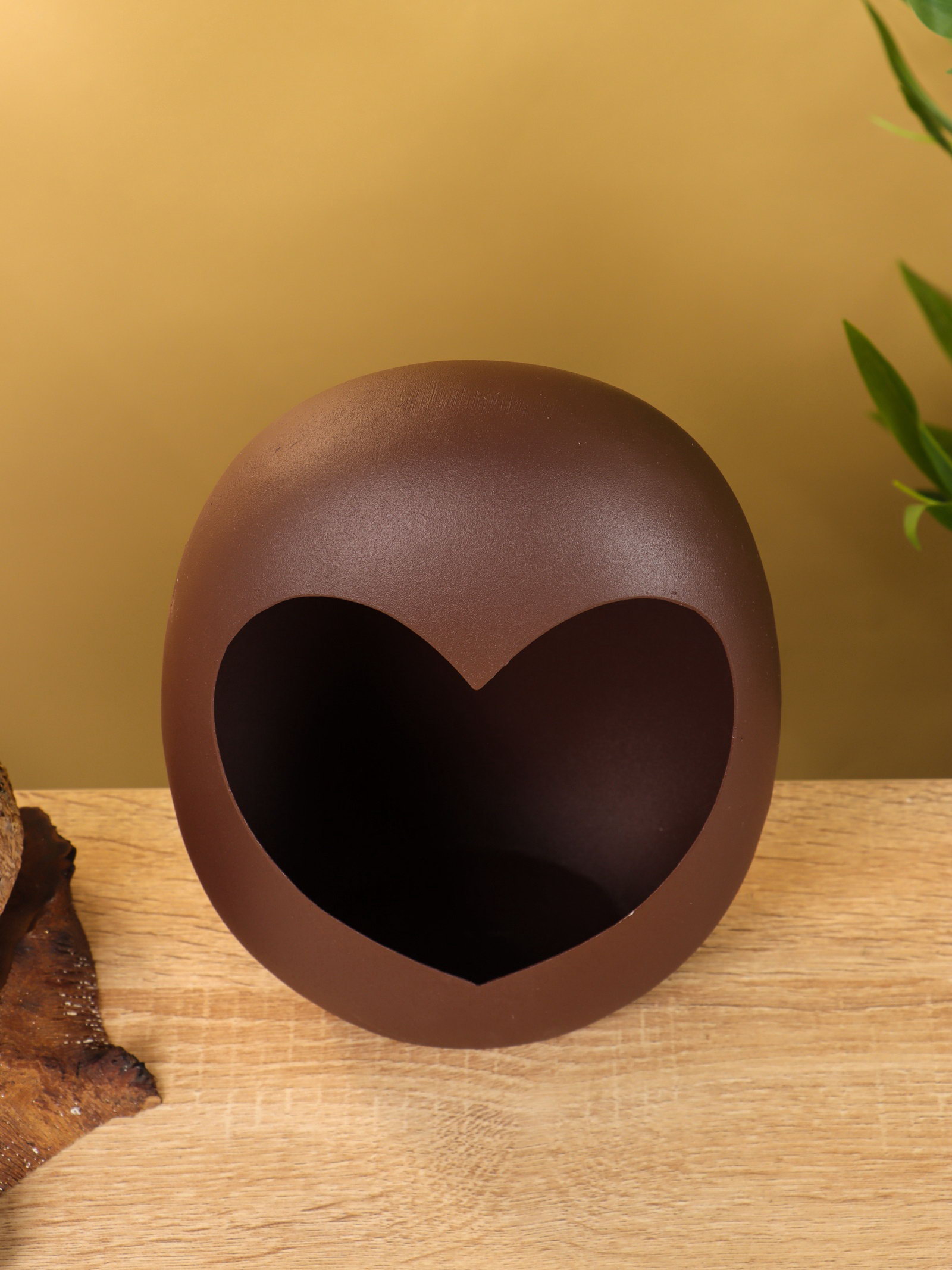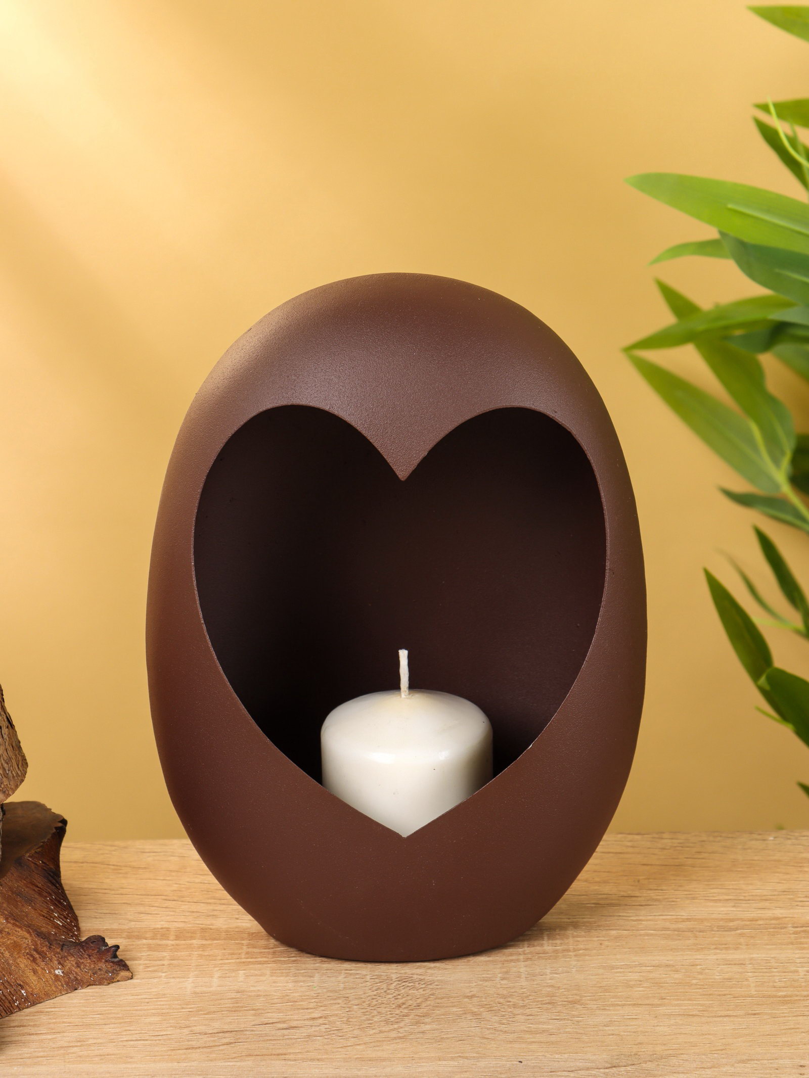 Подсвечник в форме сердца текстурный "Шоколад", 16.5x8.5x22+/- 1 см, 8.5x16.5x22 см., Индия