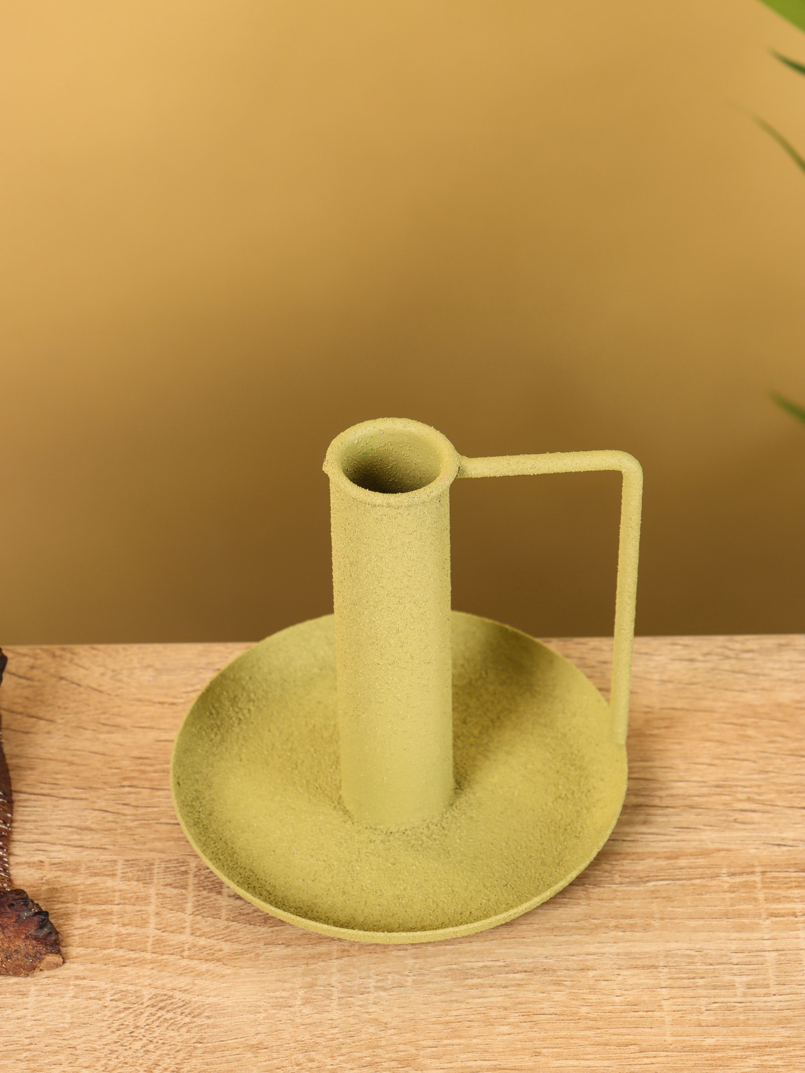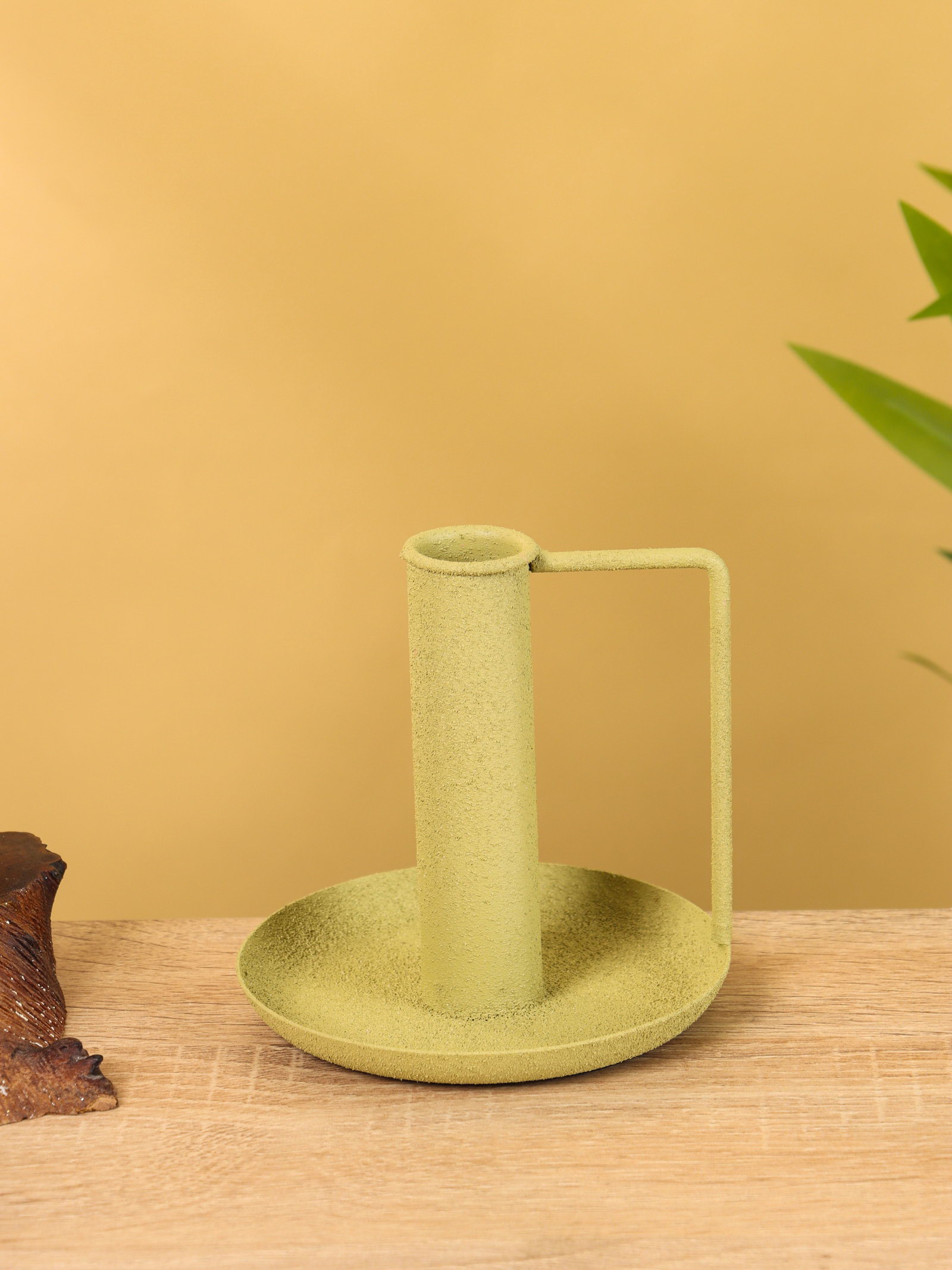 Подсвечник на 1 свечу текстурный с ручкой и блюдцем "Оливковый", 10x10x9.5 +/- 0.5 см, 10x10x9.5 см., Индия