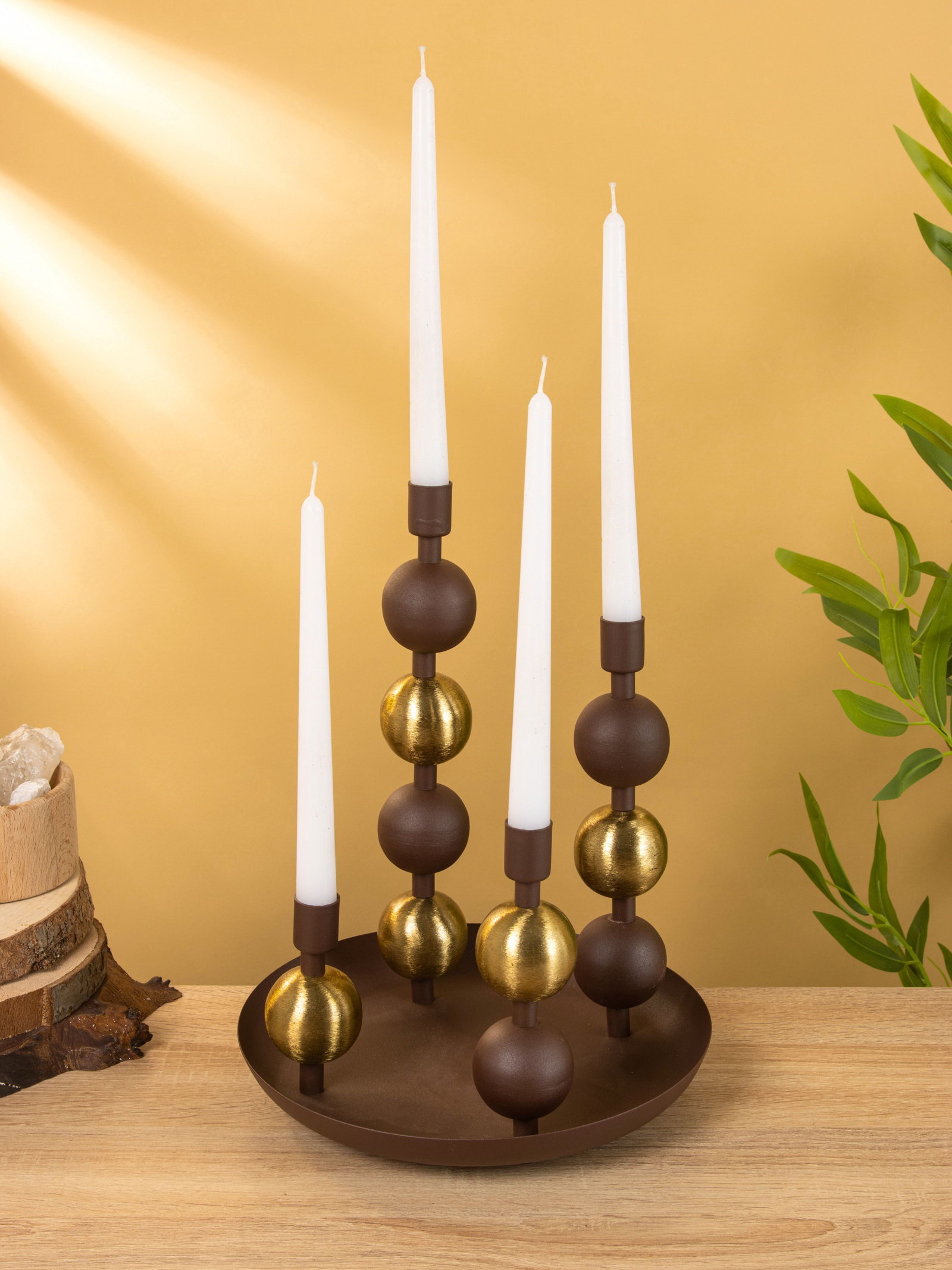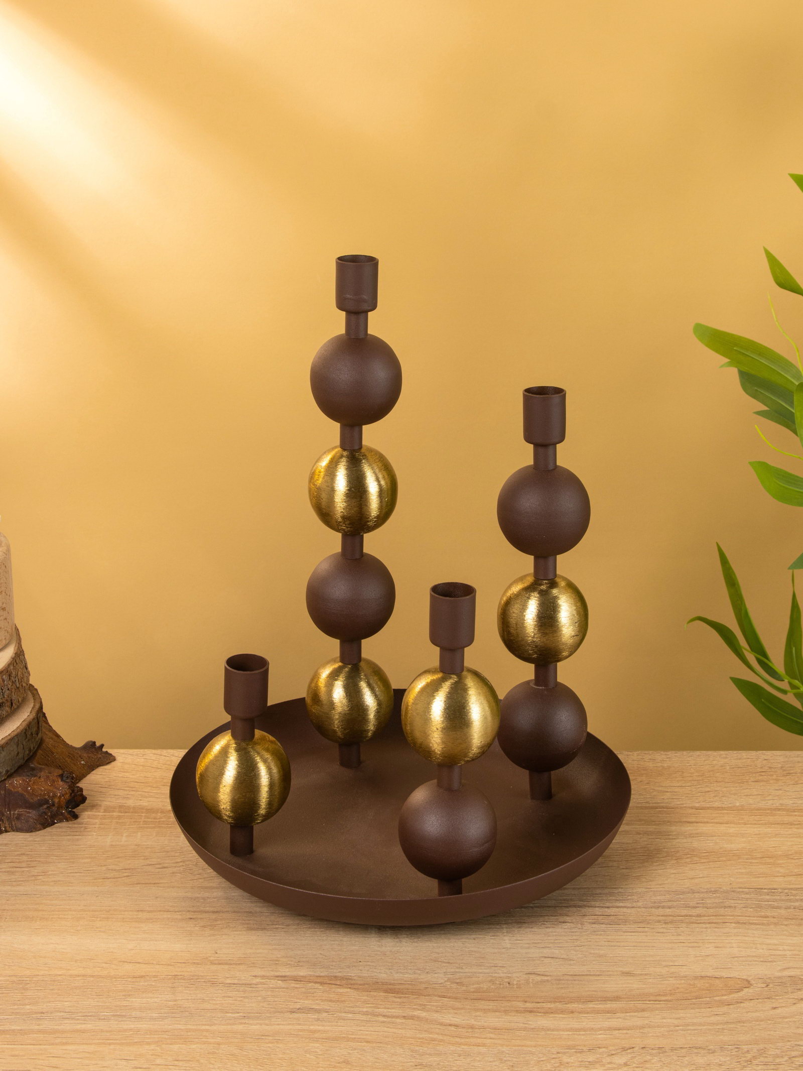 Подсвечник на 4 свечи на тарелке со сферами, 25.5x22.5x32 см, шоколад, 22.5x25.5x32 см., Индия