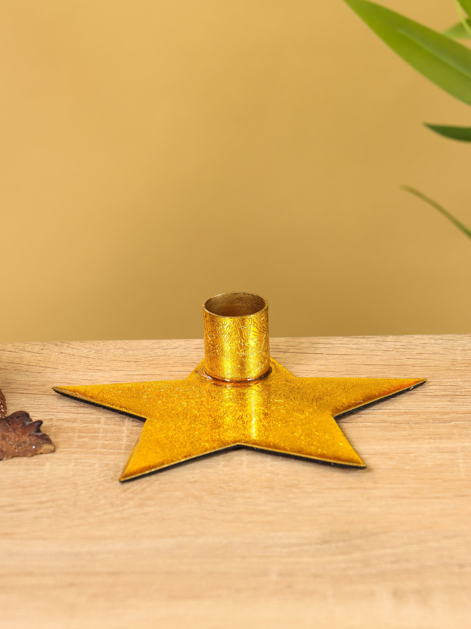 Подсвечник на 1 свечу "Звезда", 13x12x3 см, золотой, 12x13x3 см., Индия