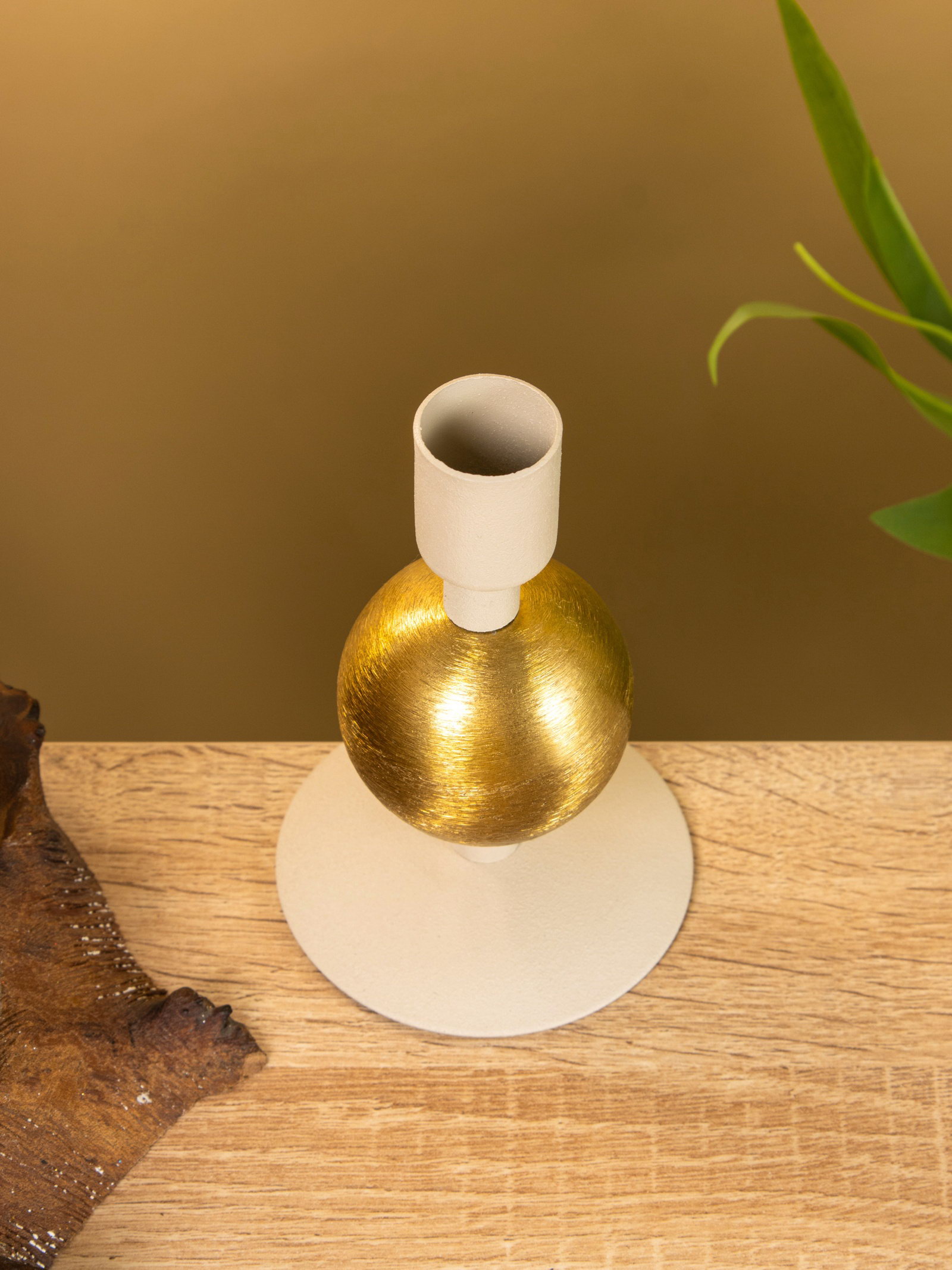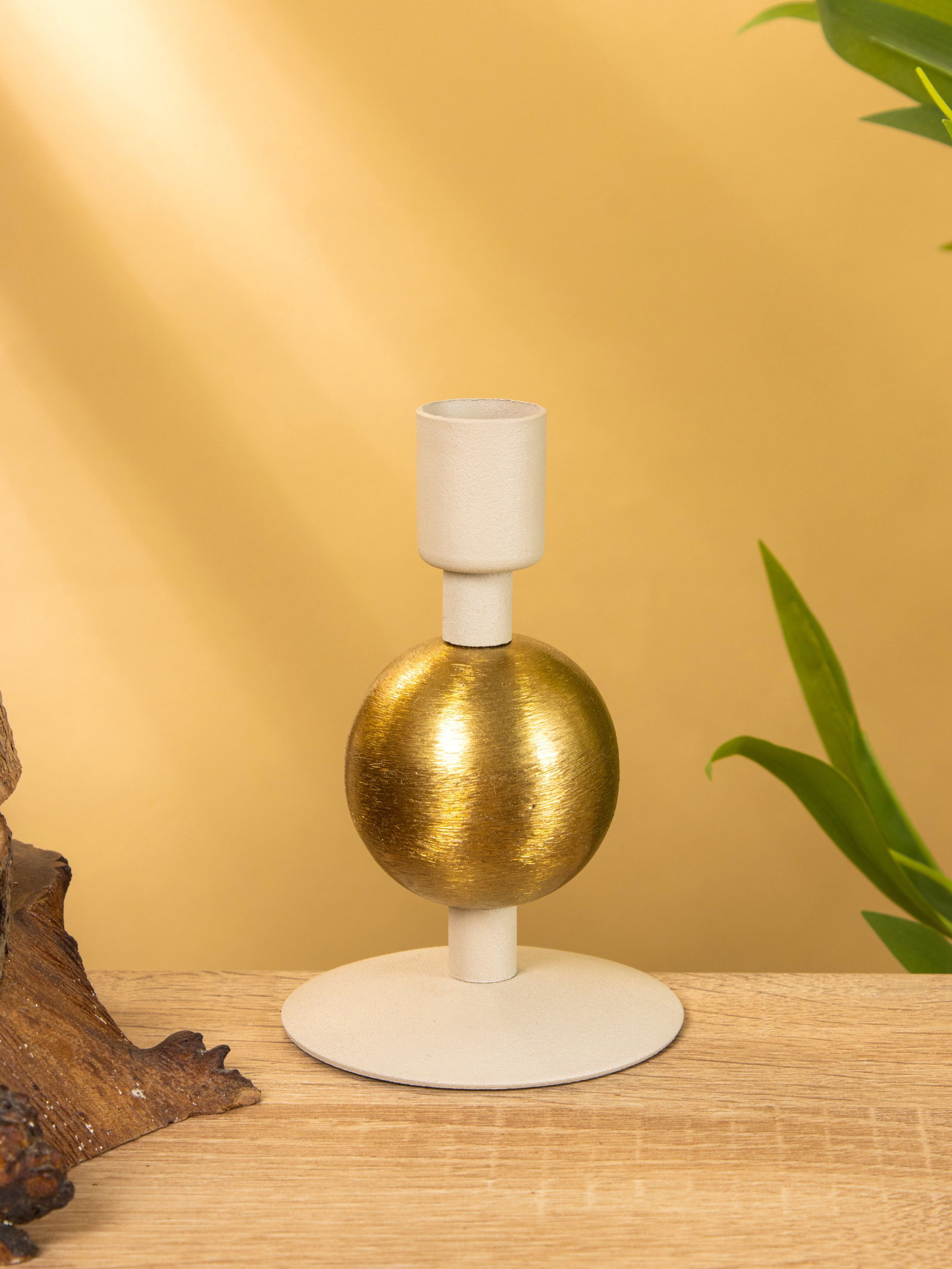 Подсвечник на 1 свечу текстурный "Бежевый", с 1 сферой, 7.5x7.5x11.5 см, 7.5x7.5x11.5 см., Индия