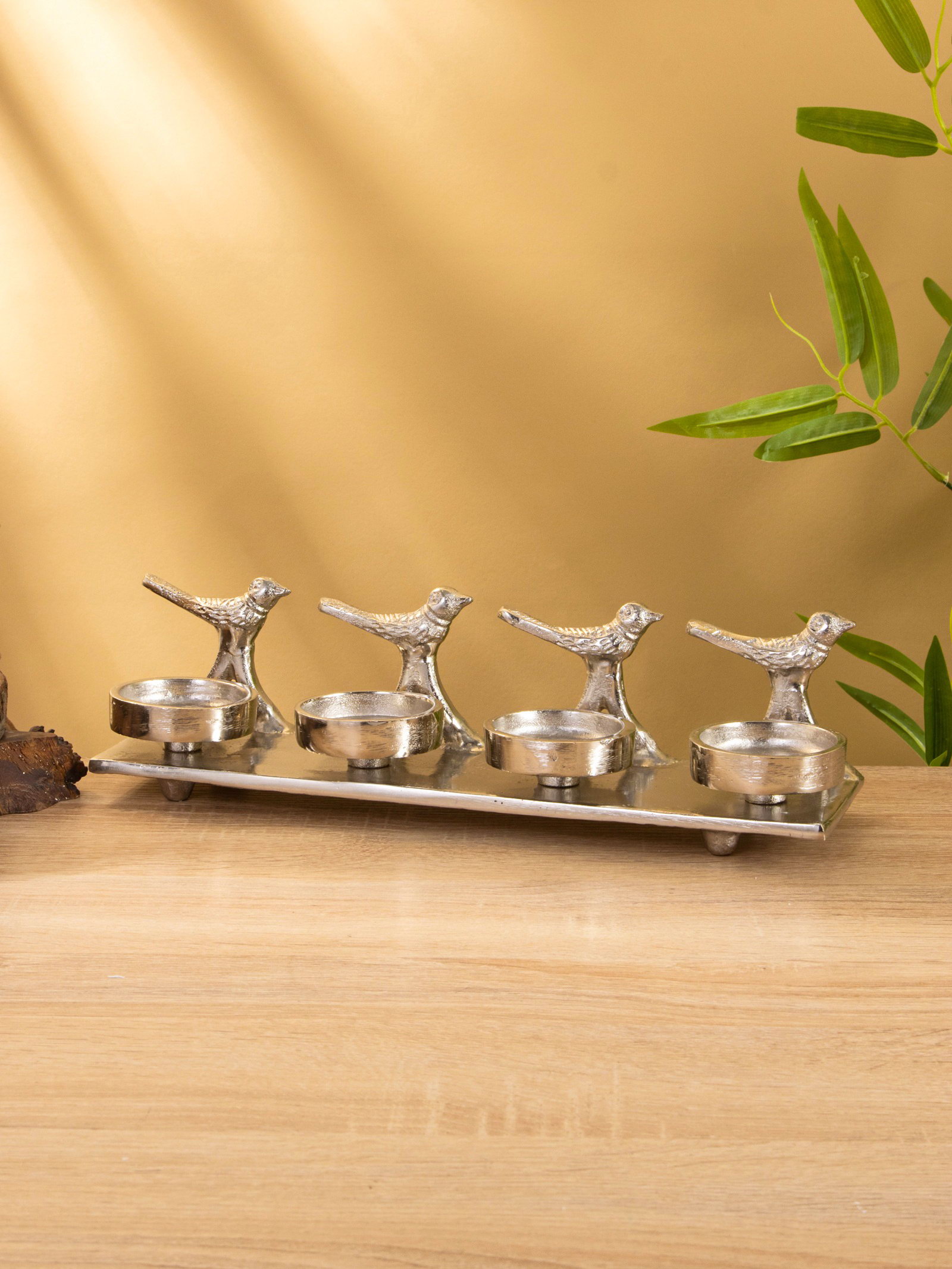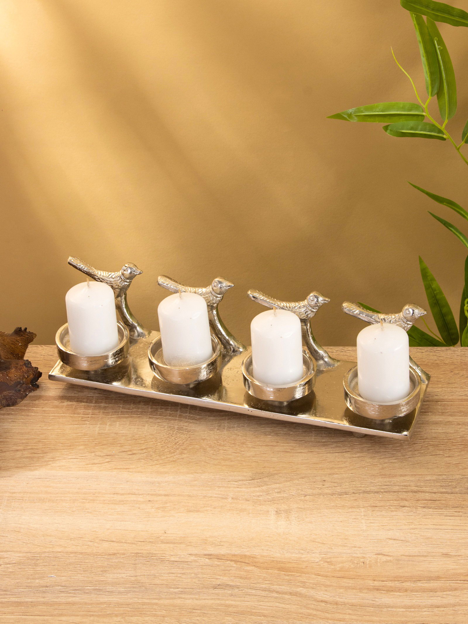 Подсвечник на 4 свечи "Птенцы", 32.5x9x7 см, алюминий, 9x32.5x7 см., Индия