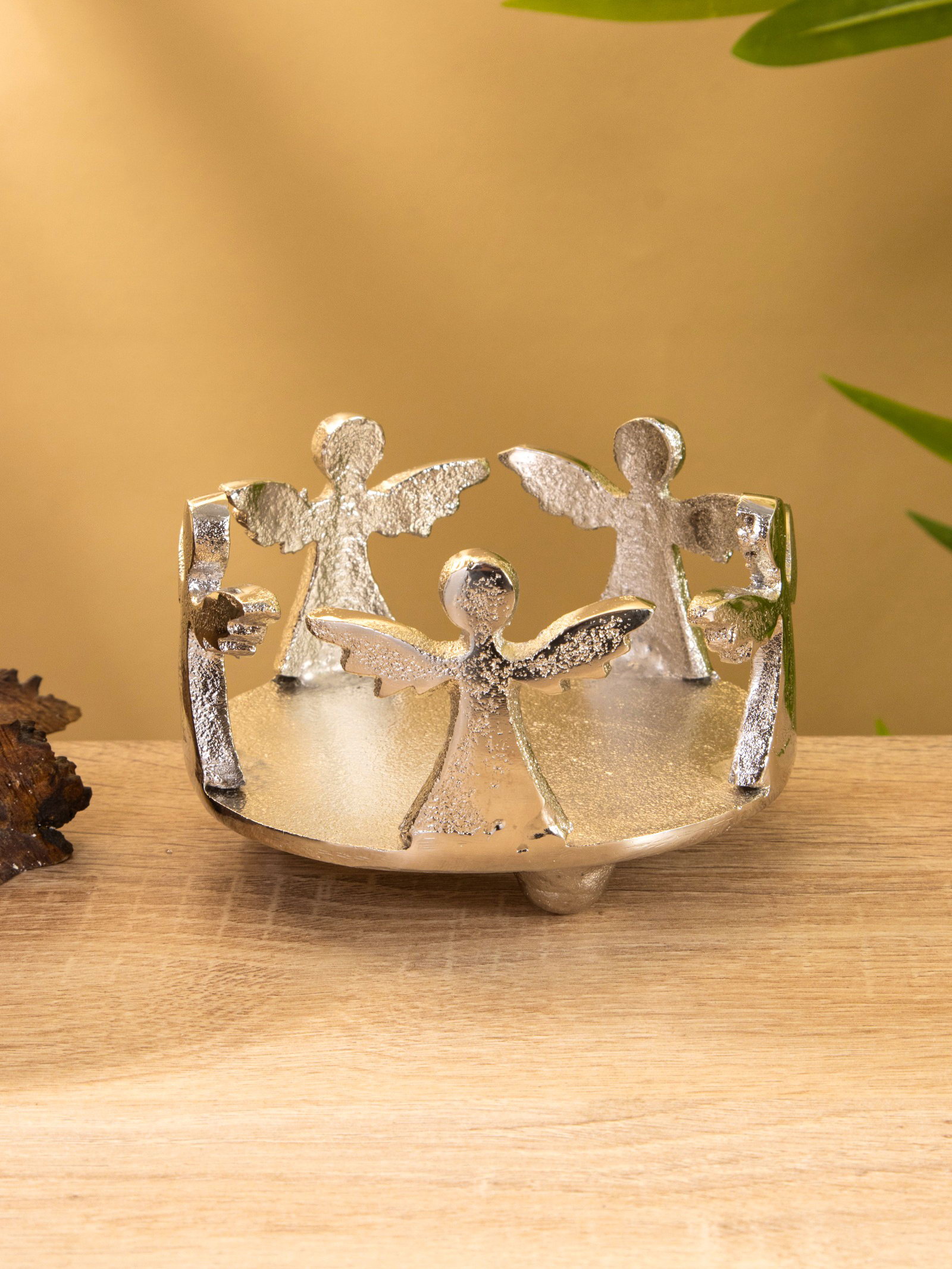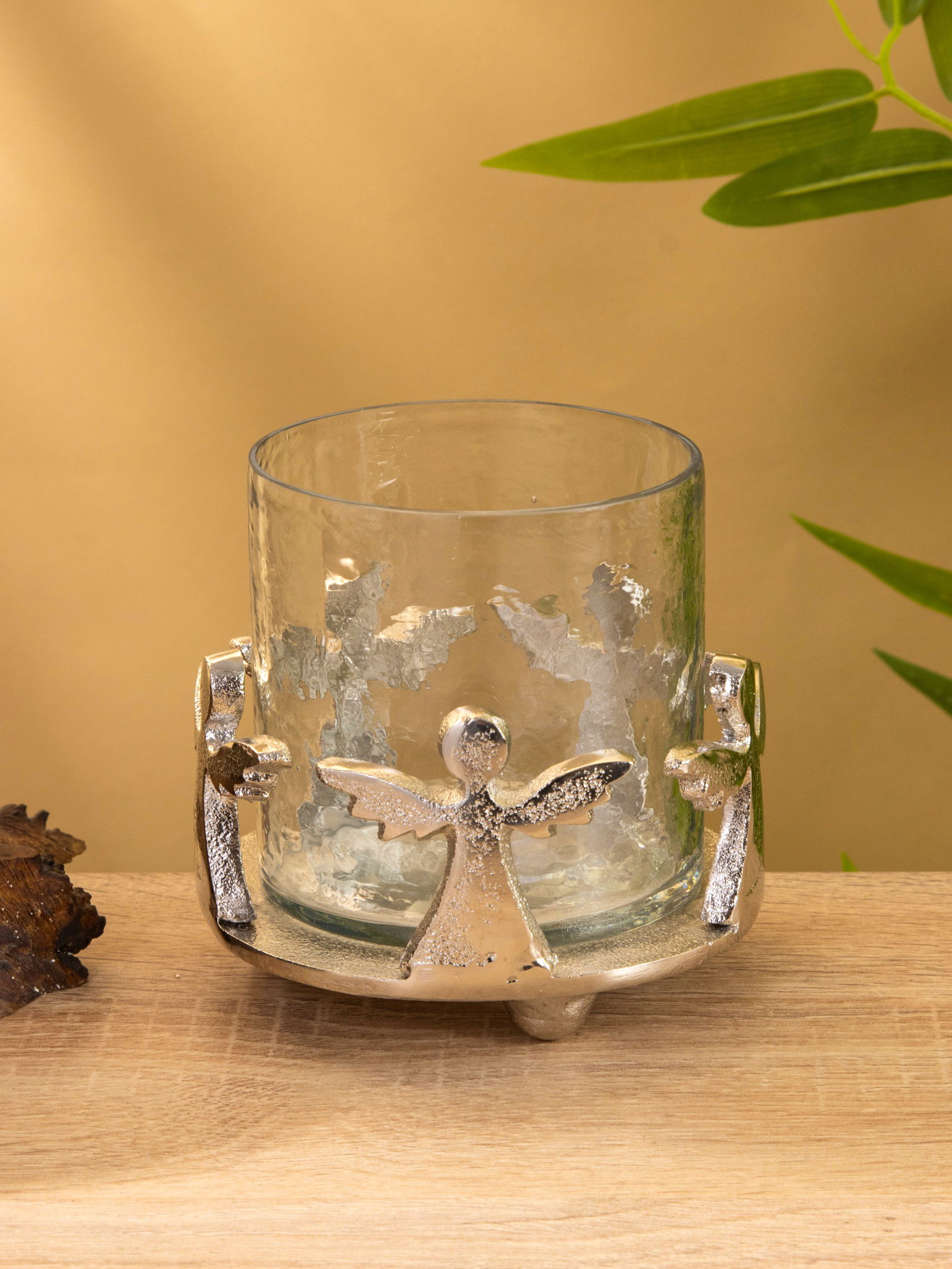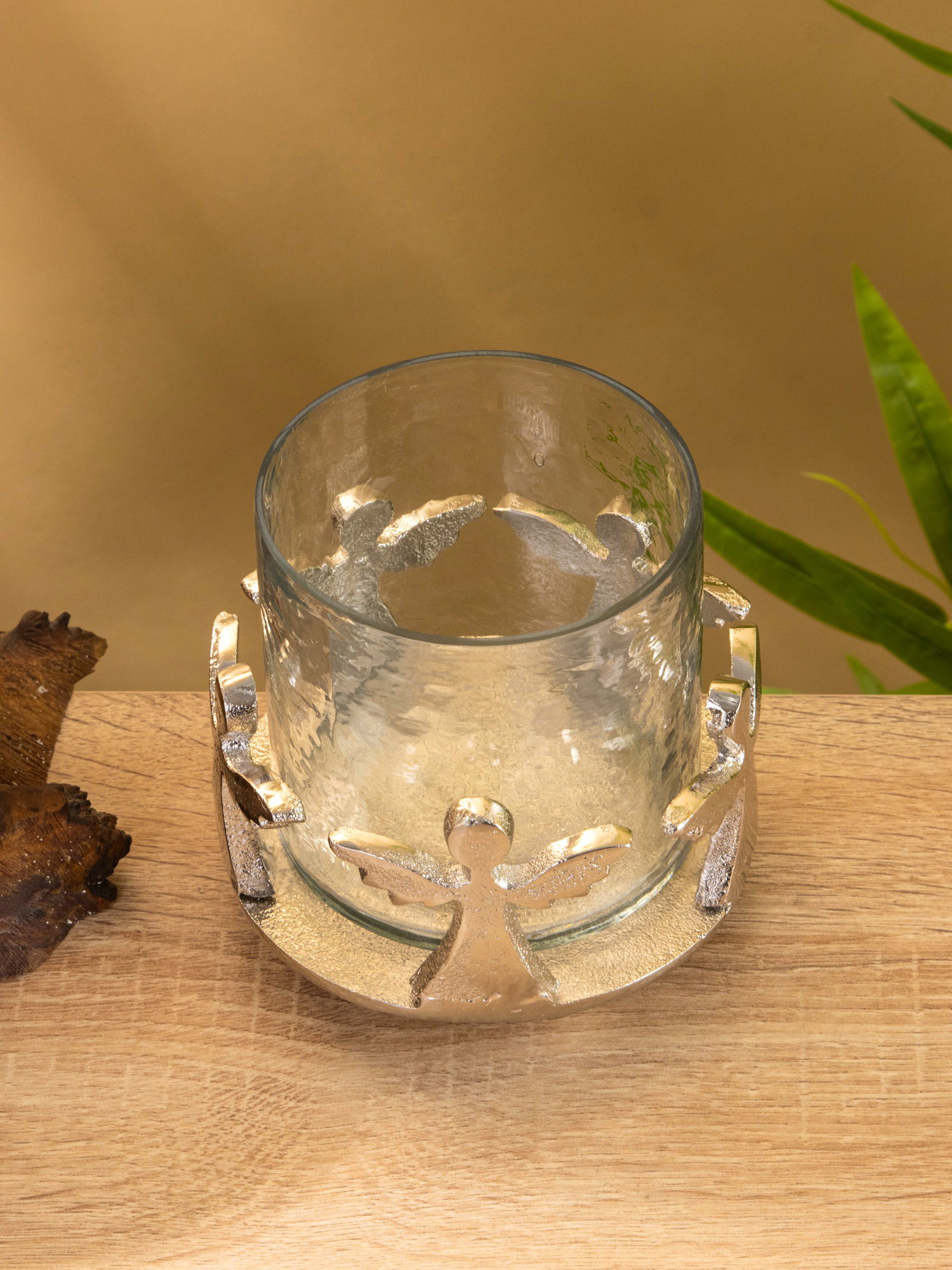 Подсвечник со стеклом "Ангелочки", 11x11x11 см, алюминий, 11x11x11 см., Индия