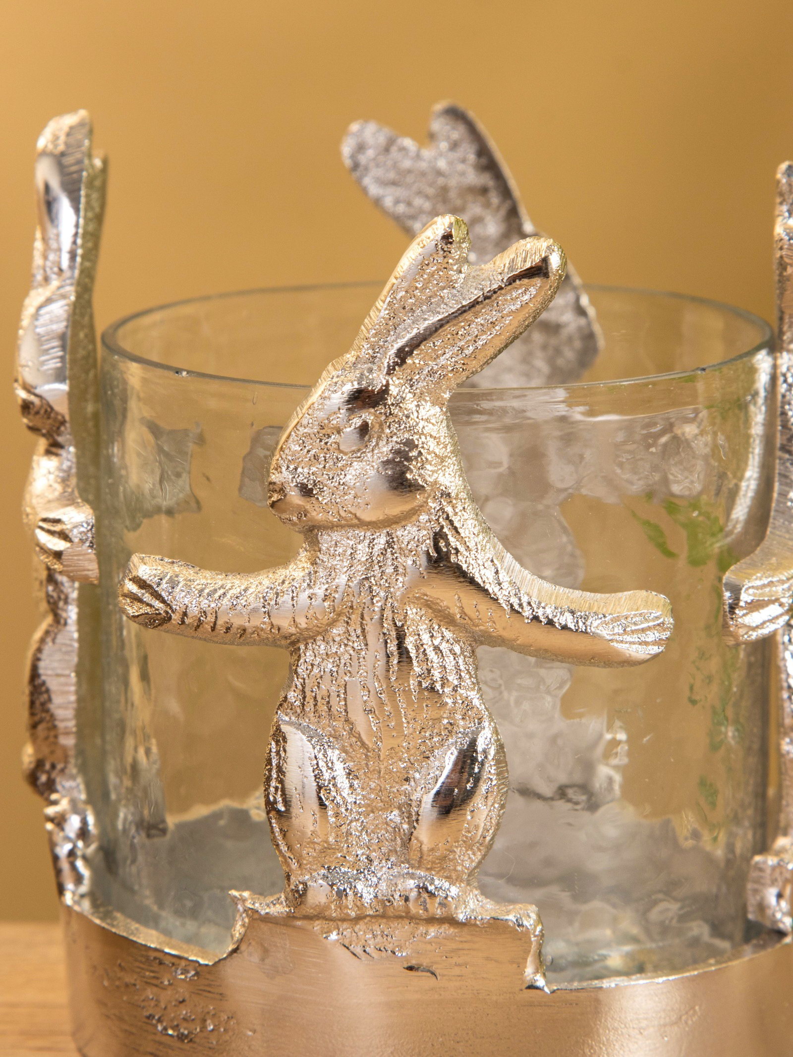 Подсвечник со стеклом "Влюбленные зайцы", 8.5x8.5x9 см, алюминий, 8.5x8.5x9 см., Индия