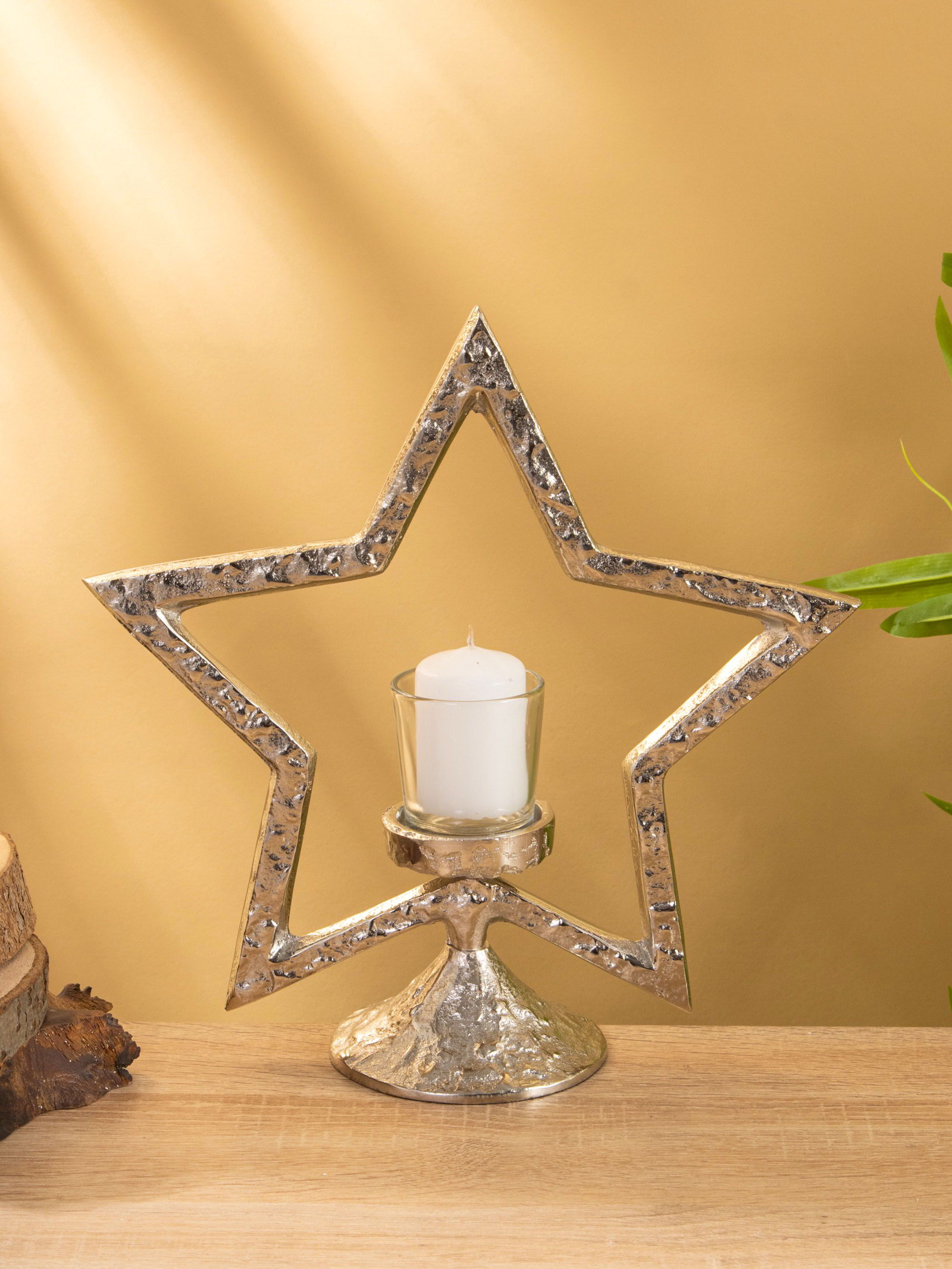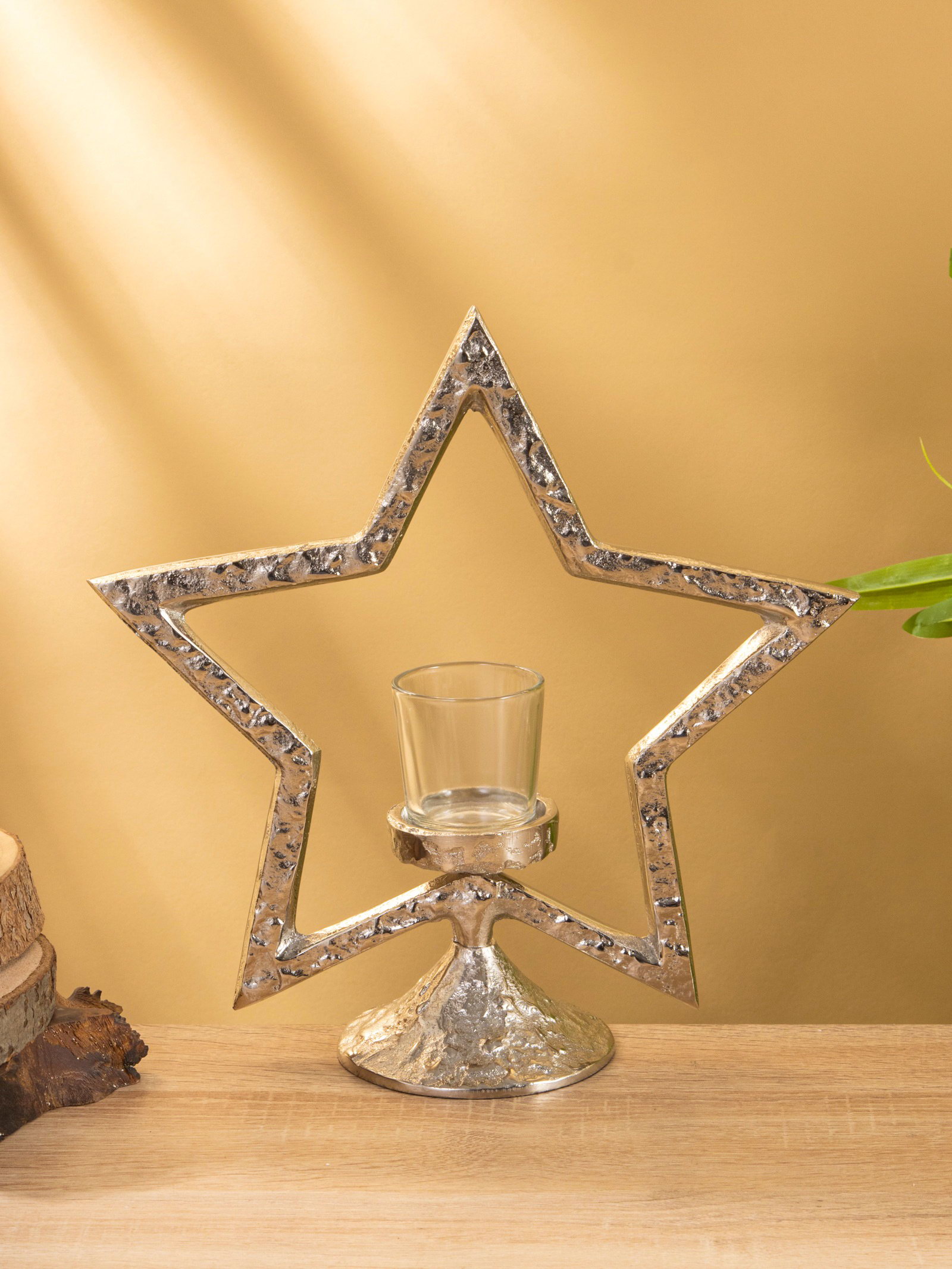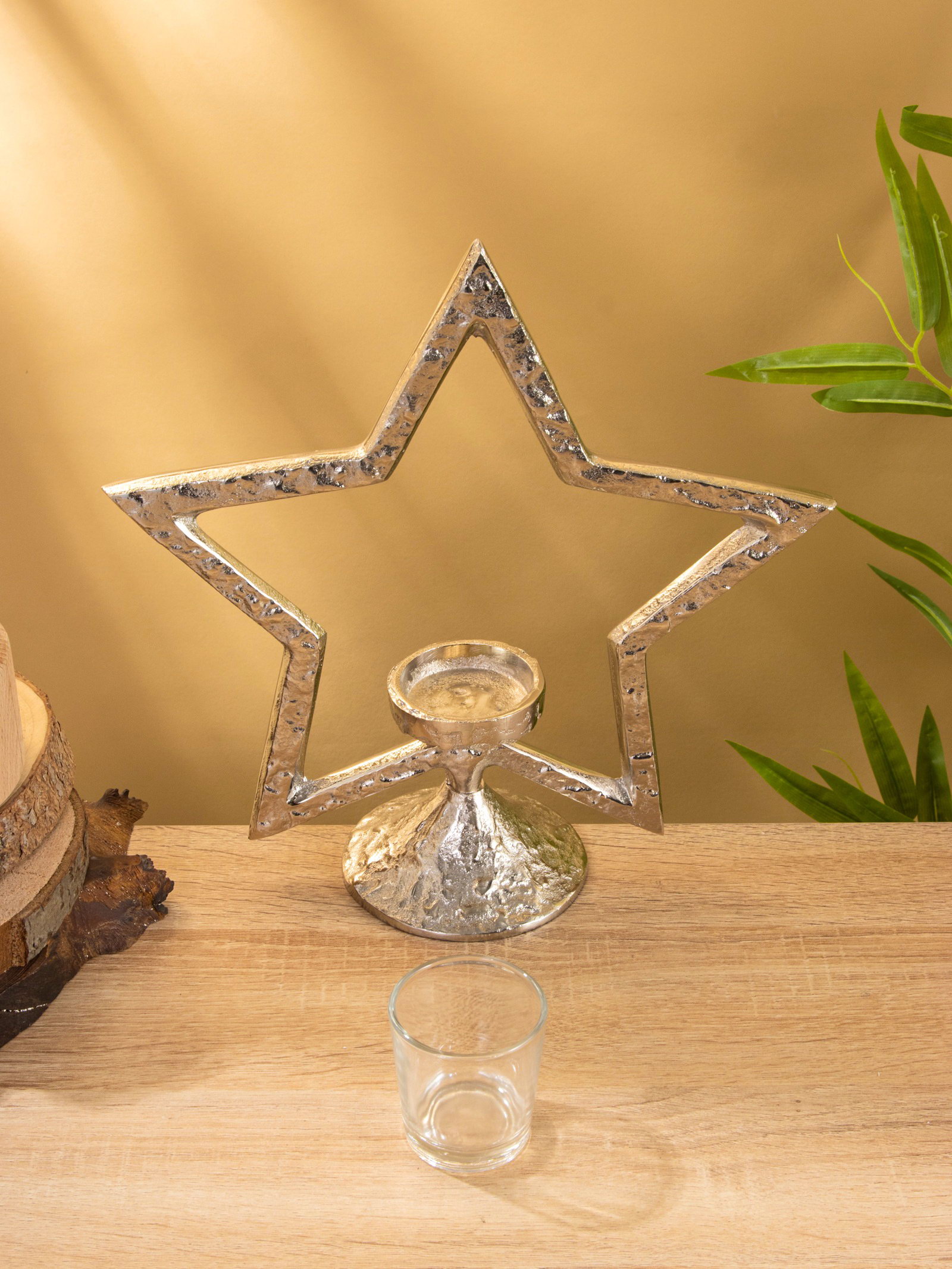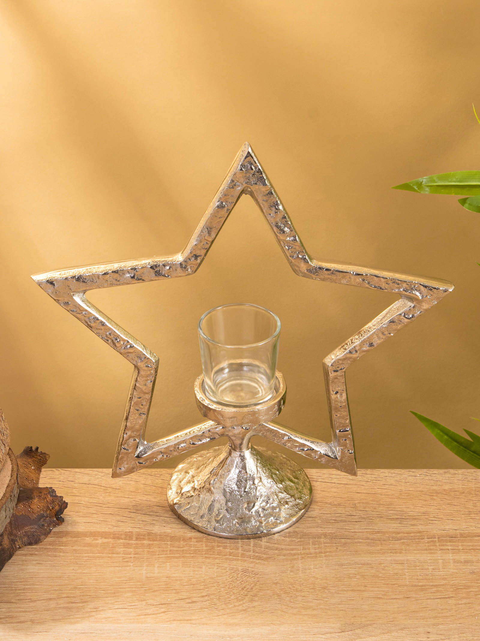 Подсвечник со стеклом "Звезда", 28x10.5x29.5 см, алюминий, 10.5x28x29.5 см., Индия