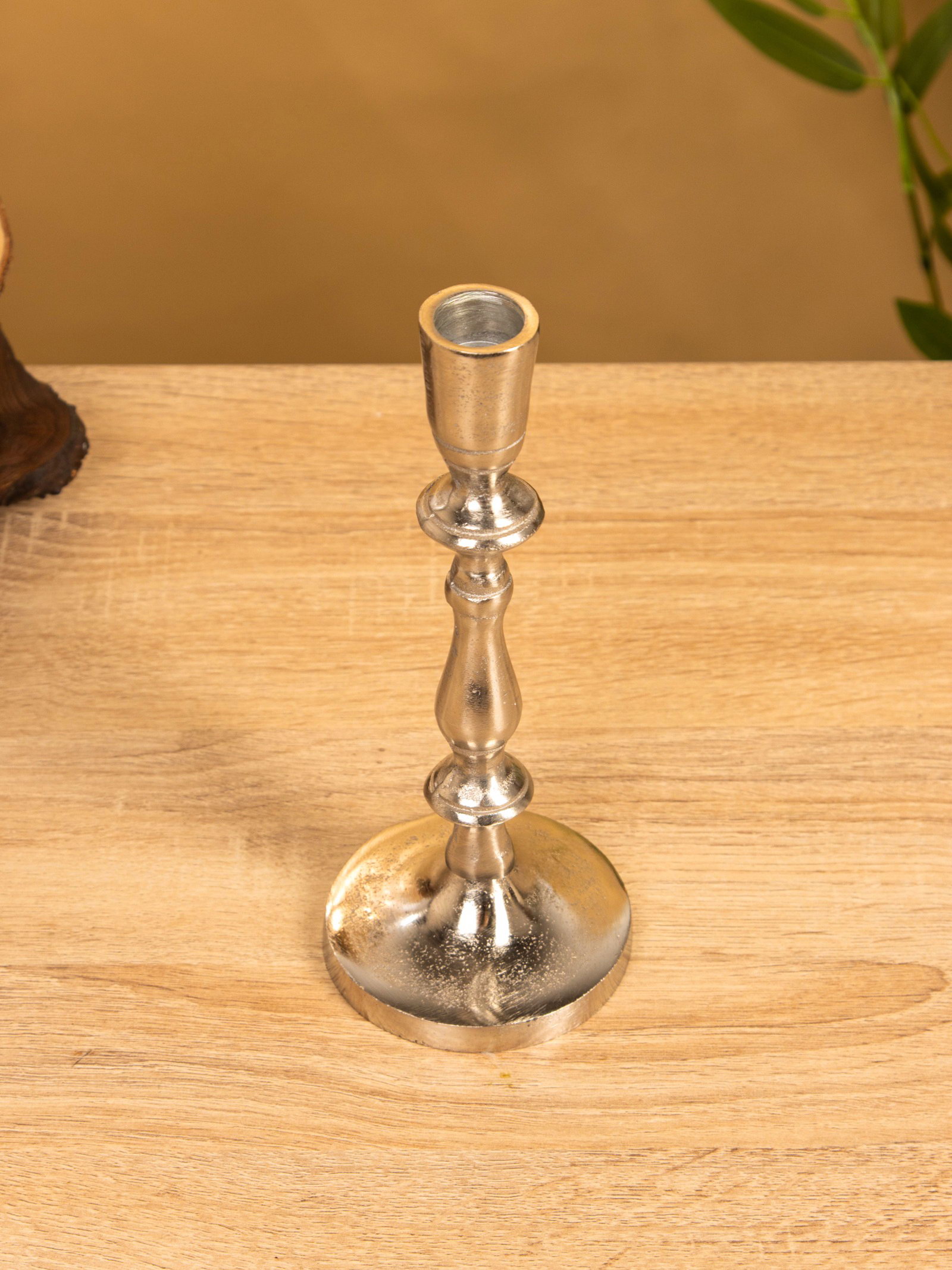 Подсвечник "Зима" 8.5х8.5х21 см, алюминий, цв. Серебро, 9x9x22 см., Индия