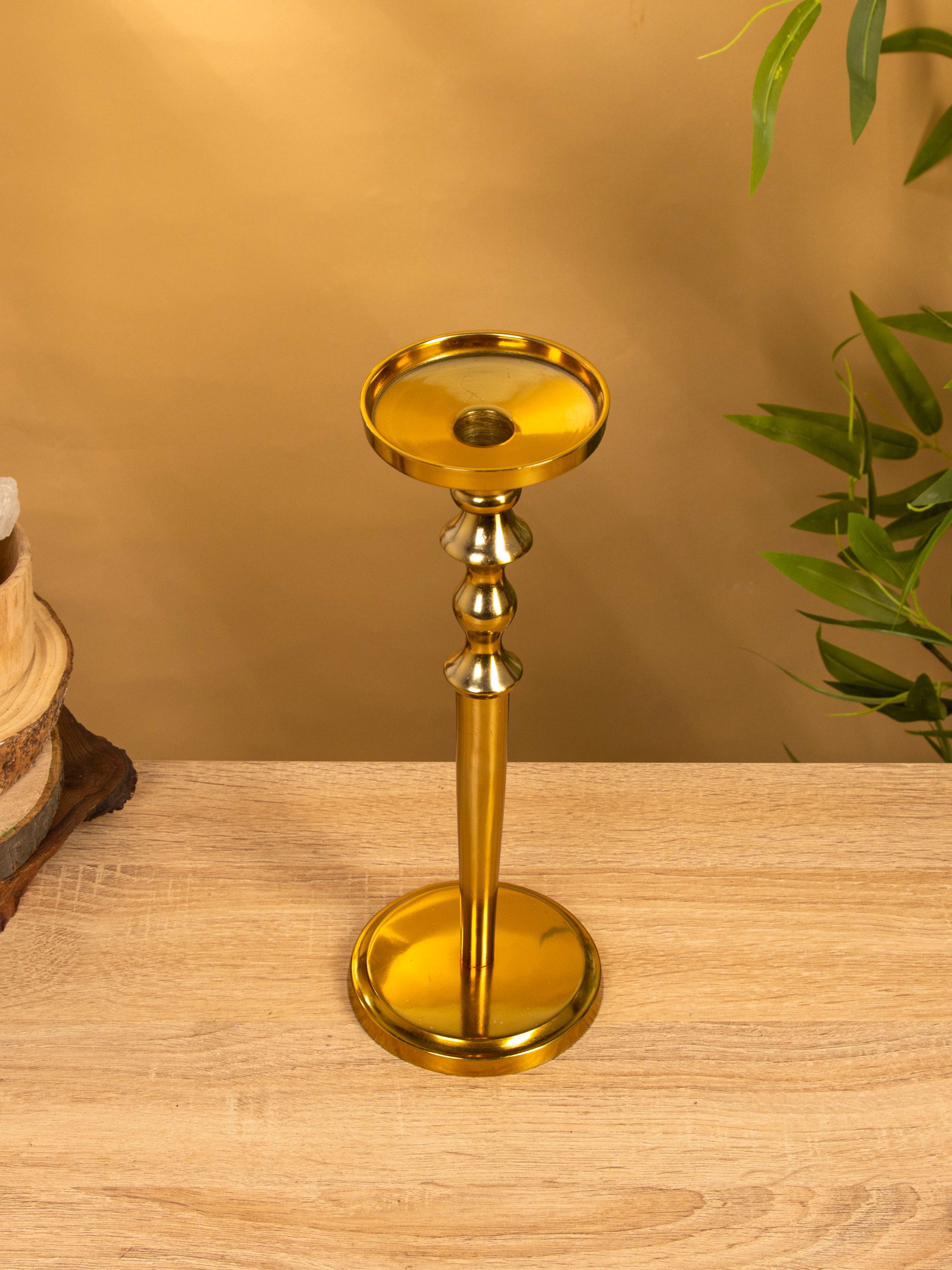 Подсвечник "Пьедестал" 11х11х30 см, алюминий, цв. золото, 11x11x30 см., Индия