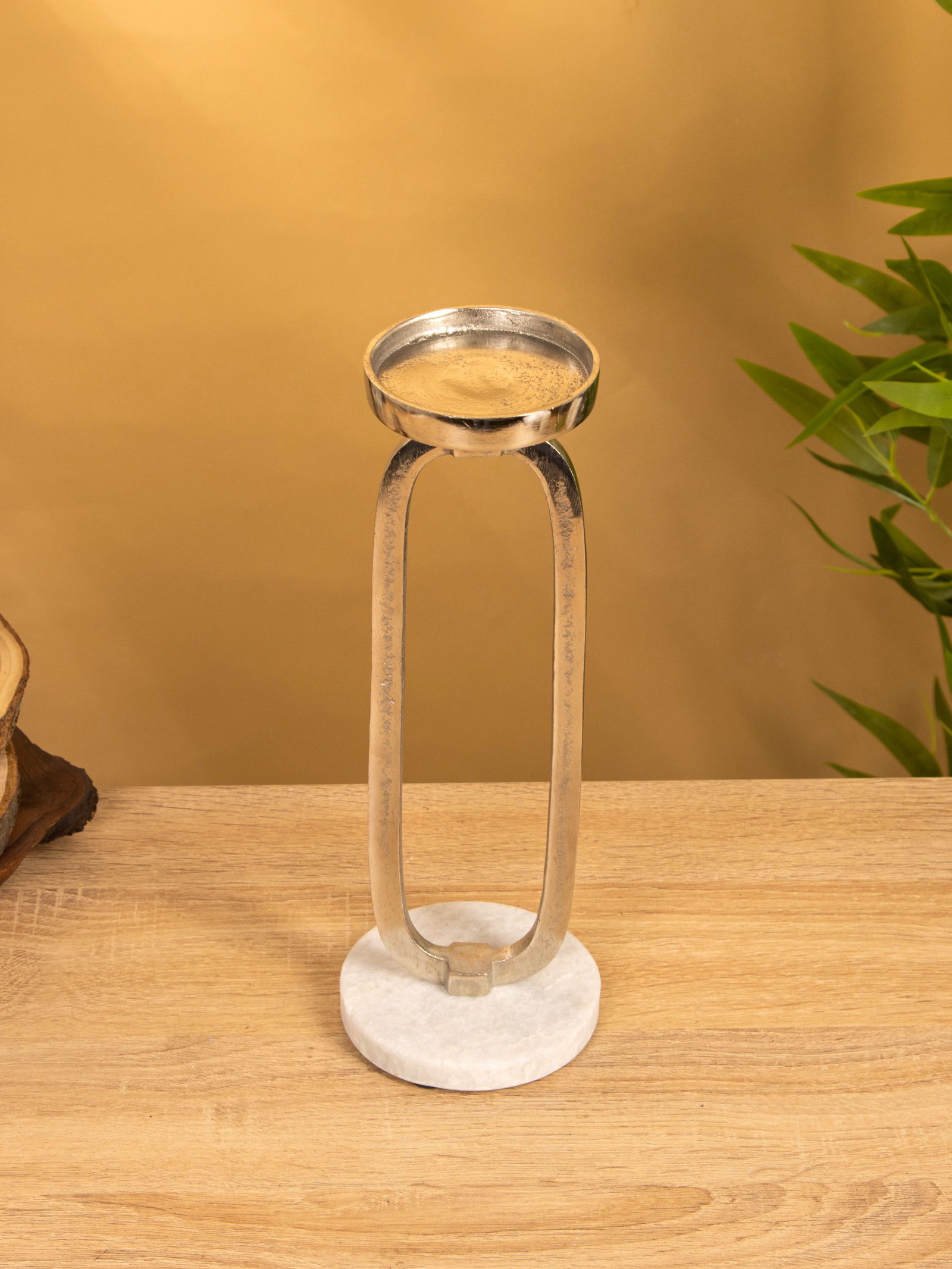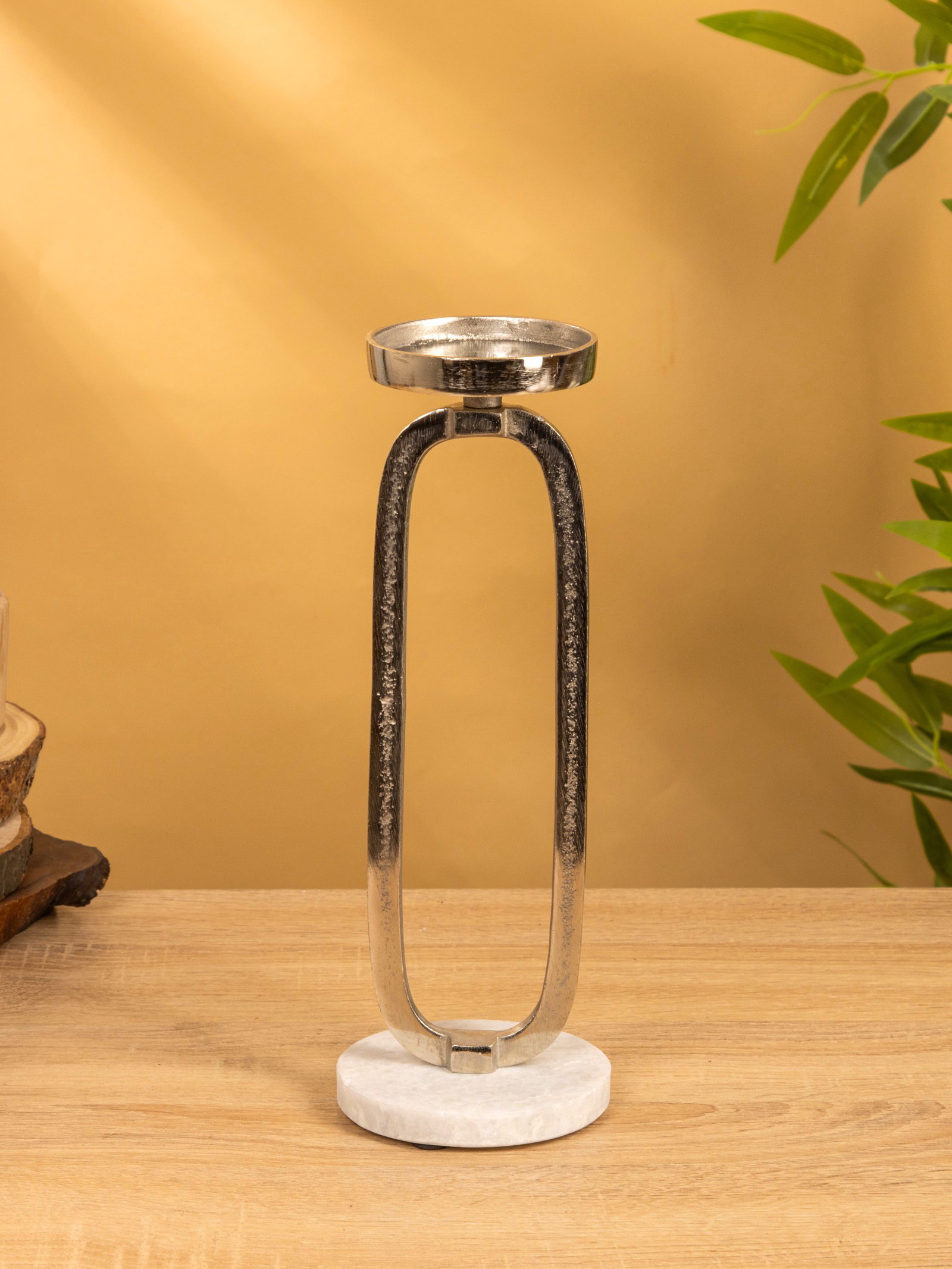 Подсвечник "Эллипс" 10х10х30 см, d 7.5 см, алюминий, мрамор, 10x10x30 см., Индия