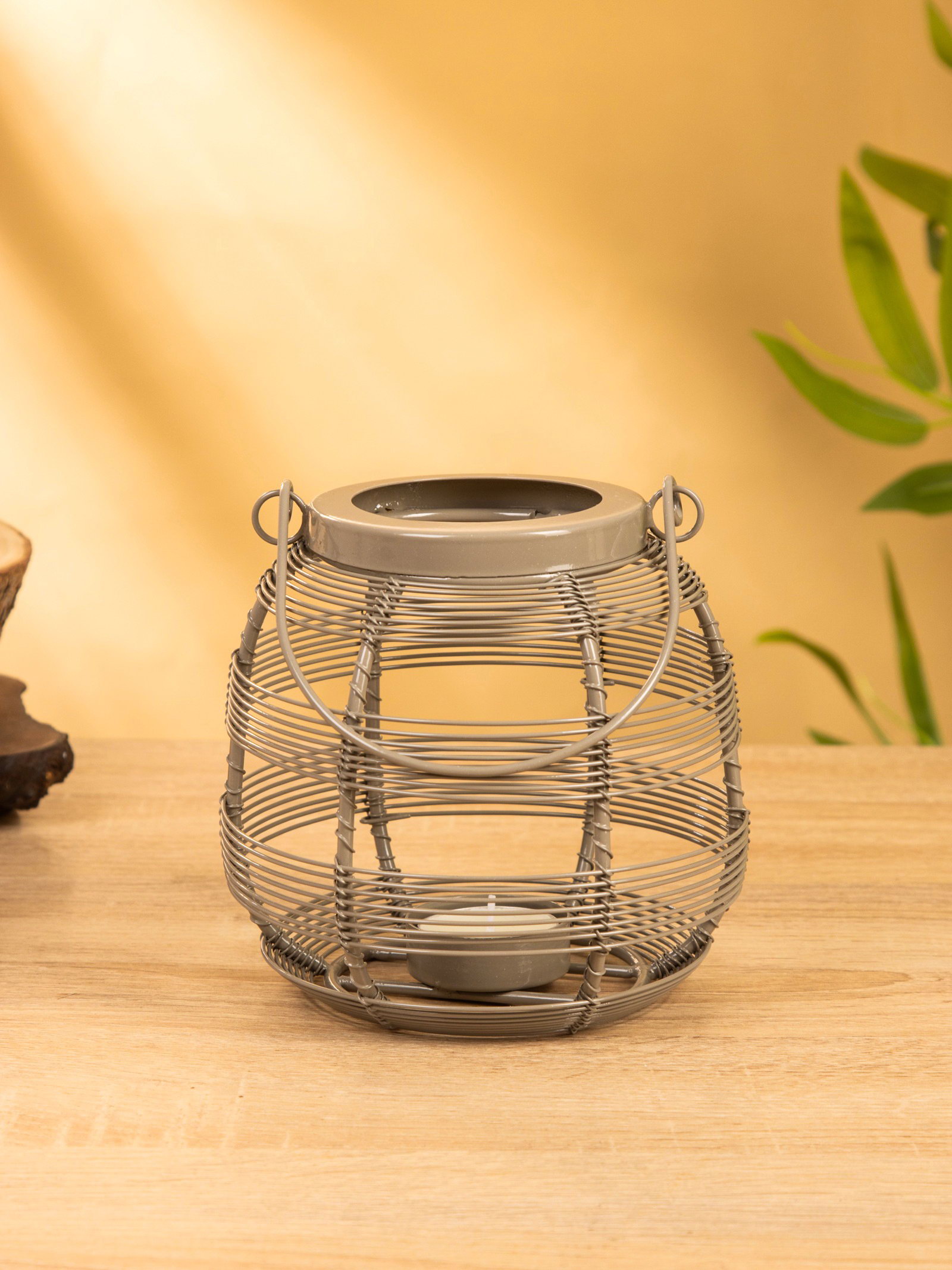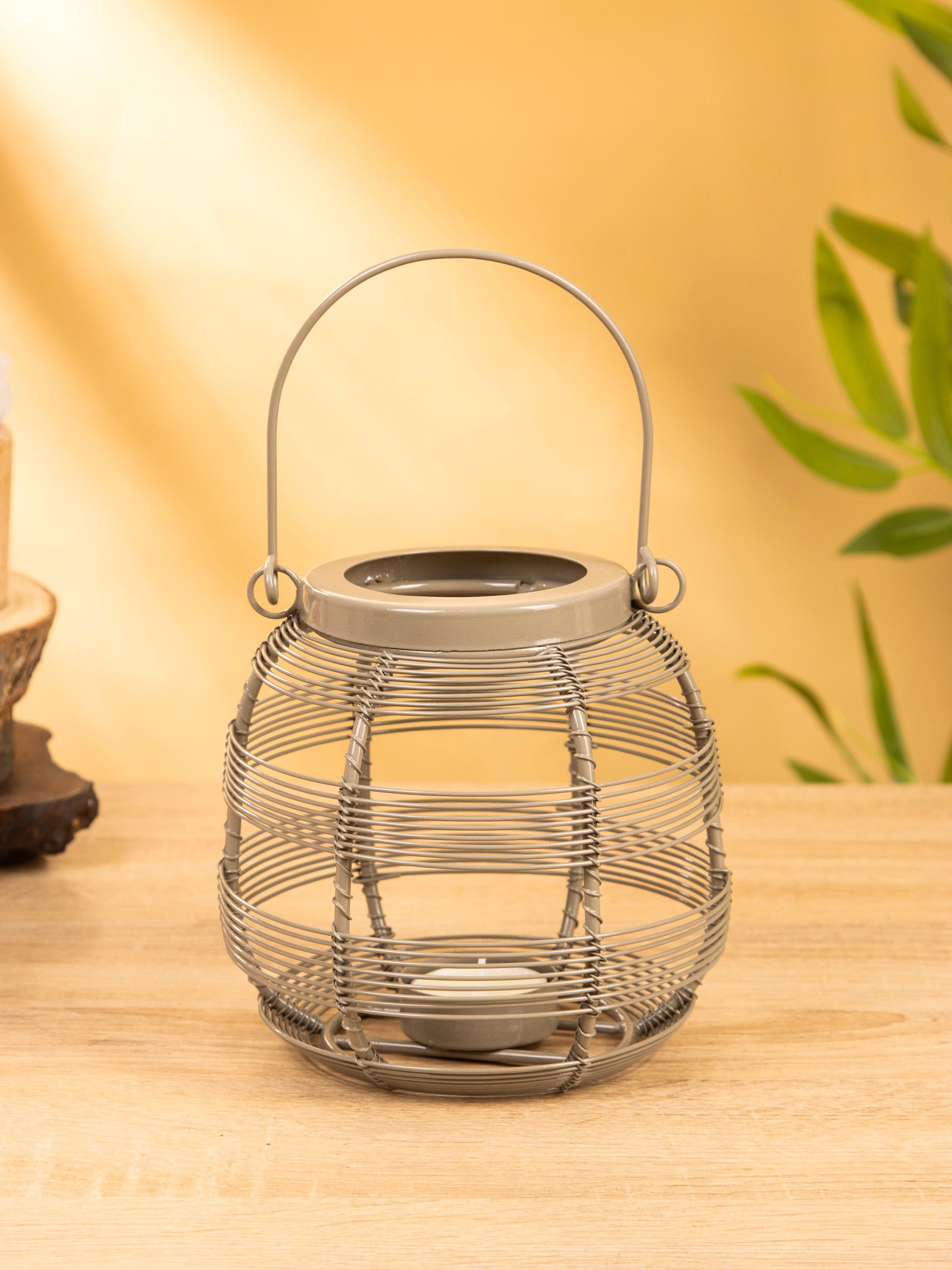 Подсвечник фонарь 14.5х14.5х13.5 см, для свечи 4 см металл, цв. серый, 14.5x14.5x13.5 см., Индия