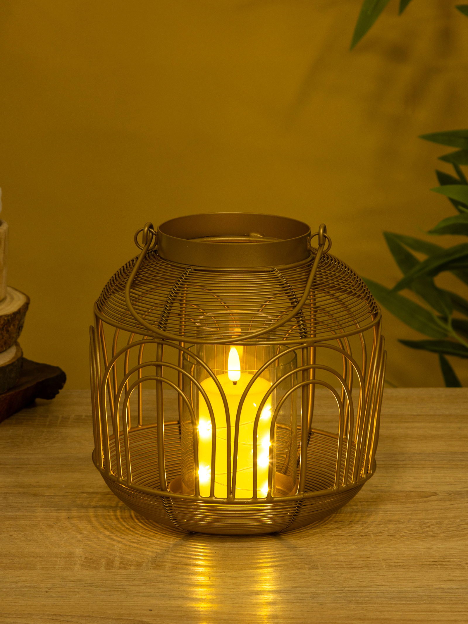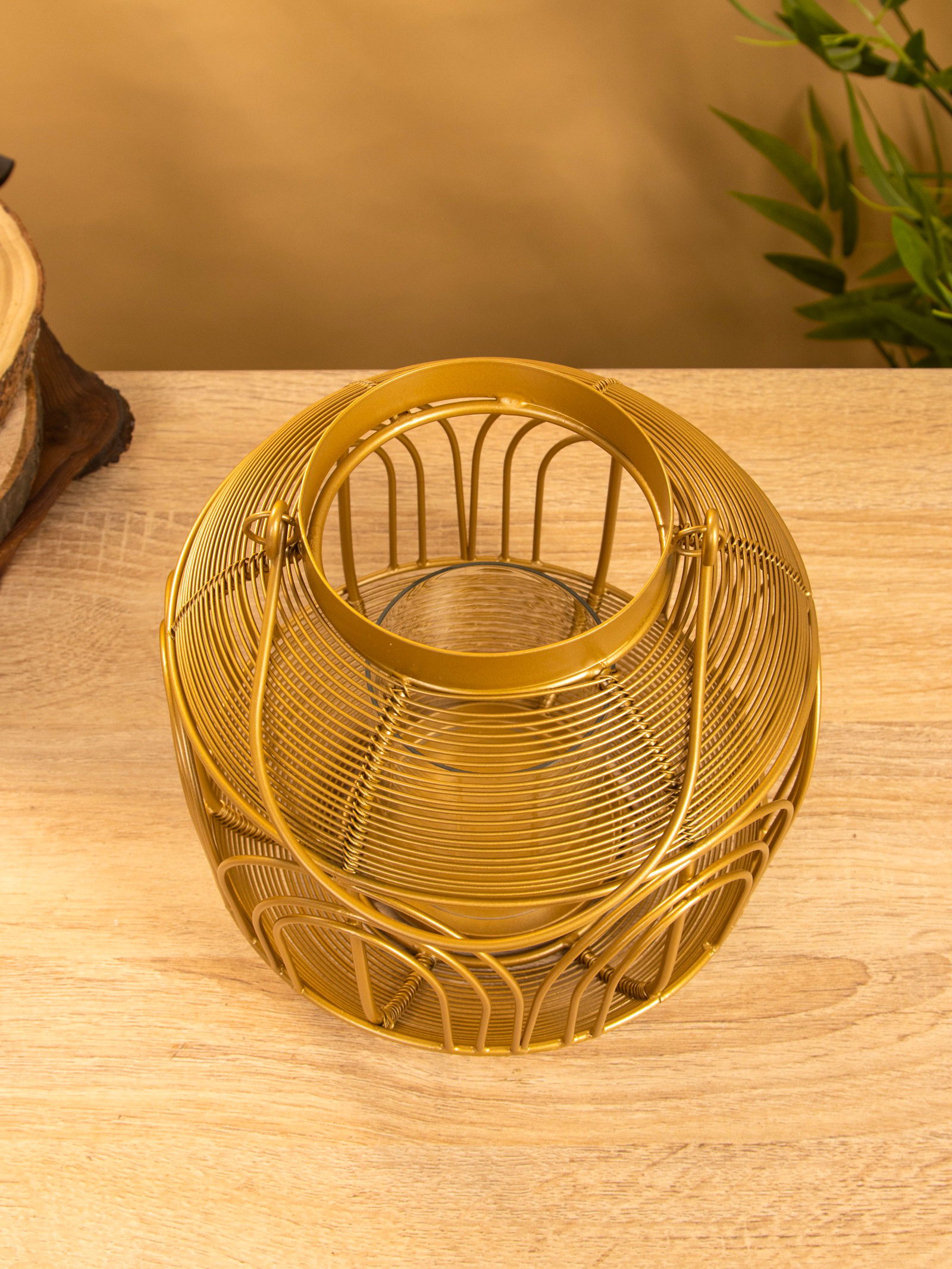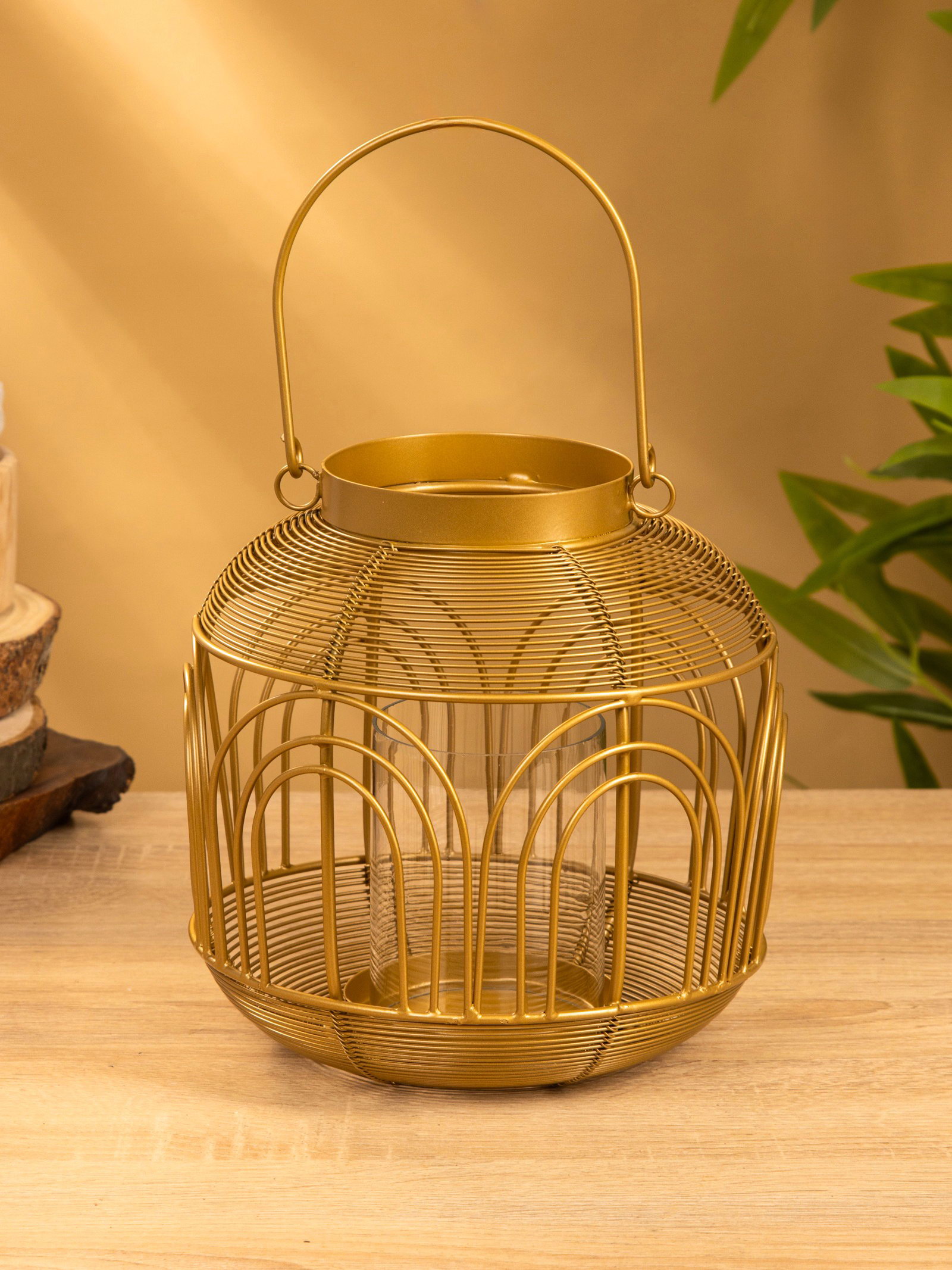 Подсвечник фонарь со стеклянной колбой 19х19х19.5 см, d 8.5 см, металл, цв. Золото, 18.5x18.5x19 см., Индия