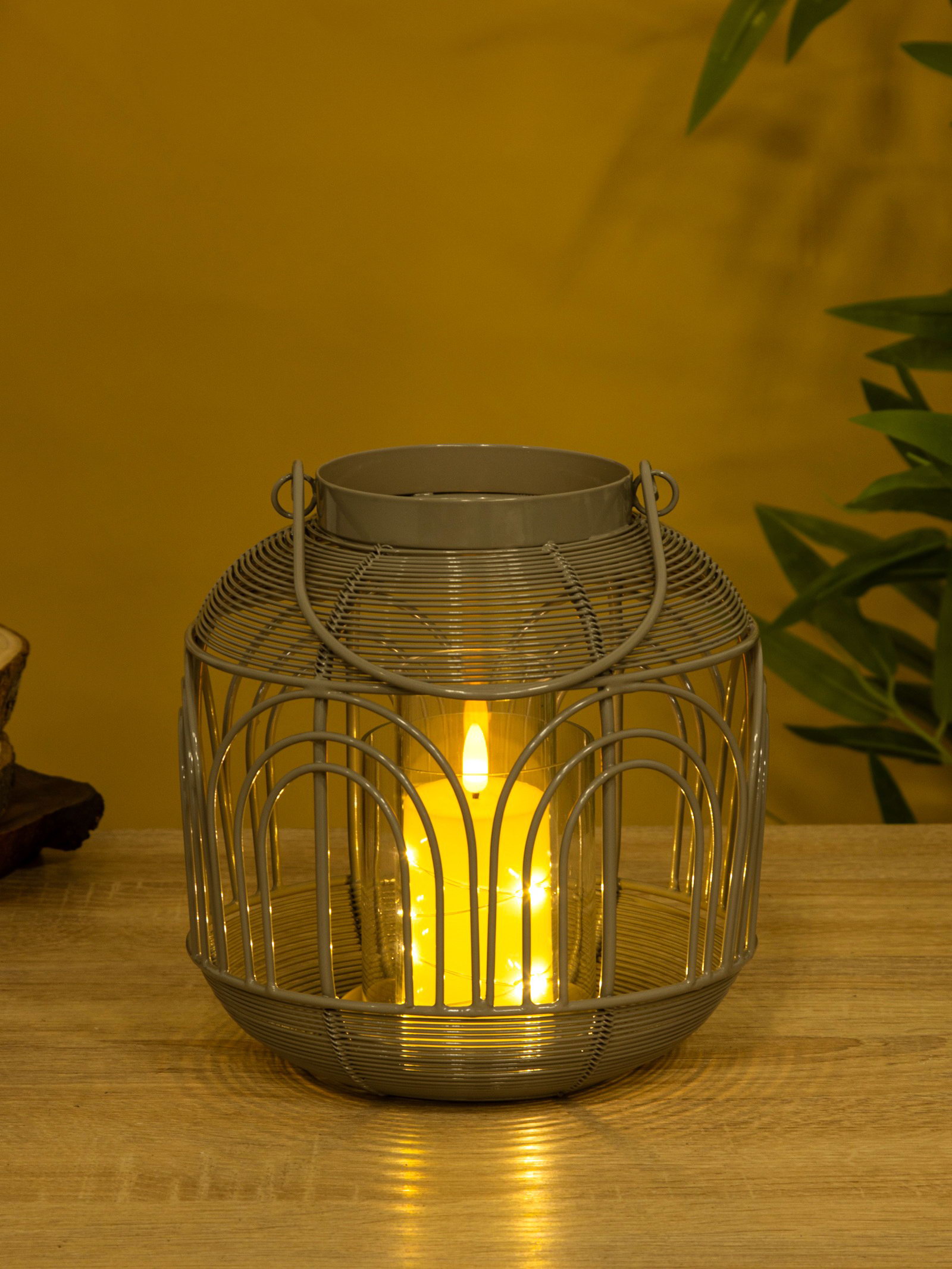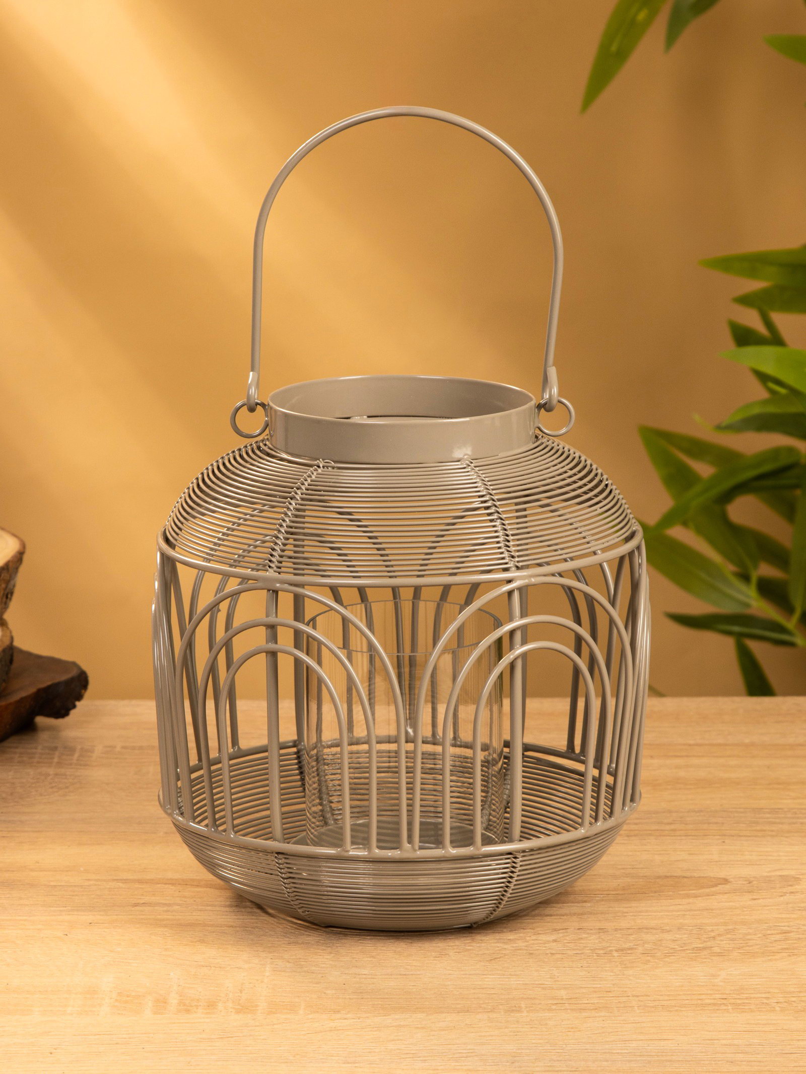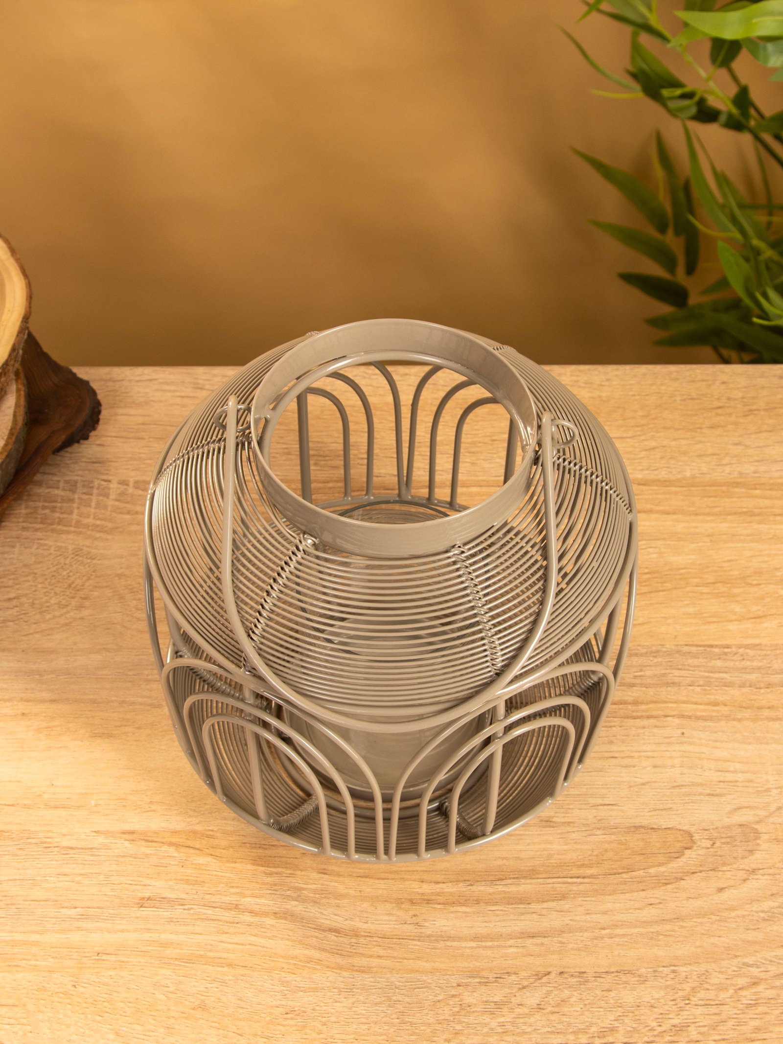 Подсвечник фонарь со стеклянной колбой 19х19х19.5 см, d 8.5 см, металл, цв. Серый, 18.5x18.5x19 см., Индия