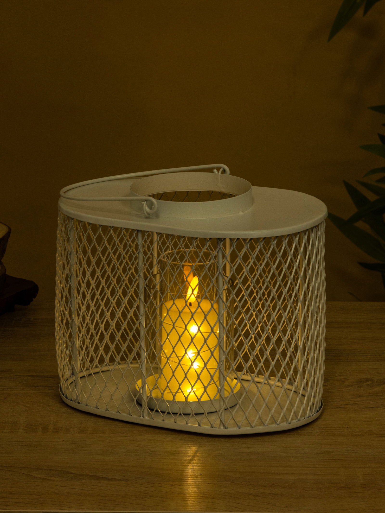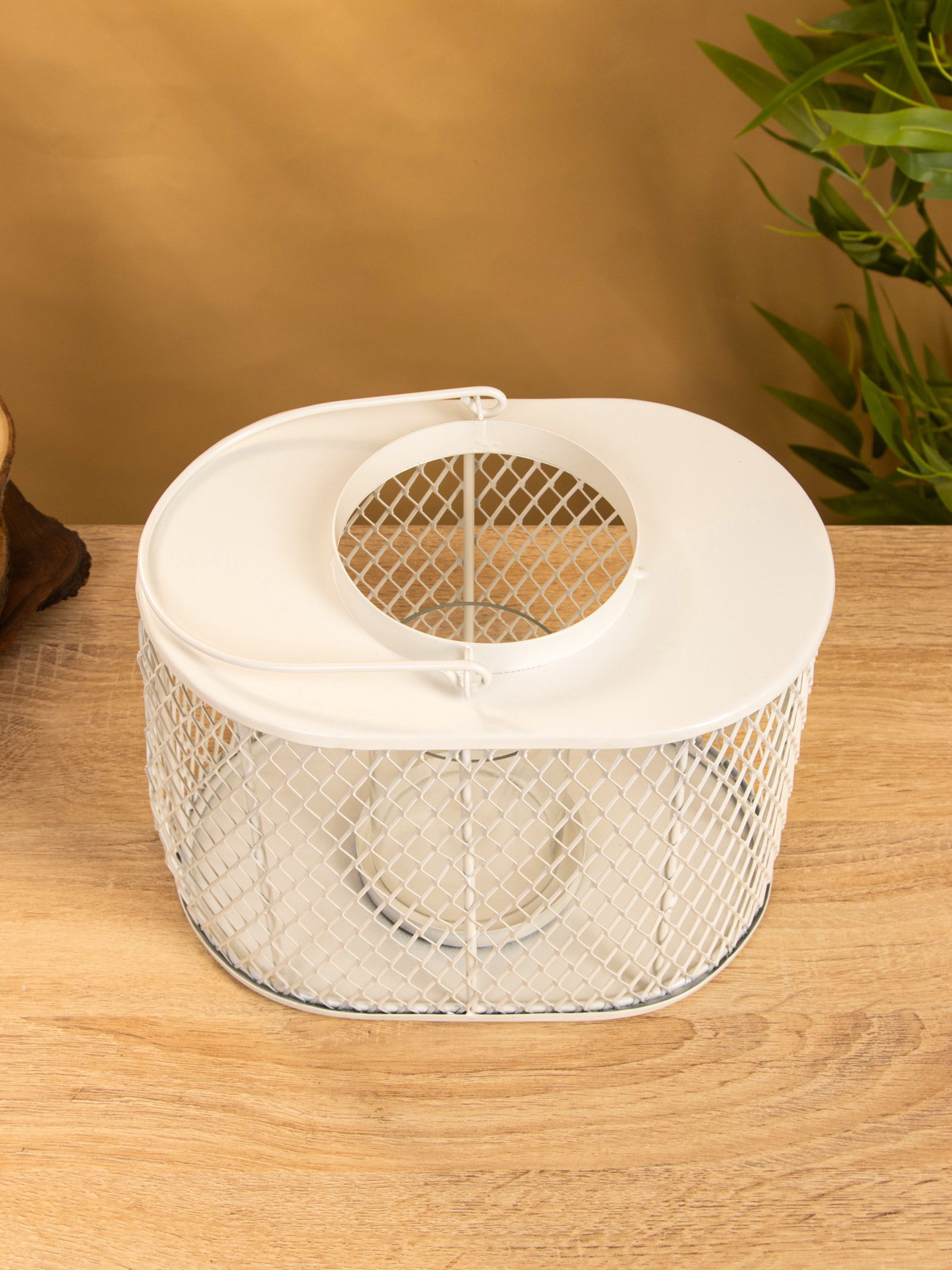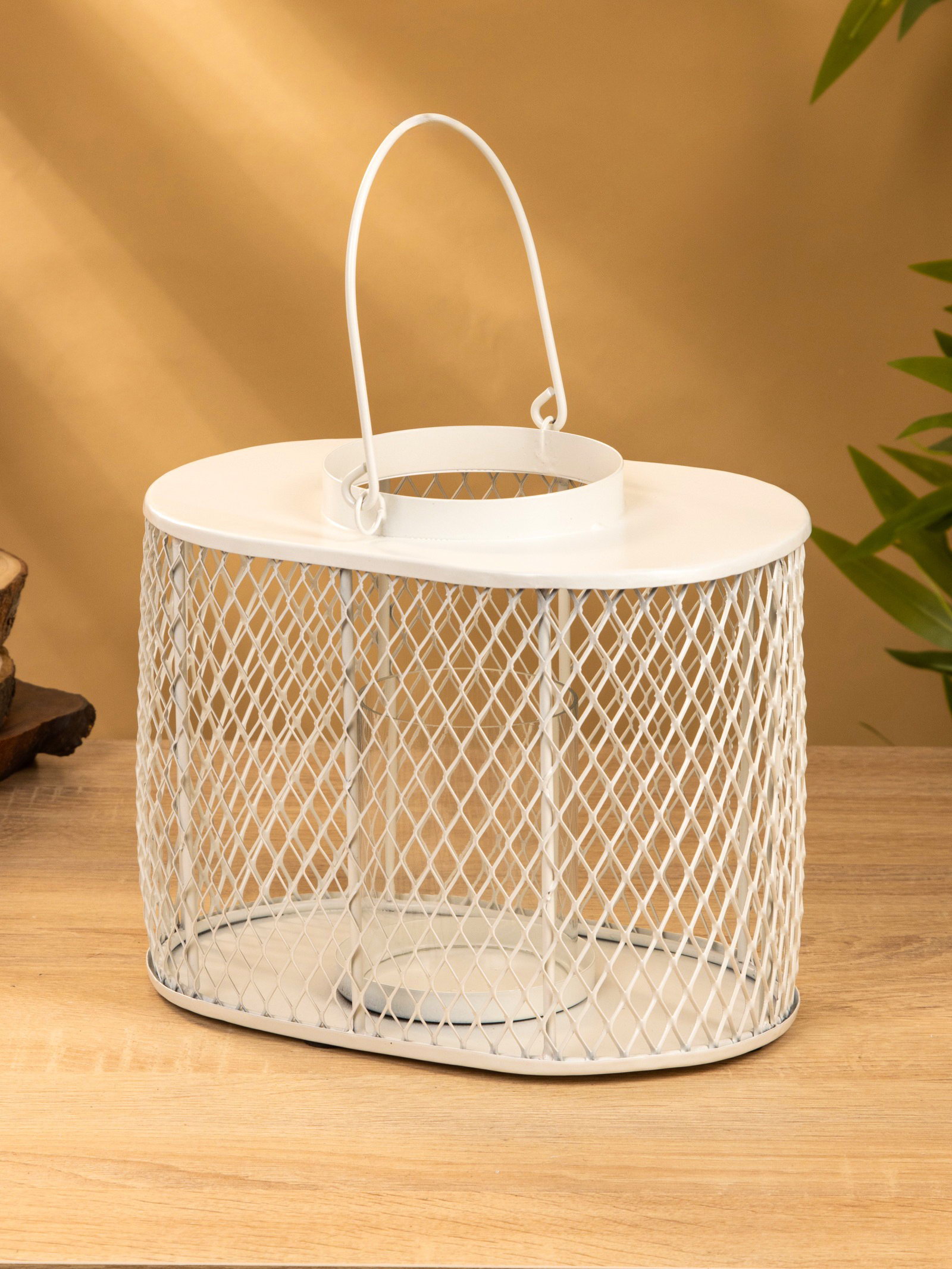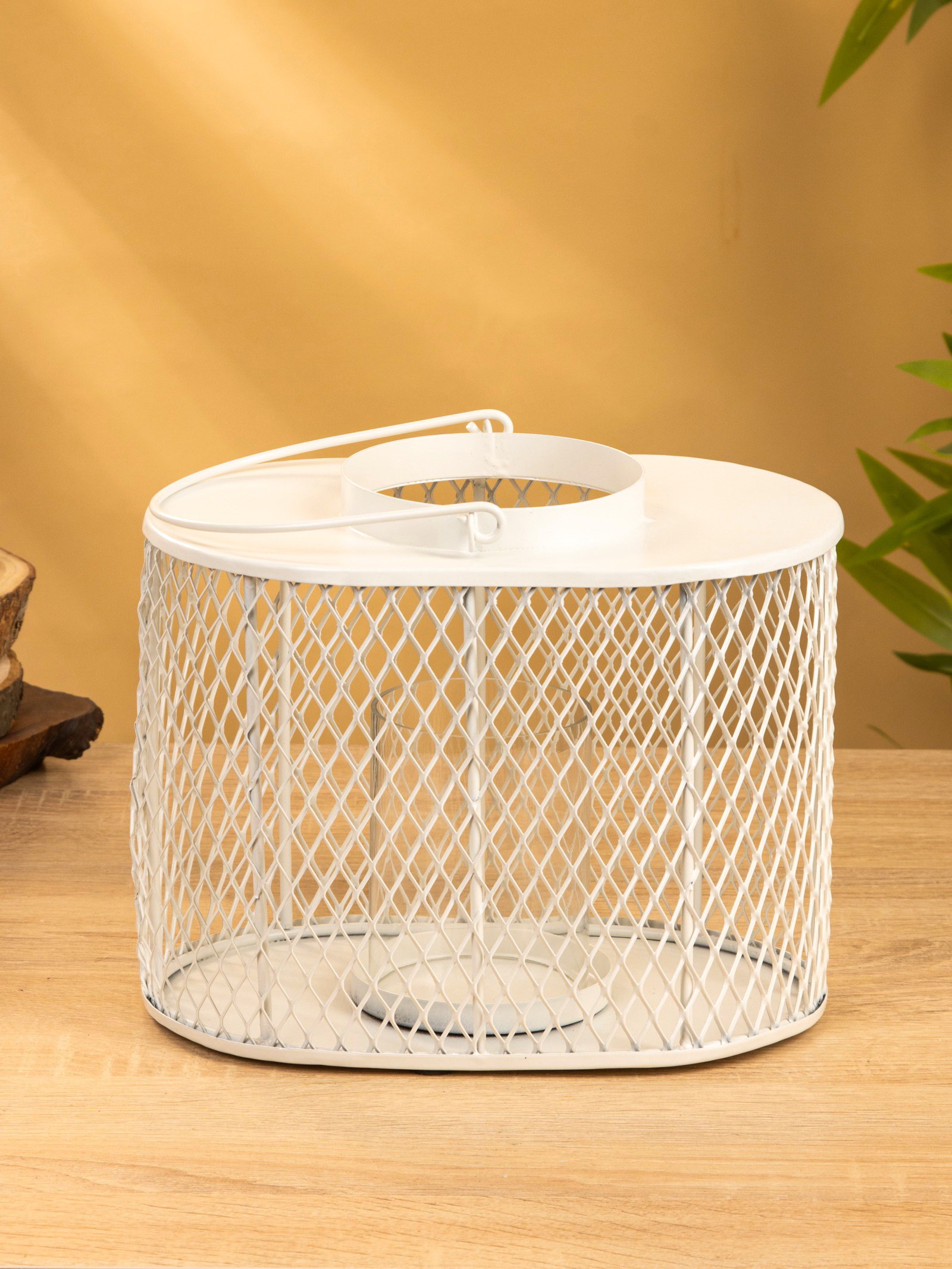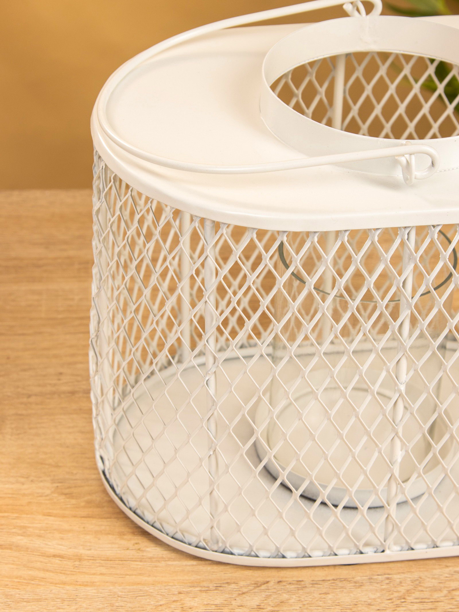 Подсвечник фонарь со стеклянной колбой 19.5х23х15.5 см, d 10 см, металл, цв. белый, 23x19.5x15.5 см., Индия