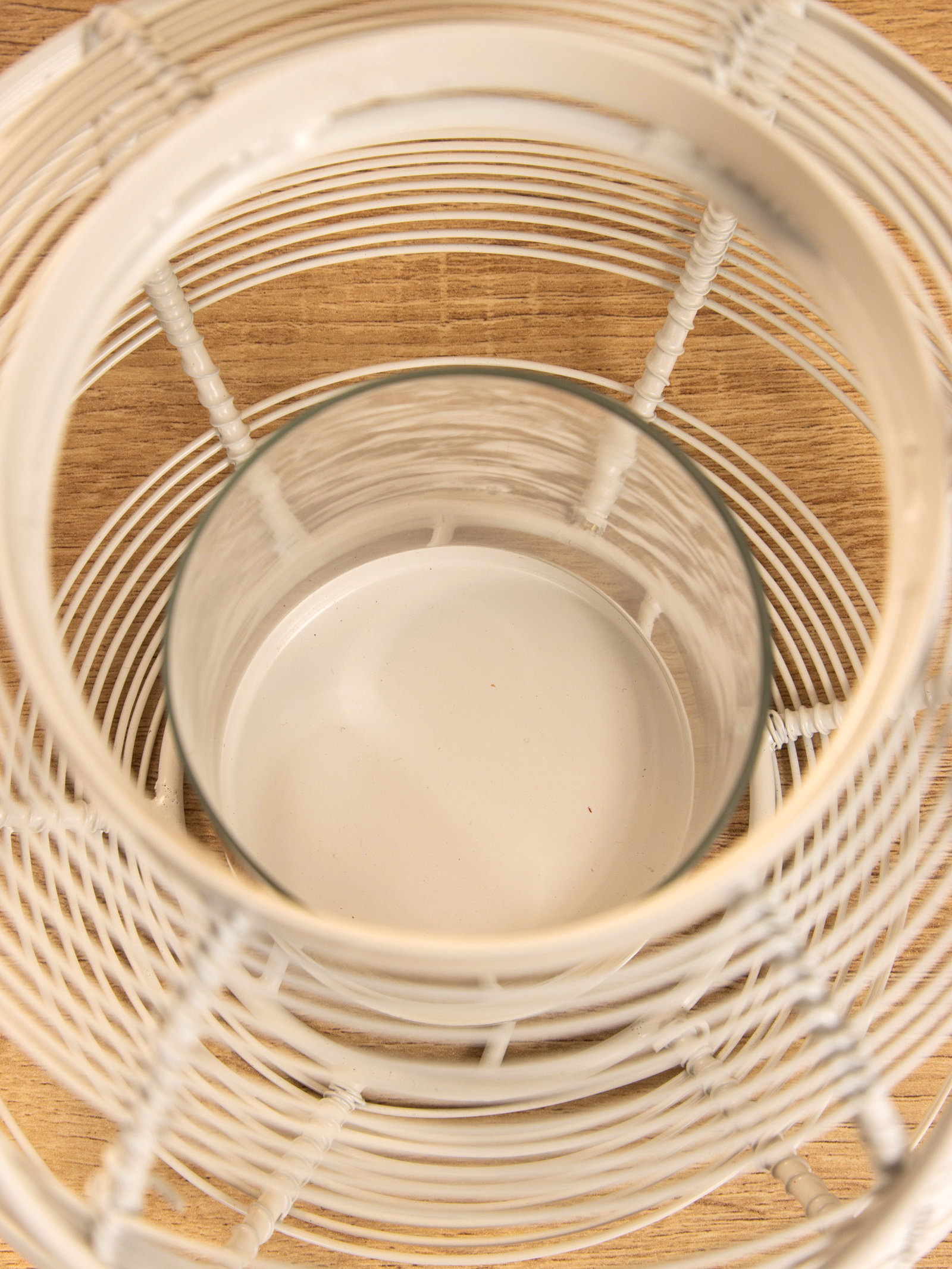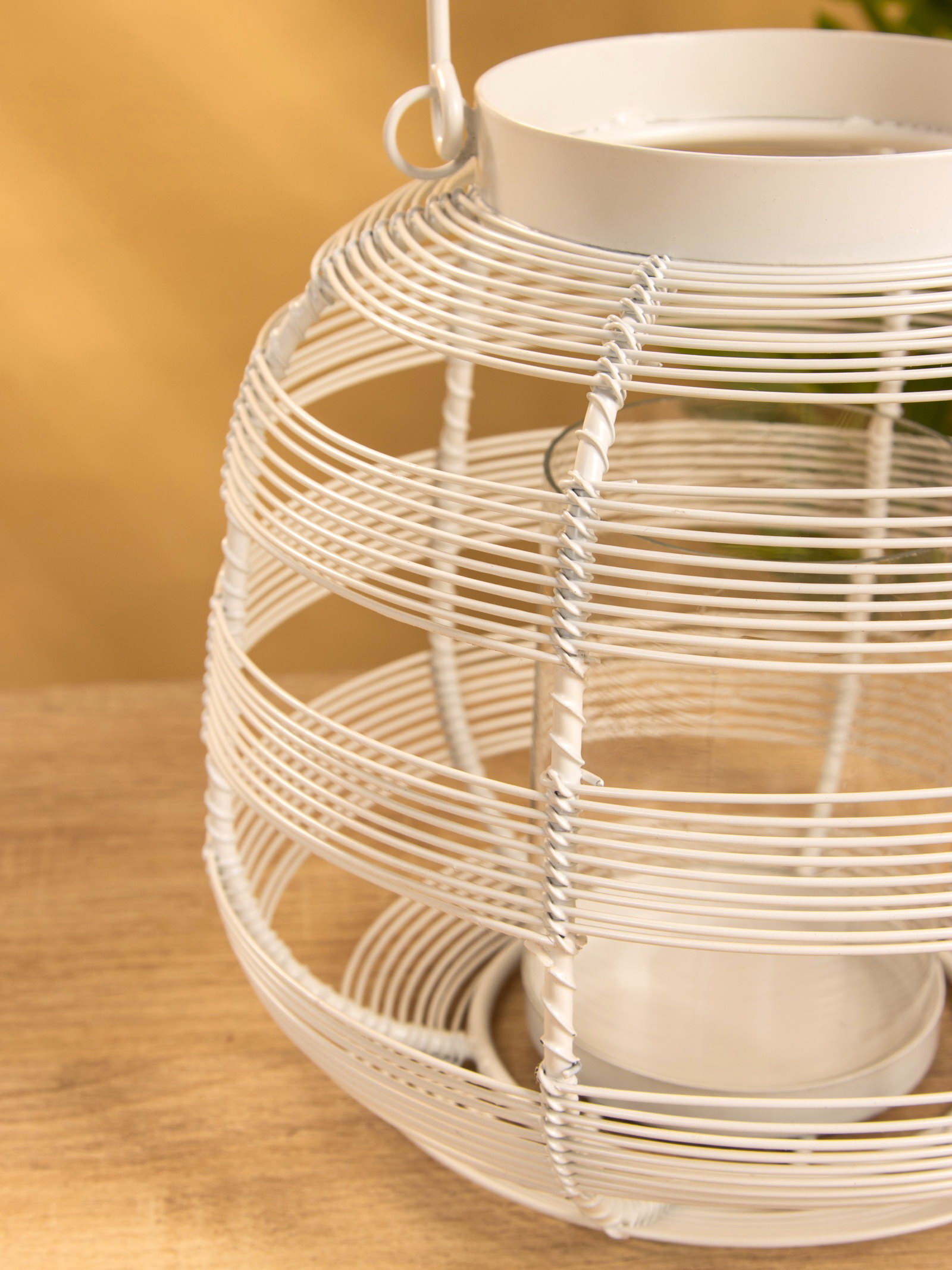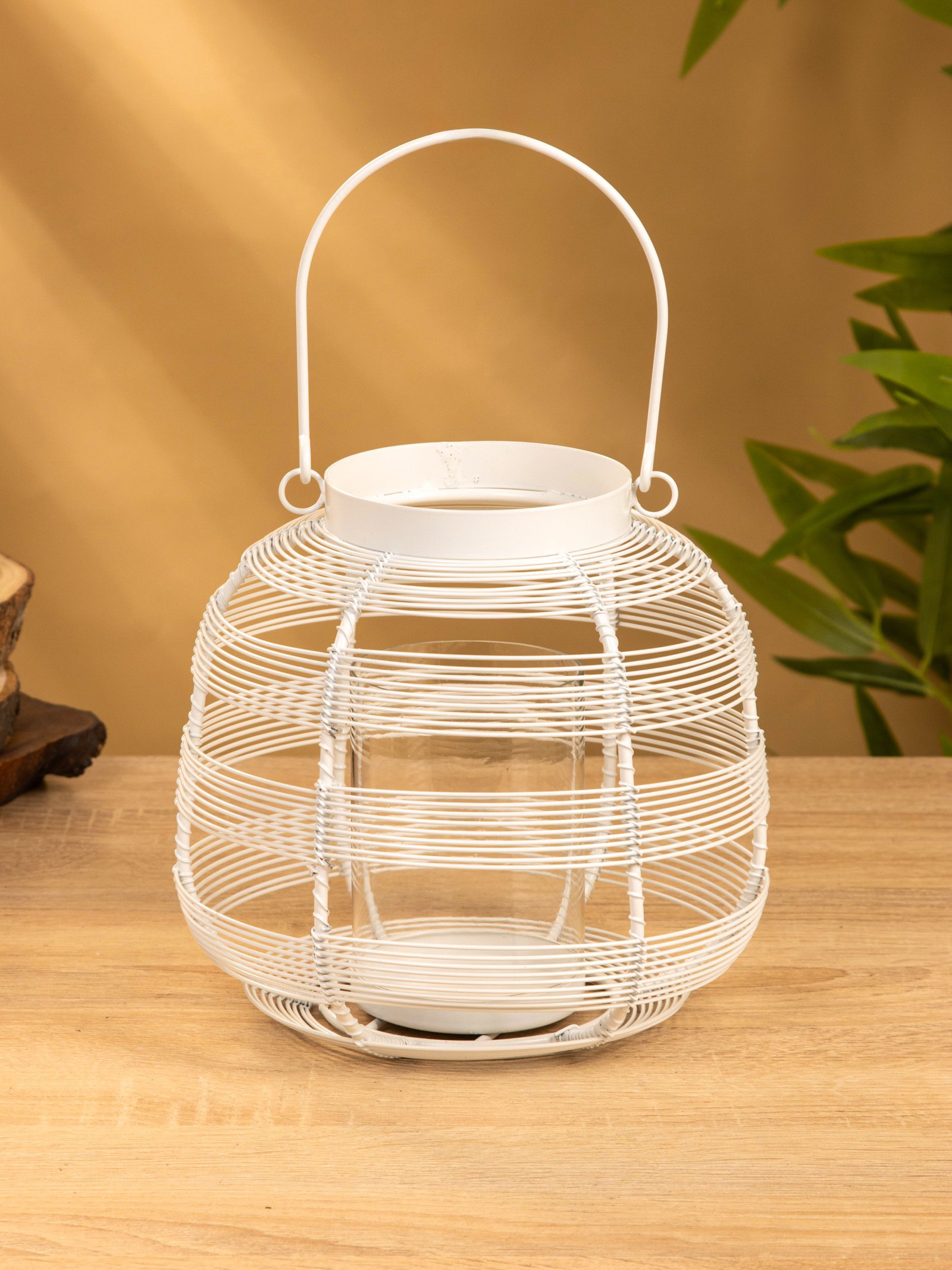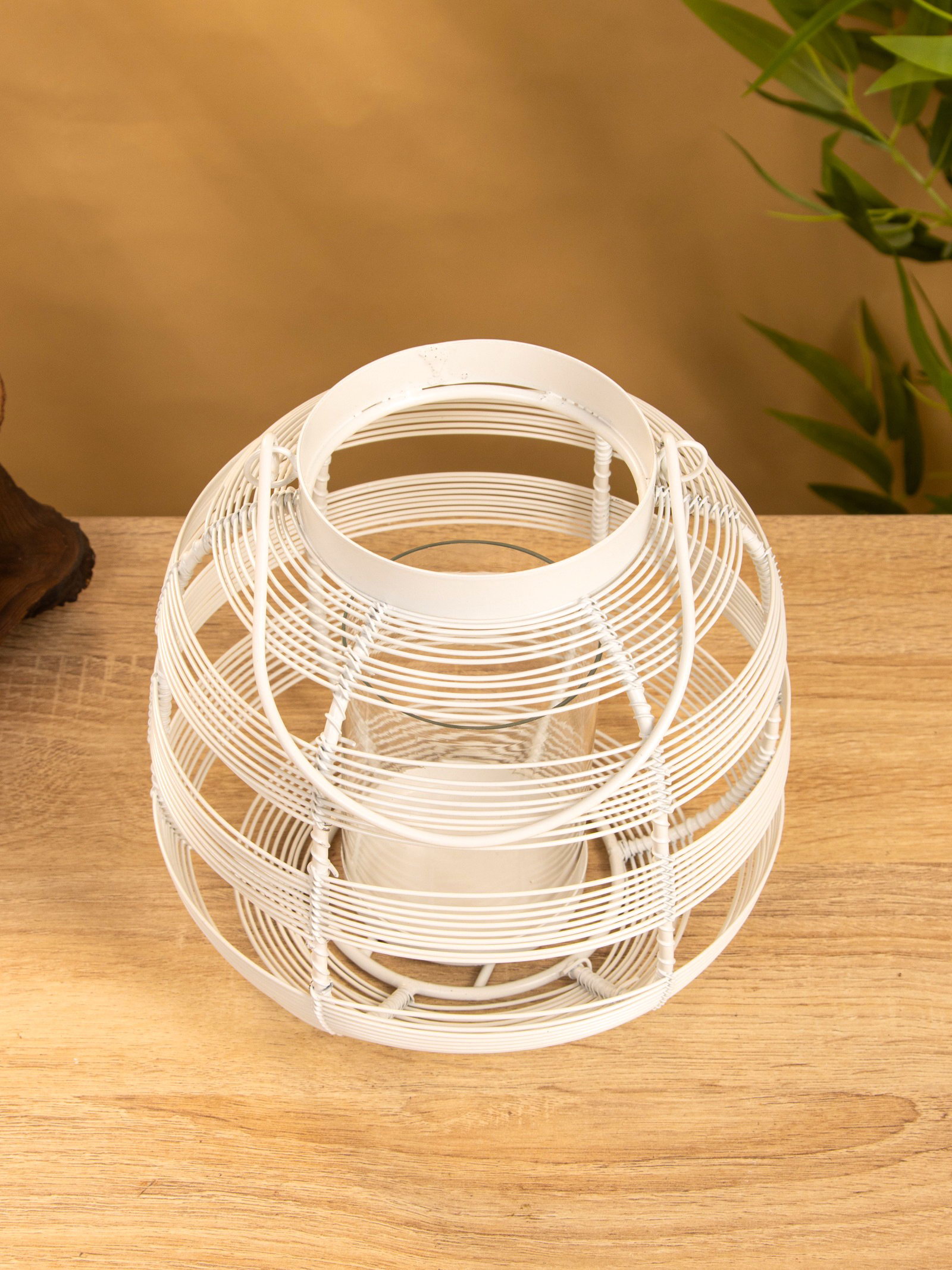 Подсвечник фонарь со стеклянной колбой, 19x19x18 см, d=9 см, металл, белый, 19x19x17.8 см., Индия