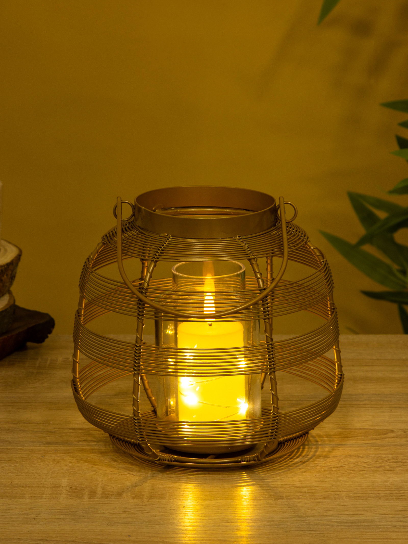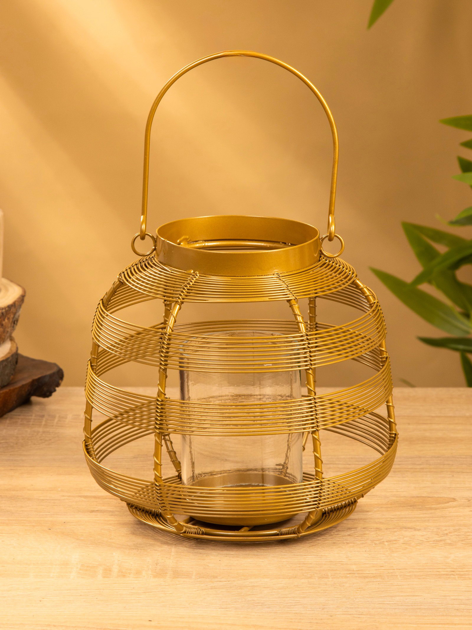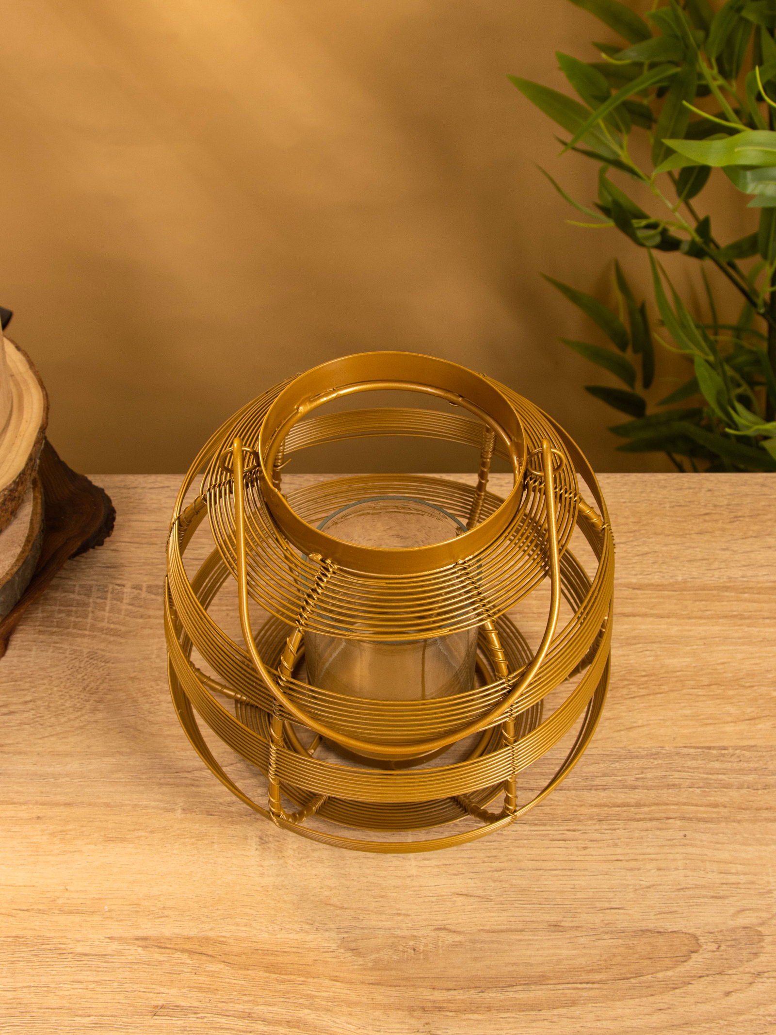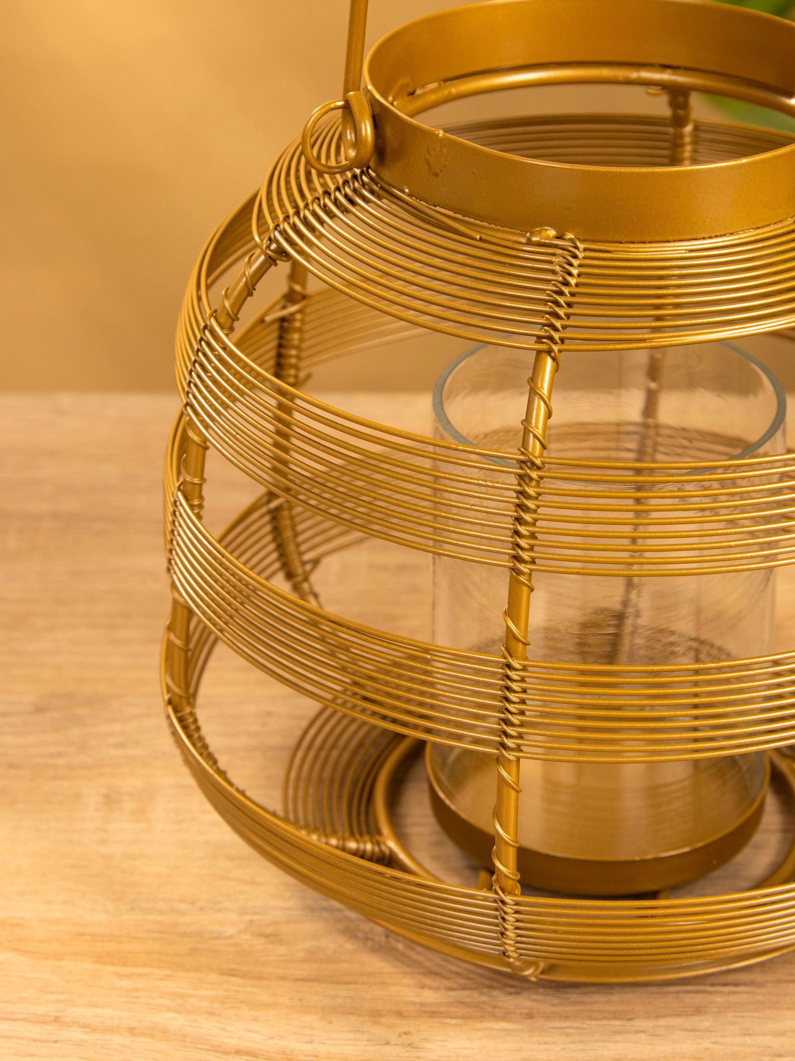 Подсвечник фонарь со стеклянной колбой 19х19х18 см, d 7.5 см, металл, цв. золото, 19x19x17.8 см., Индия