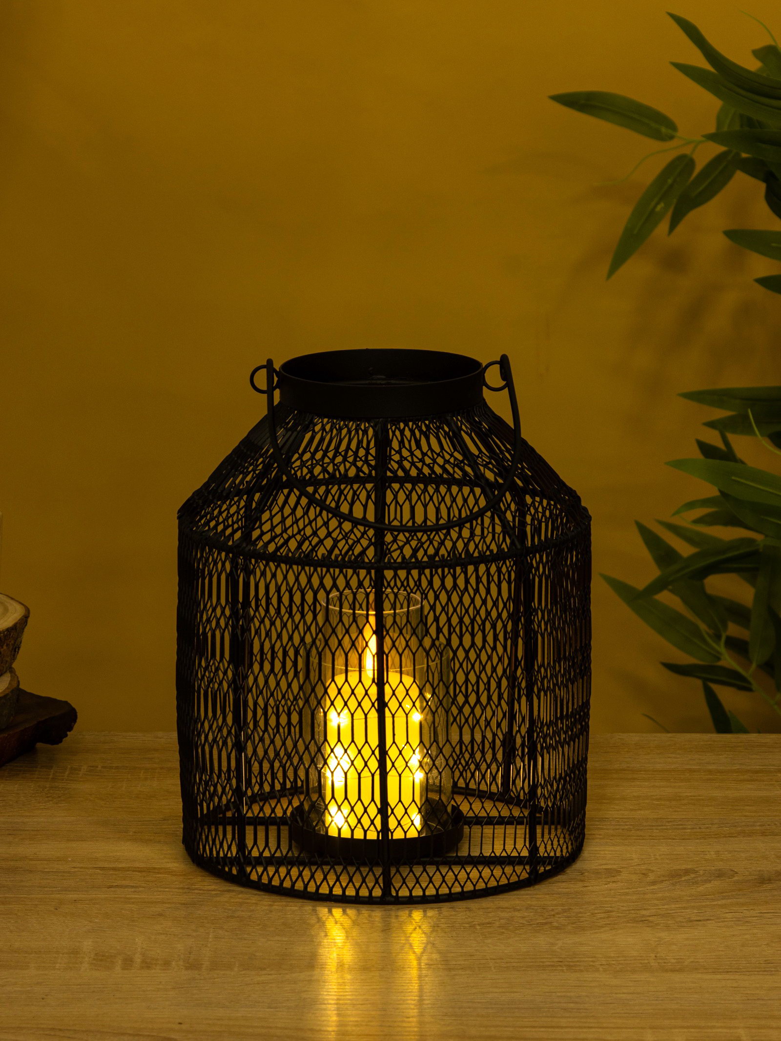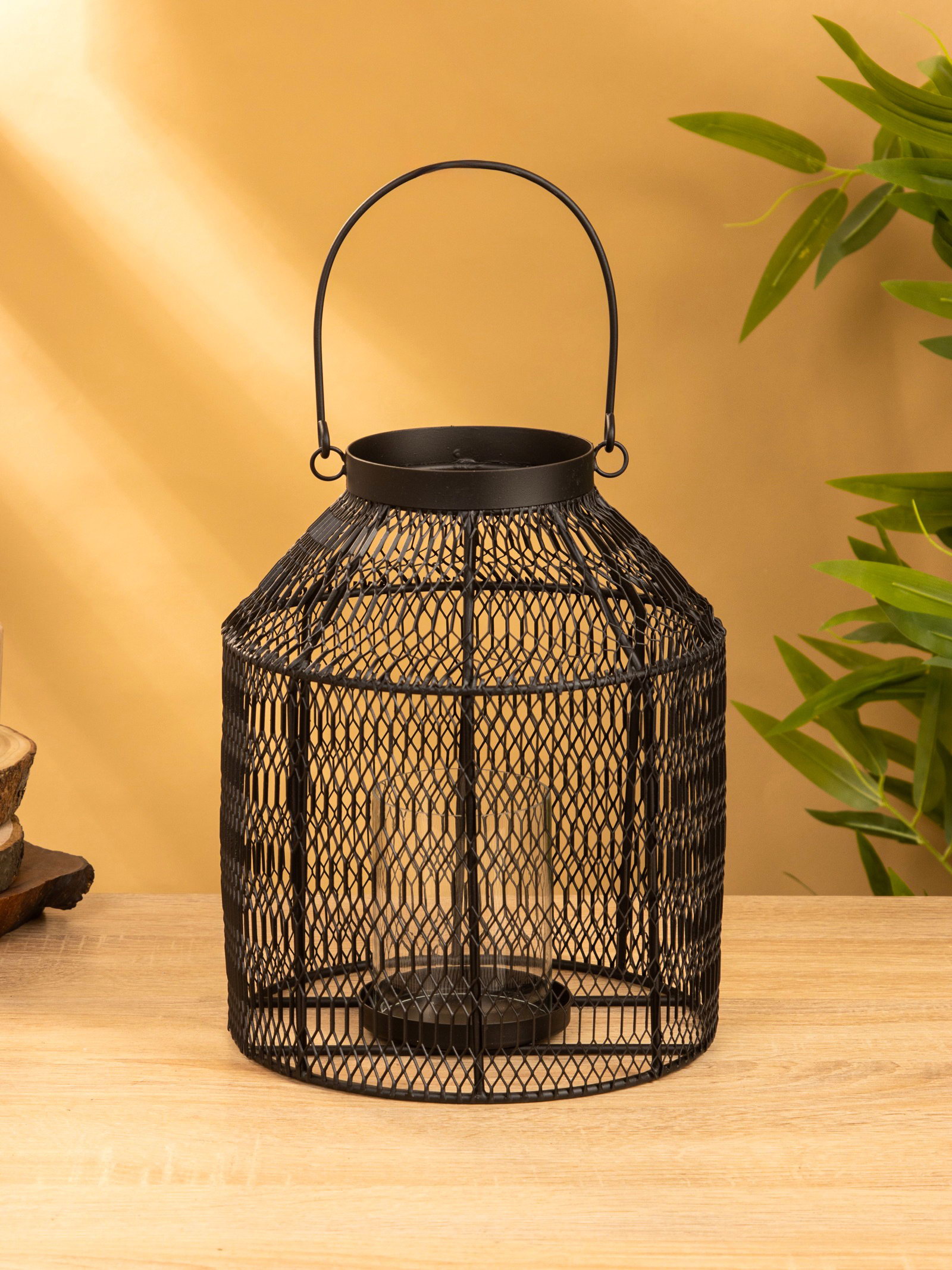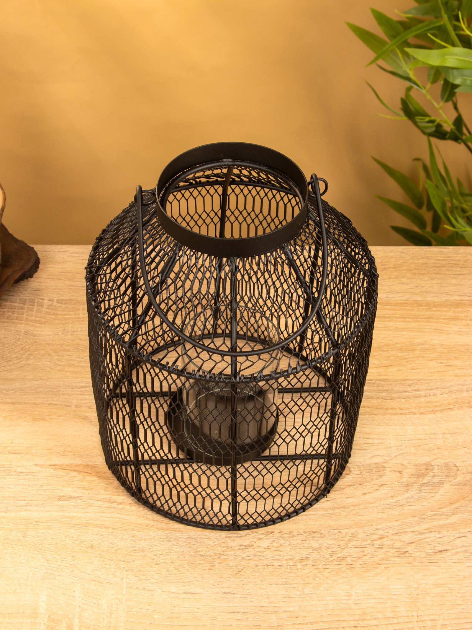 Подсвечник фонарь со стеклянной колбой 20х20х26 см, d 9 см, металл, цв. черный, 20.5x20.5x24.8 см., Индия
