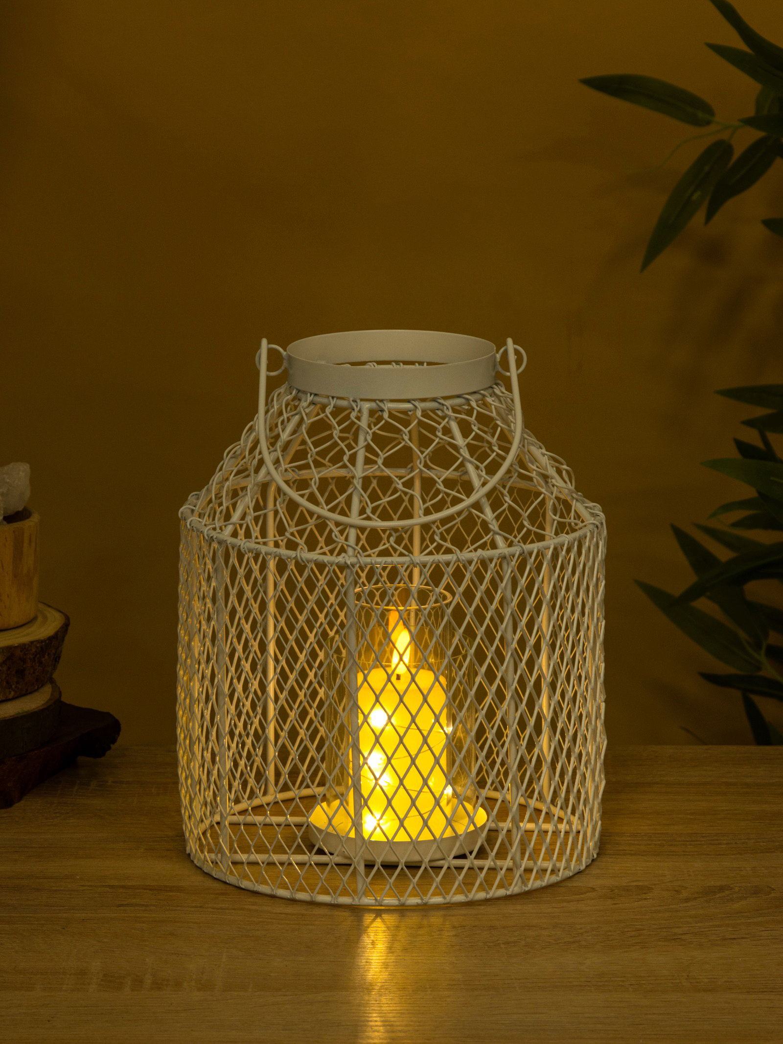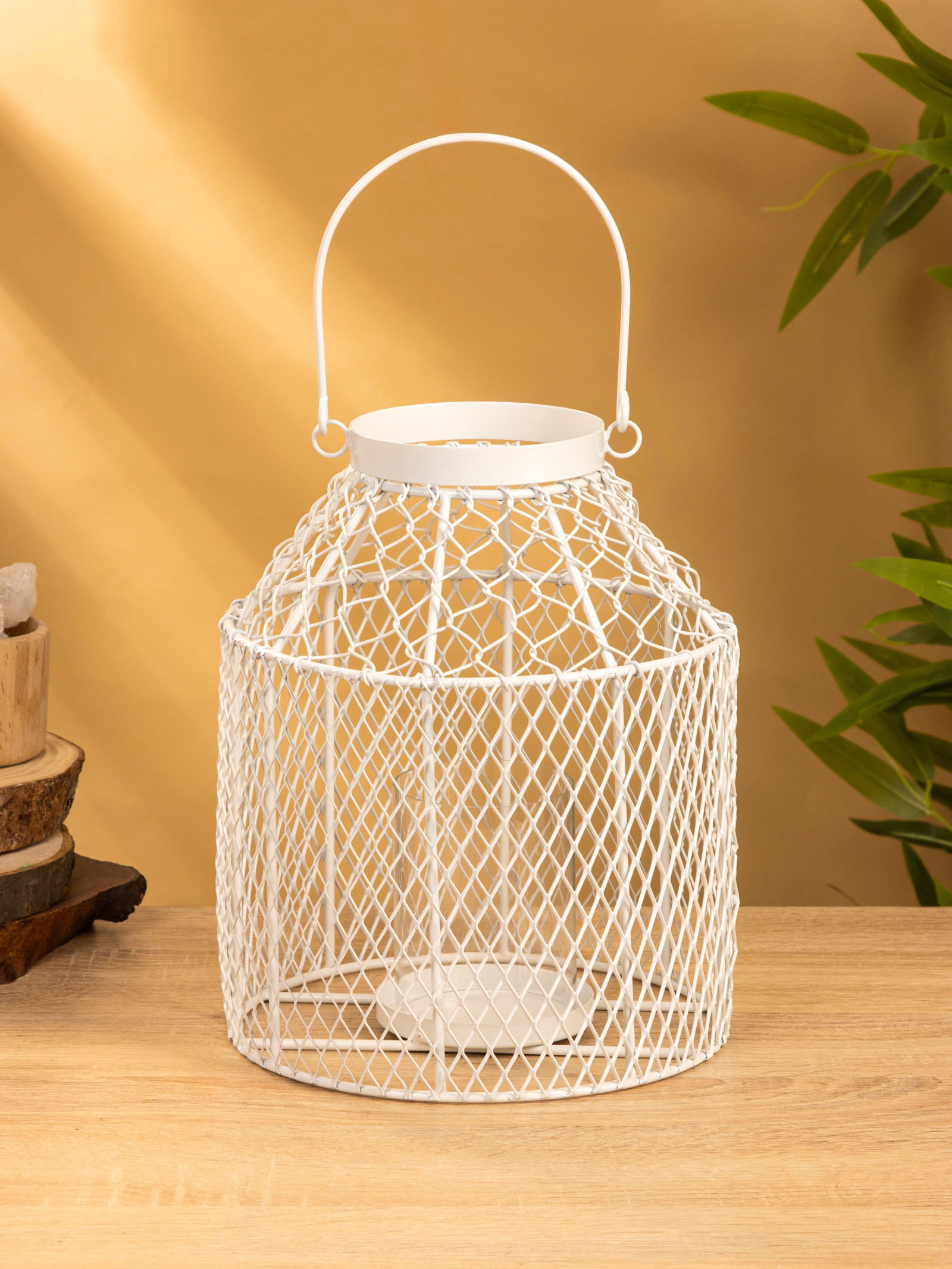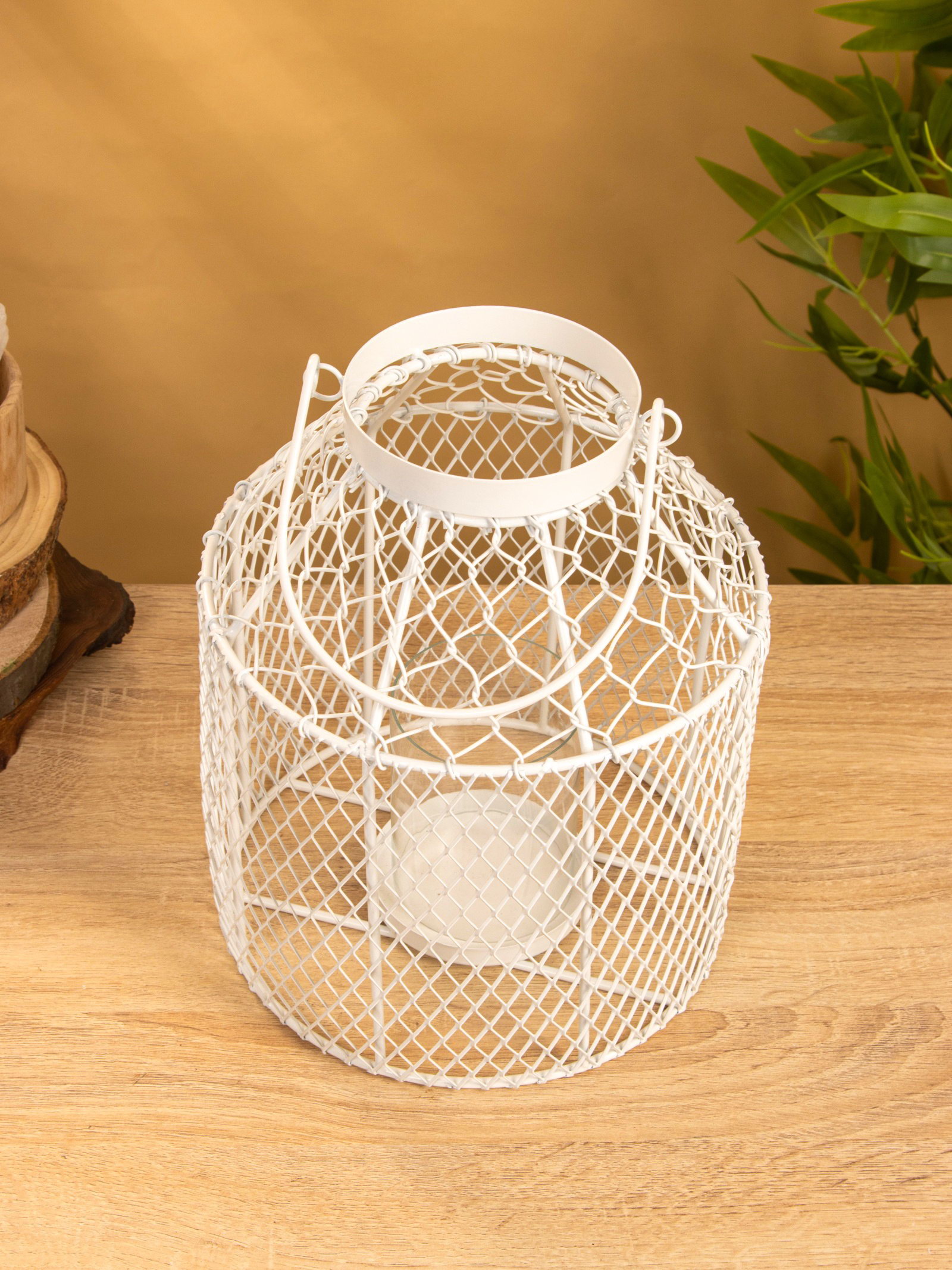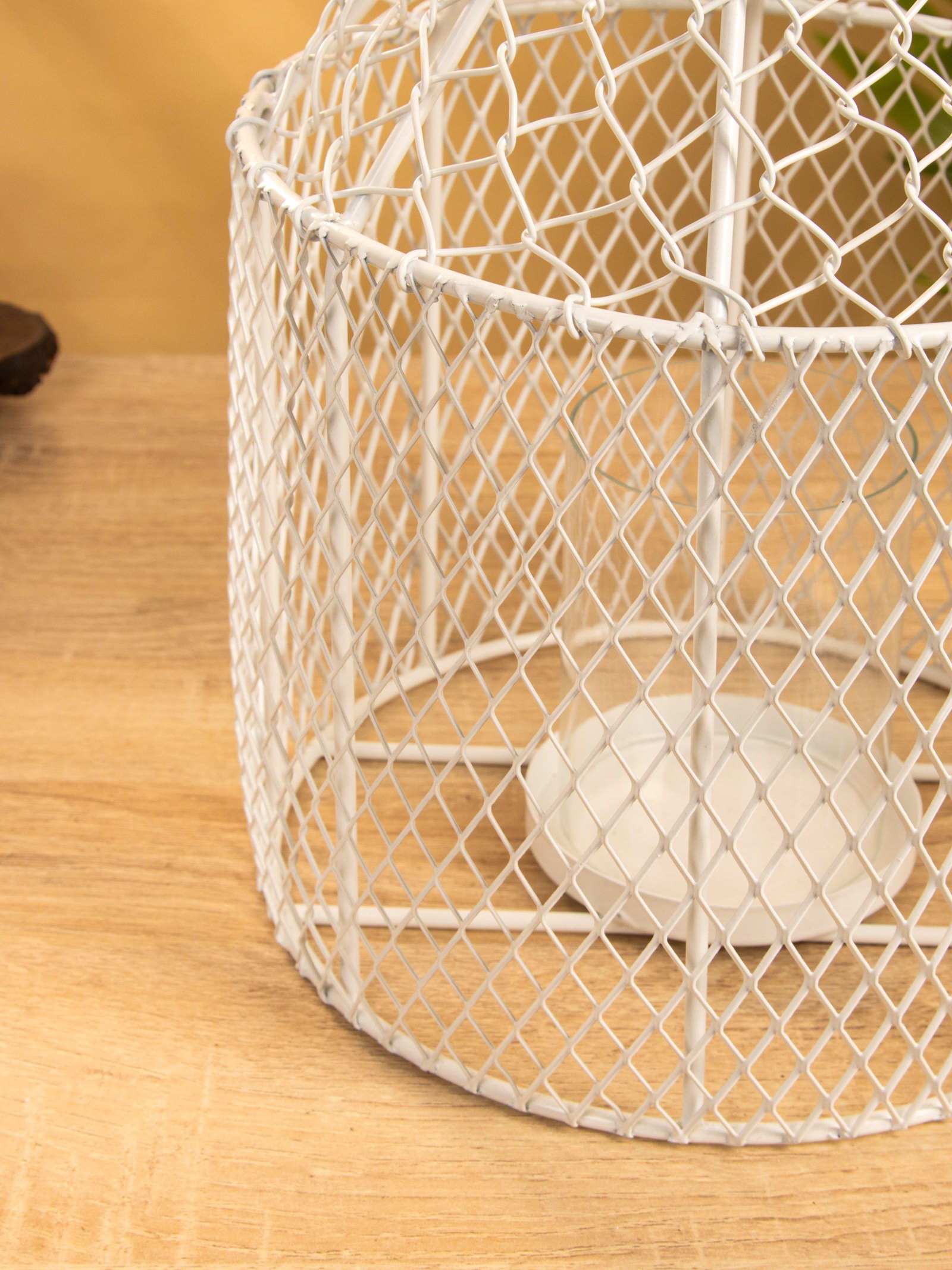 Подсвечник фонарь со стеклянной колбой 20х20х26 см, d 10 см, металл, цв. белый, 20.8x20.8x25 см., Индия