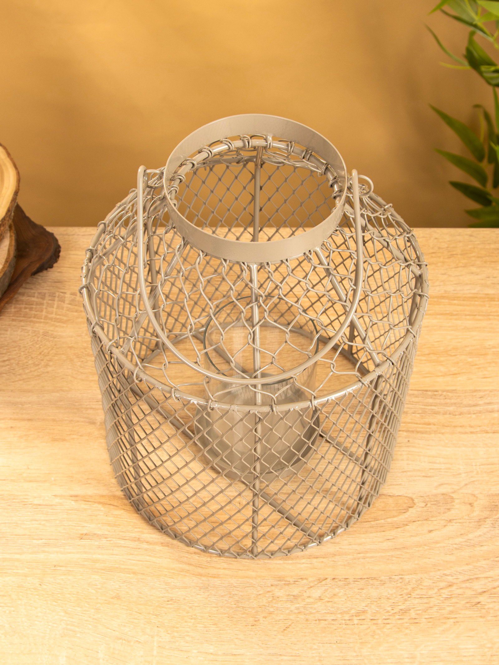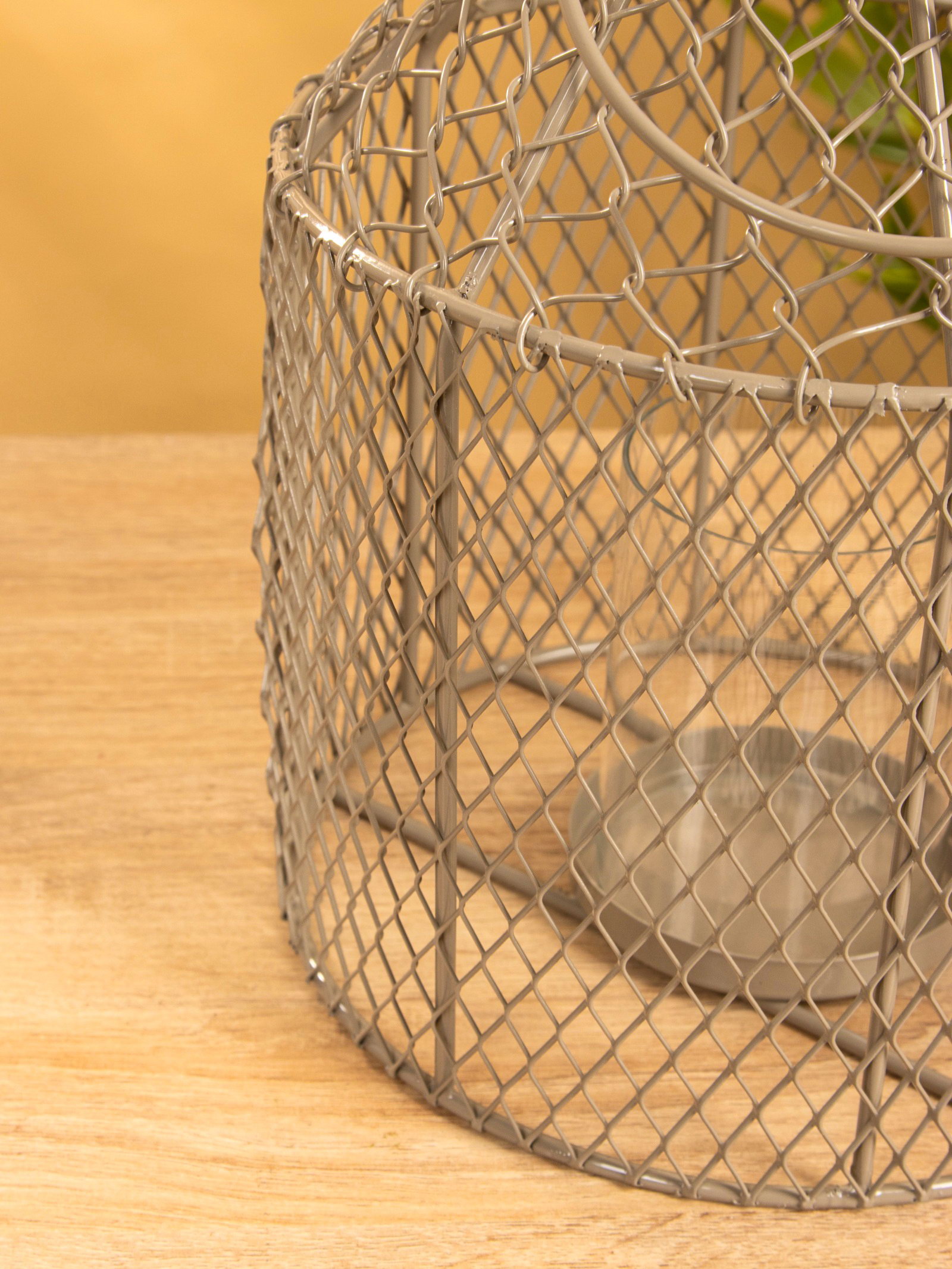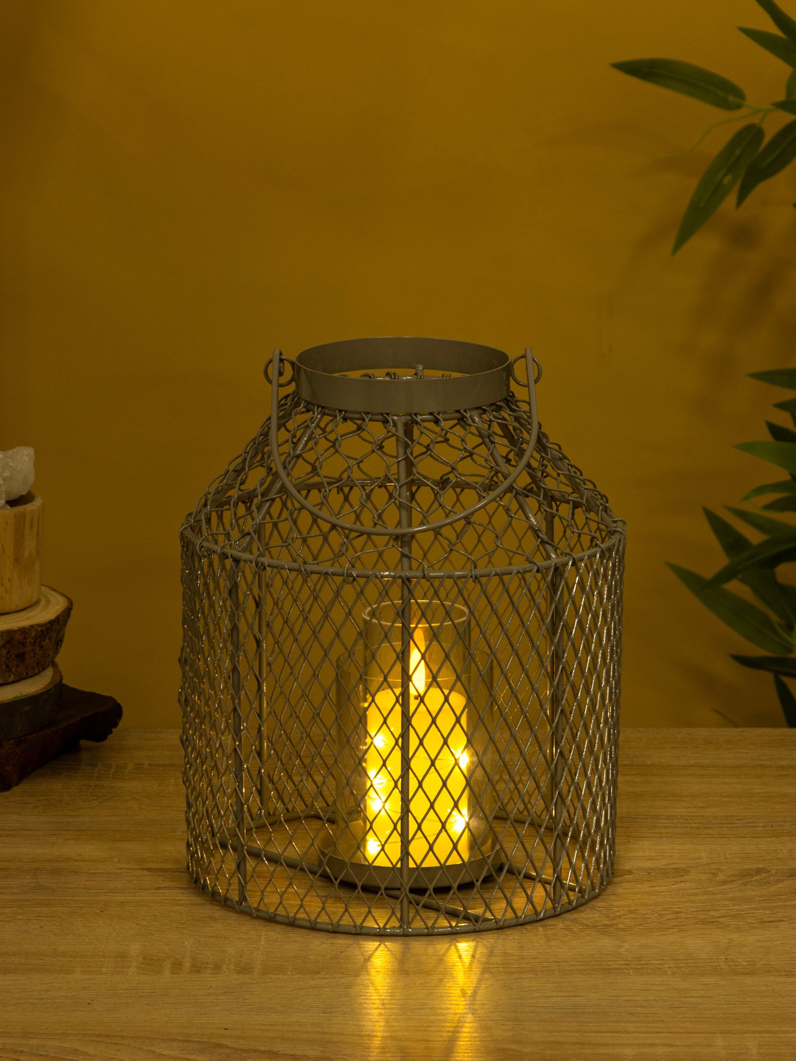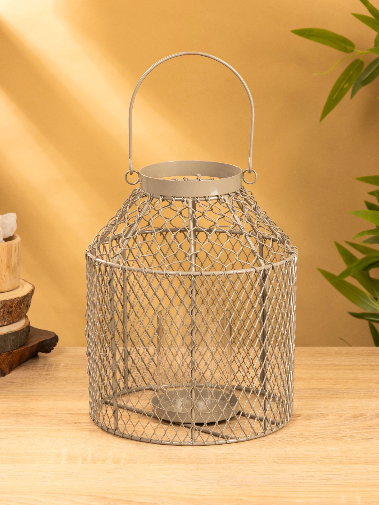 Подсвечник фонарь со стеклянной колбой 20х20х26 см, d 10 см, металл, цв. серый, 20.8x20.8x25 см., Индия